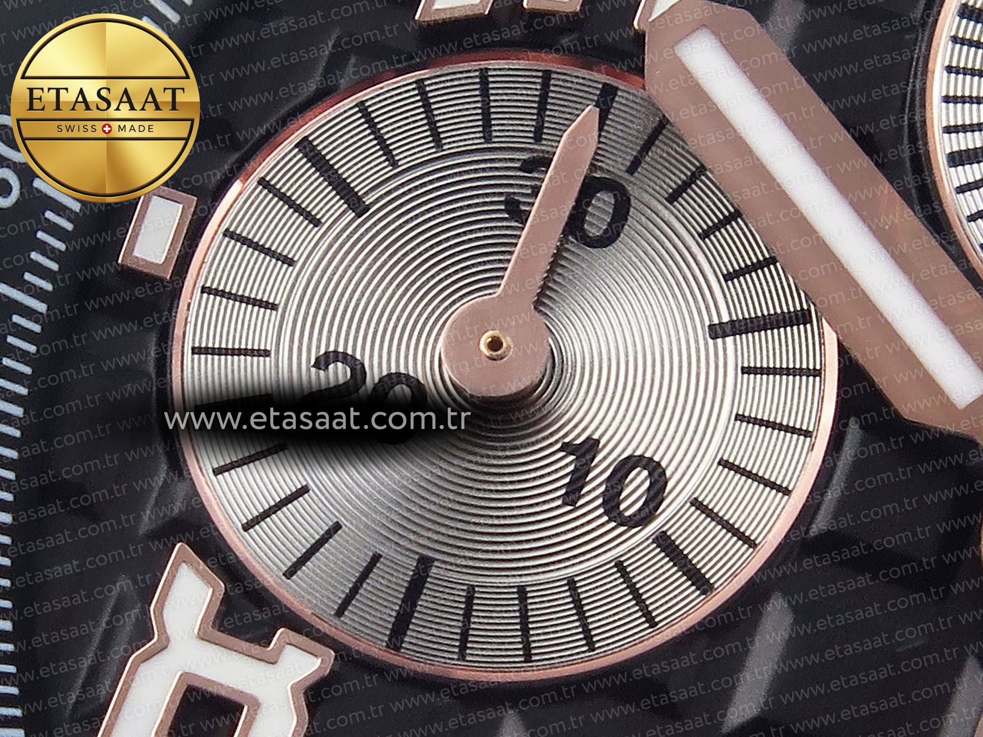 Kadranın tasarımı, sadece estetik değil, aynı zamanda işlevsel olarak da düşünülmüştür. Siyah kareli desen, ışığı farklı açılarda yansıtarak saate dinamik bir görünüm kazandırır. Rose gold indeksler ve ibreler, karanlık ortamlarda bile kolayca okunabilirliği sağlar. Kronograf sayaçları, zamanı hassas bir şekilde ölçmenizi sağlarken, saatin genel işlevselliğini de artırır. Safir kristal camın AR kaplaması, yansımaları en aza indirerek kadranın her zaman net bir şekilde görünmesini sağlar. Bu detaylar, Royal Oak Offshore’un kadranını hem güzel hem de kullanışlı hale getirir.