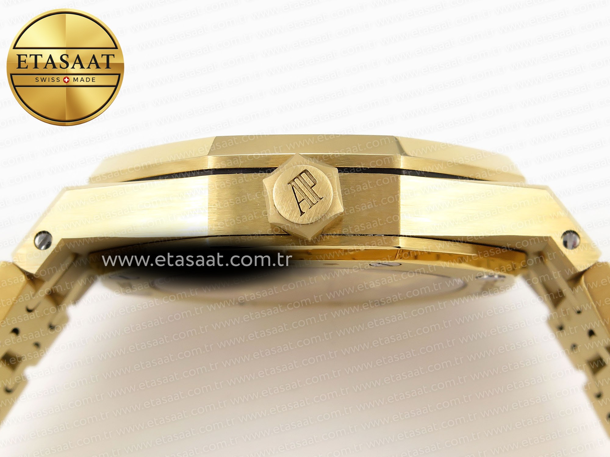 Audemars Piguet ROYAL OAK 37MM 15450 YG IPF Best Edition, her bir detayı özenle tasarlanmış ve üretilmiş bir saattir. 37mm’lik kasa çapı, hem erkek hem de kadın bileklerine mükemmel bir uyum sağlar. Bu boyut, saatin zarafetini ve dengesini korurken, aynı zamanda okunabilirliği de artırır. Kasa, 18K sarı altın kaplama 316L paslanmaz çelikten üretilmiştir. Bu kaplama, saate lüks ve göz alıcı bir görünüm kazandırırken, aynı zamanda dayanıklılığını da artırır. Sarı altın kaplama, saatin uzun yıllar boyunca parlaklığını korumasını sağlar.