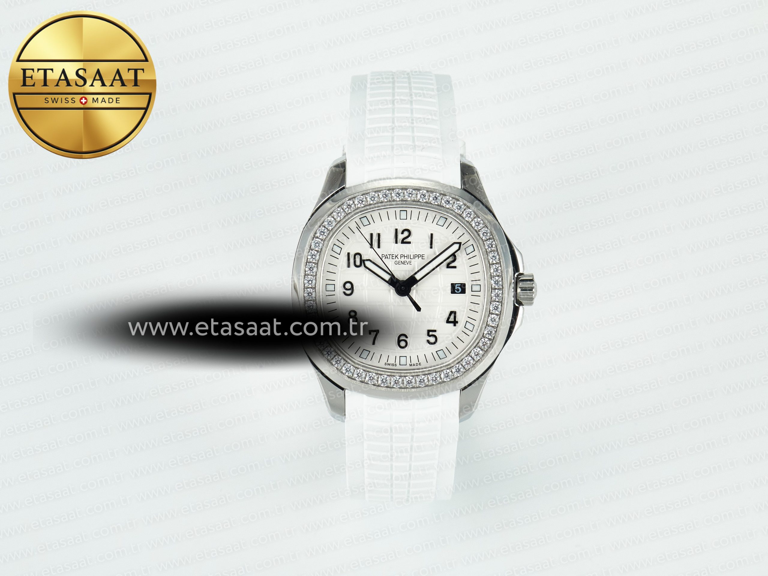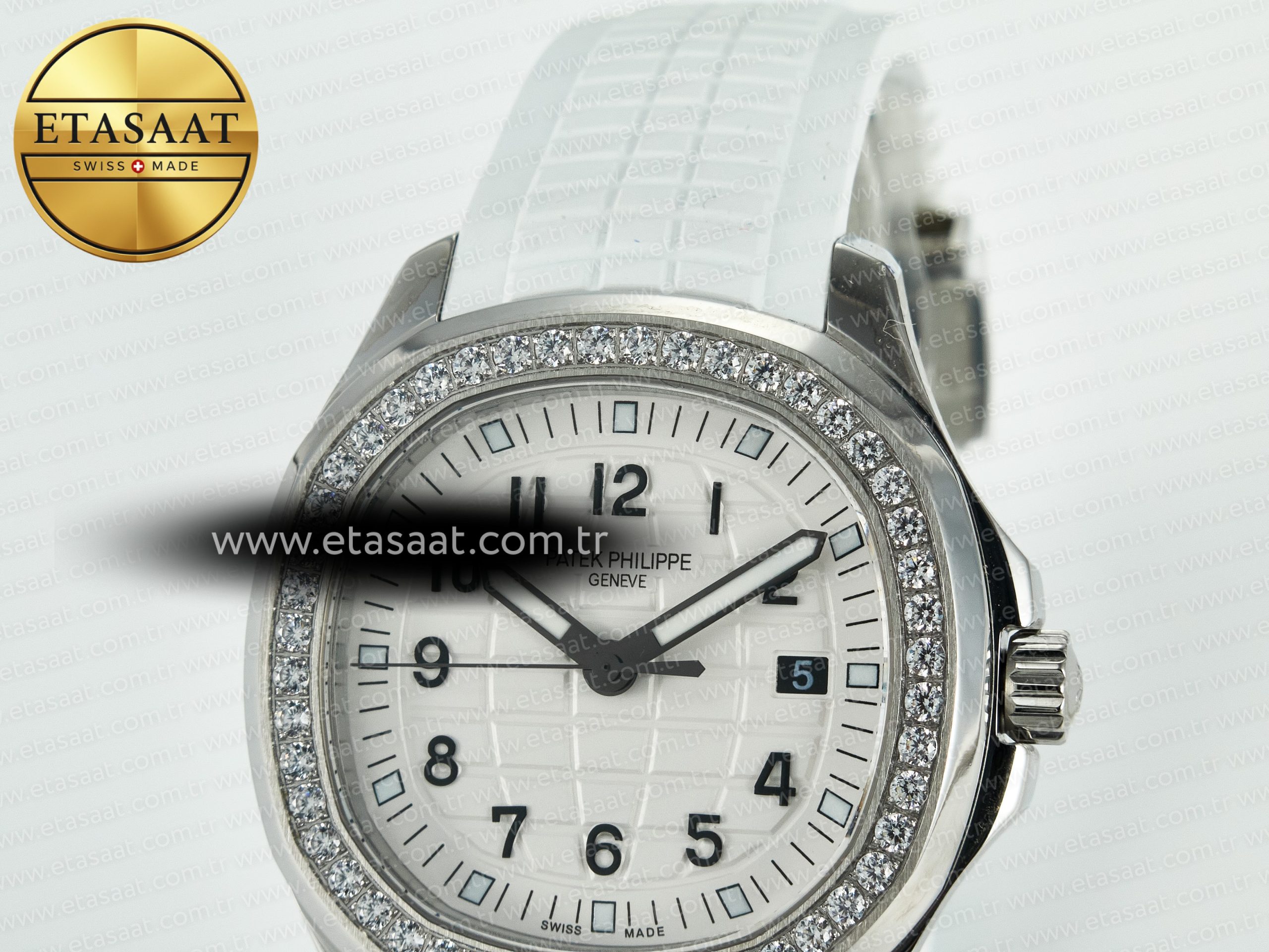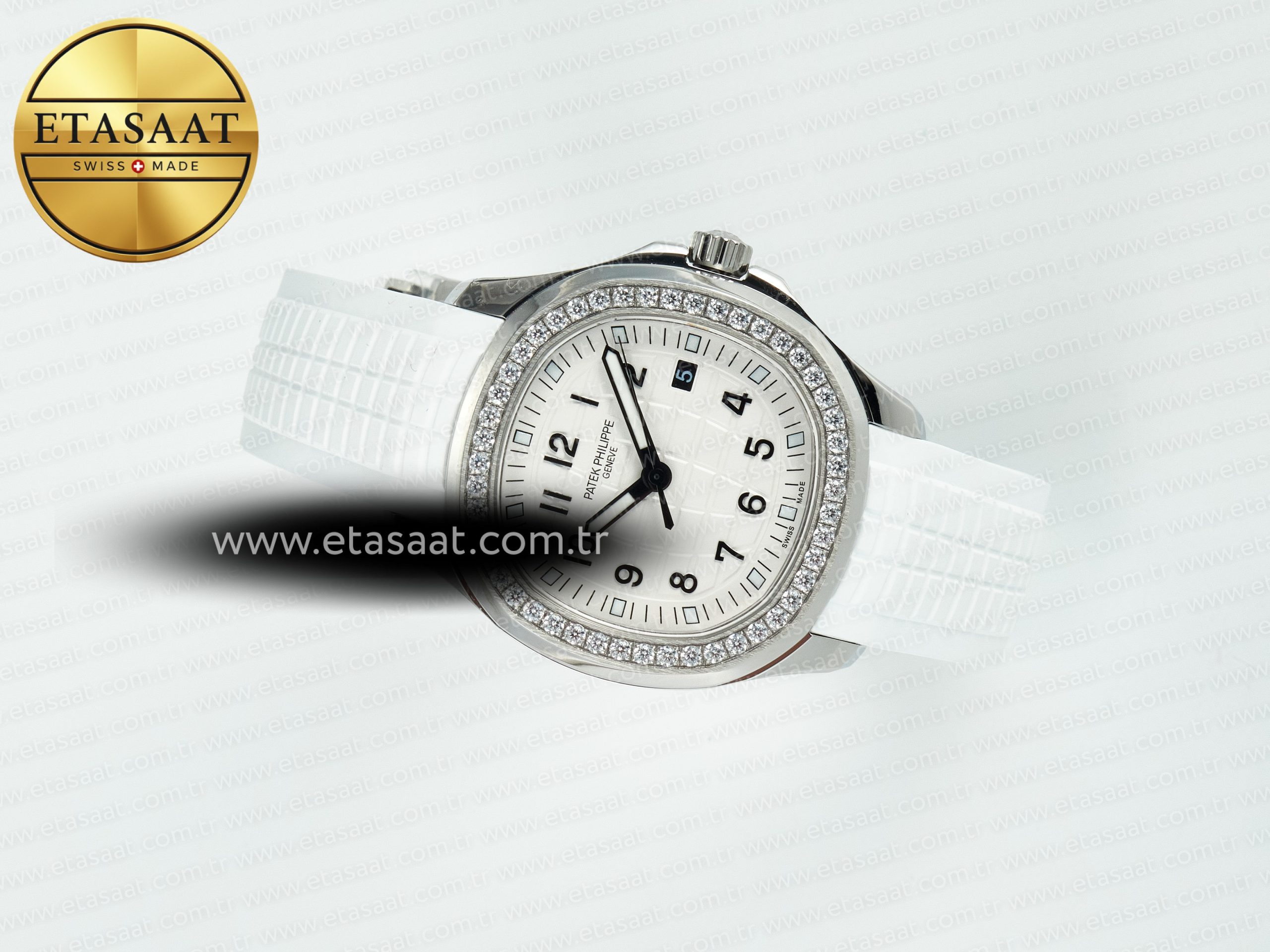 Patek Philippe Aquanaut 5267 ile zarafeti yakalayın. PPF 1:1 en iyi replika, İsviçre Ronda Quartz mekanizma ve beyaz kauçuk kayış.
