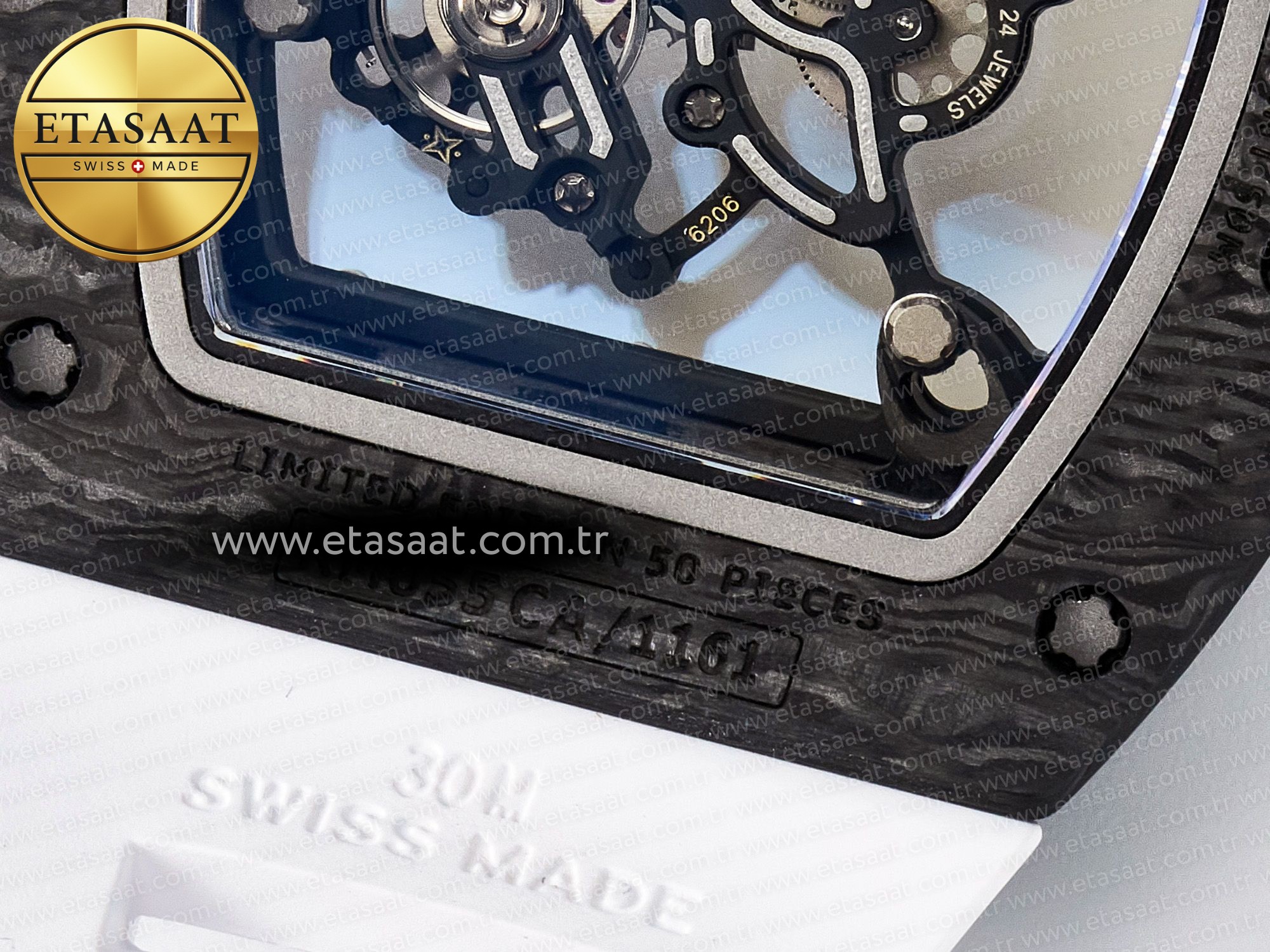 Richard Mille RM055 replika saat ile stilinizi yükseltin! UOKF üretimi, en iyi 1:1 klon. Beyaz/kırmızı detaylar, konforlu kauçuk kordon.