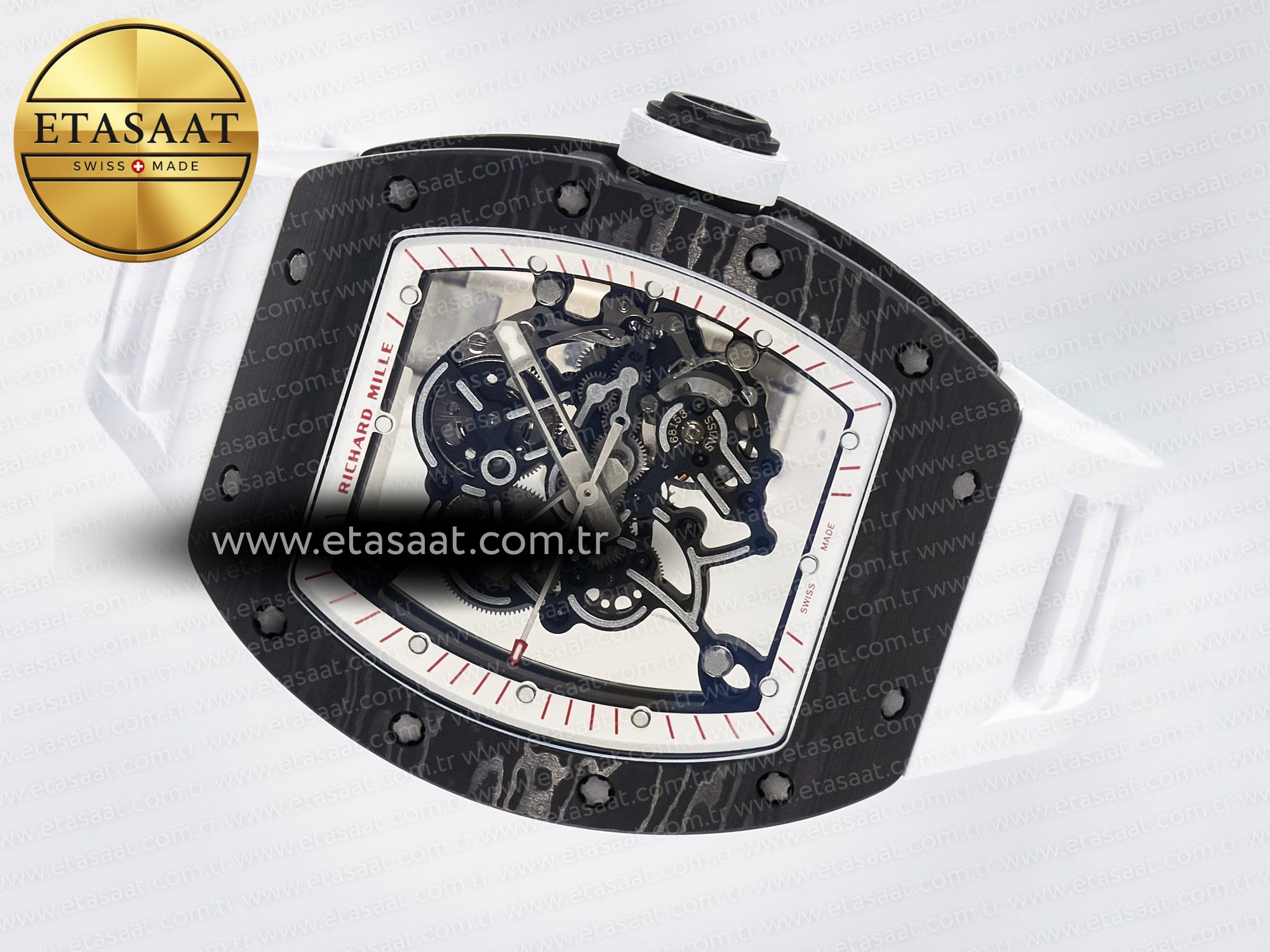 Richard Mille RM055 Ti/NTPT UOKF 1:1 Best Edition White/Red Inner Bezel White Crown on White Rubber Strap RMUL2 Super Clone