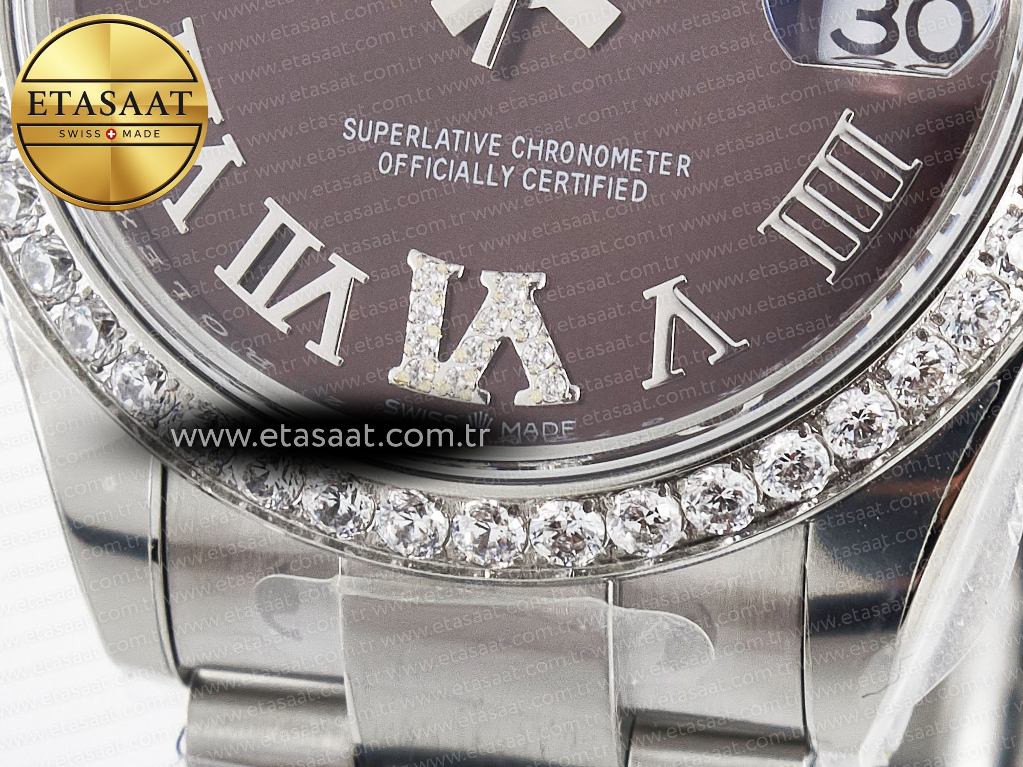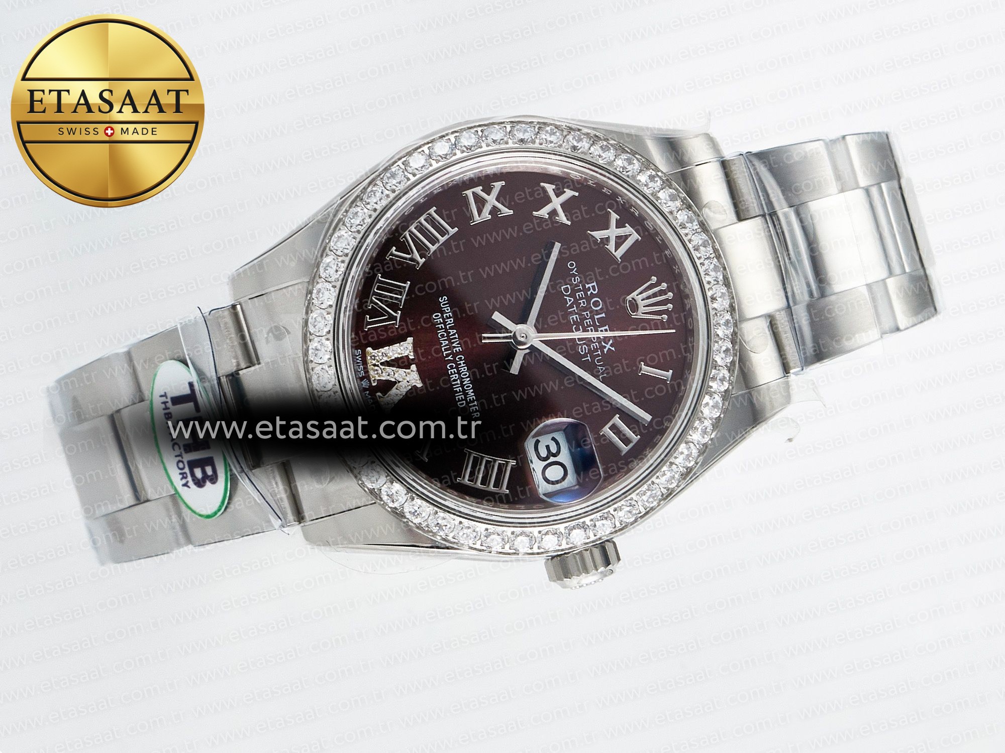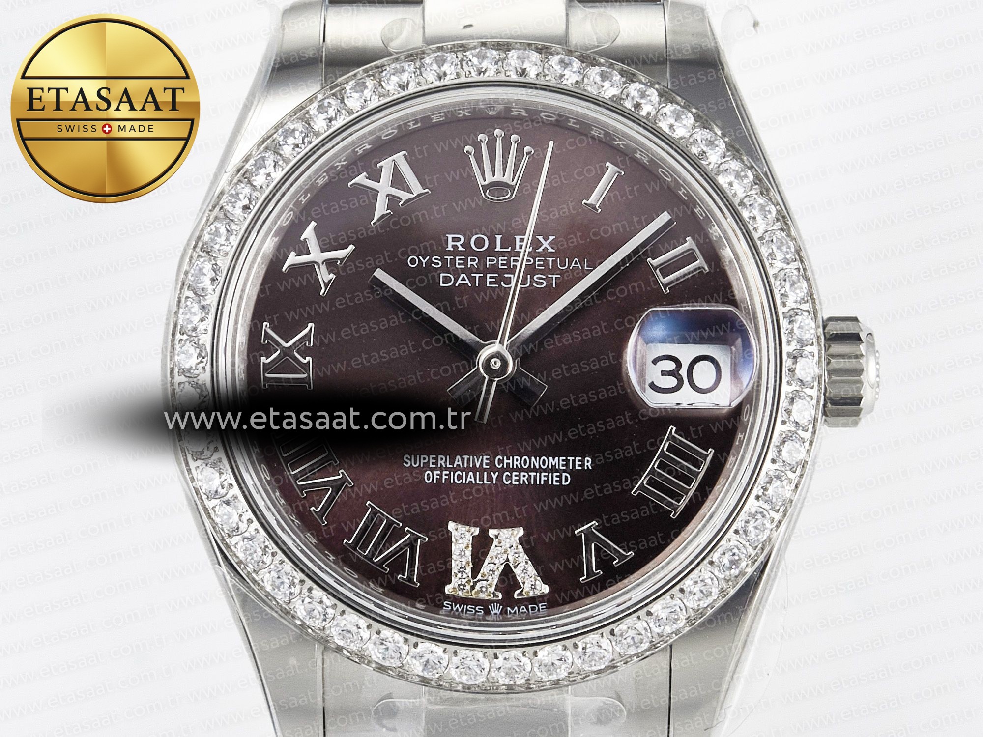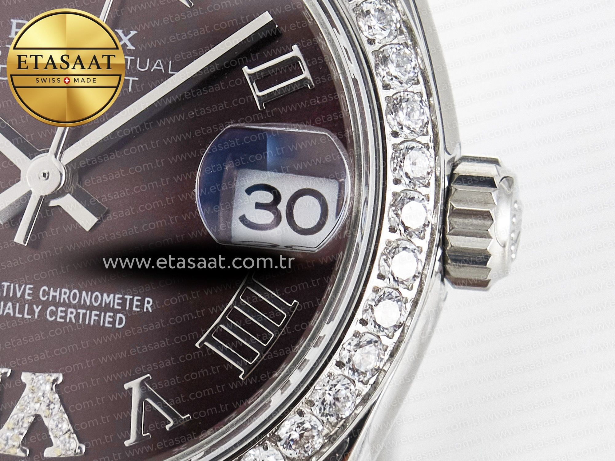 Rolex DateJust 278274 904L Steel Brown Roman Dial Diamonds Bezel on SS Cal.2236