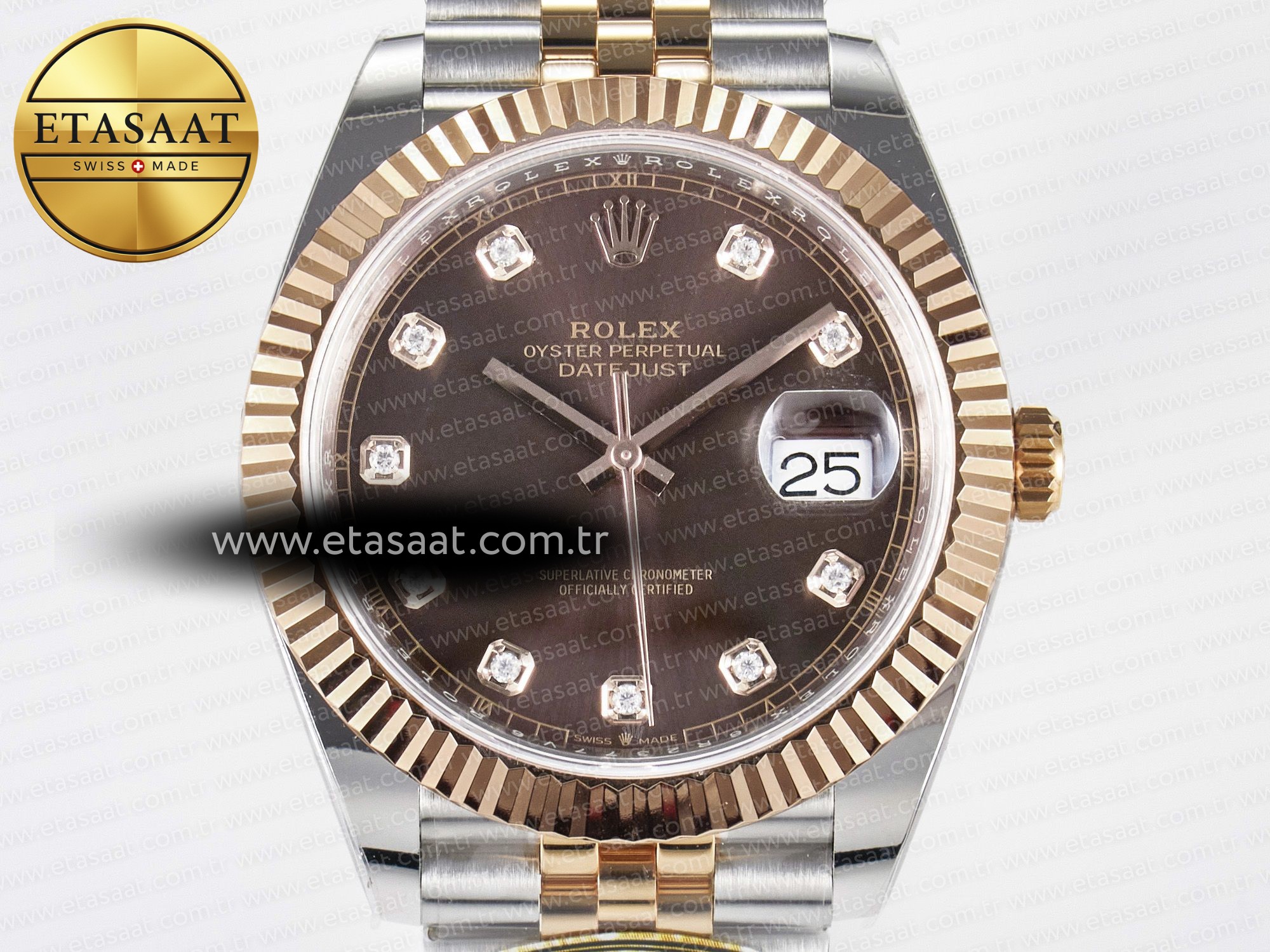 Rolex DateJust 41 126331 ARF 1:1 Best Edition 904L Steel Brown Diamonds Dial on SS/RG Jubilee Bracelet SH3235(Gain Weight)