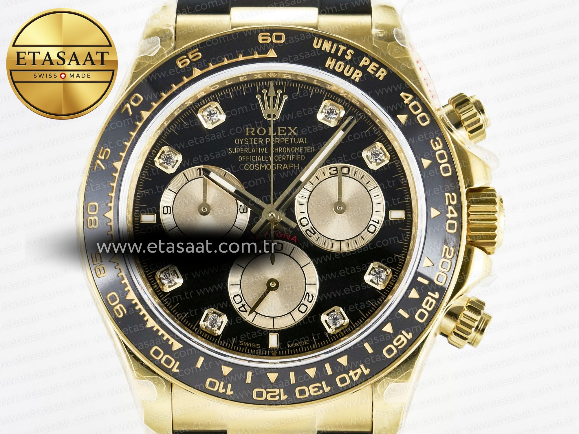 • Siyah/Sarı Altın Pırlanta Kadran: Lüks ve sofistike bir görünüm sunar.