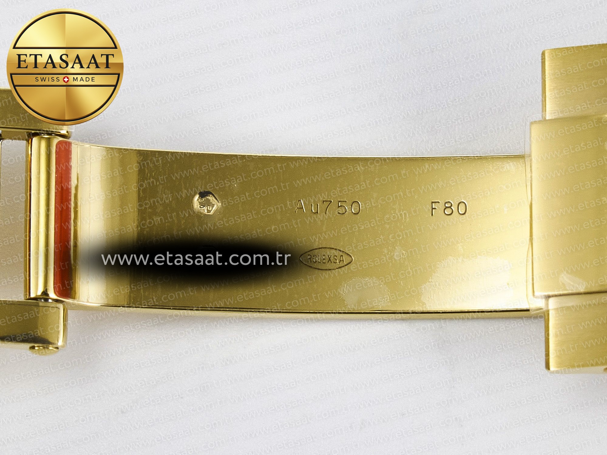 Saatin 18K altın kasa ve bileziği, lüks ve dayanıklılığı bir araya getirir. Altın, paslanmaz ve kararmaya karşı dayanıklı bir metaldir, bu da saatin uzun yıllar boyunca ilk günkü gibi görünmesini sağlar. Altın bilezik, bileğe rahatça oturur ve saatin ağırlığını dengeli bir şekilde dağıtır. Kasanın ve bileziğin yüzeyi, özel bir işlemden geçirilerek parlak ve pürüzsüz bir görünüm elde edilmiştir. Bu da saate ayrı bir zarafet katmaktadır.