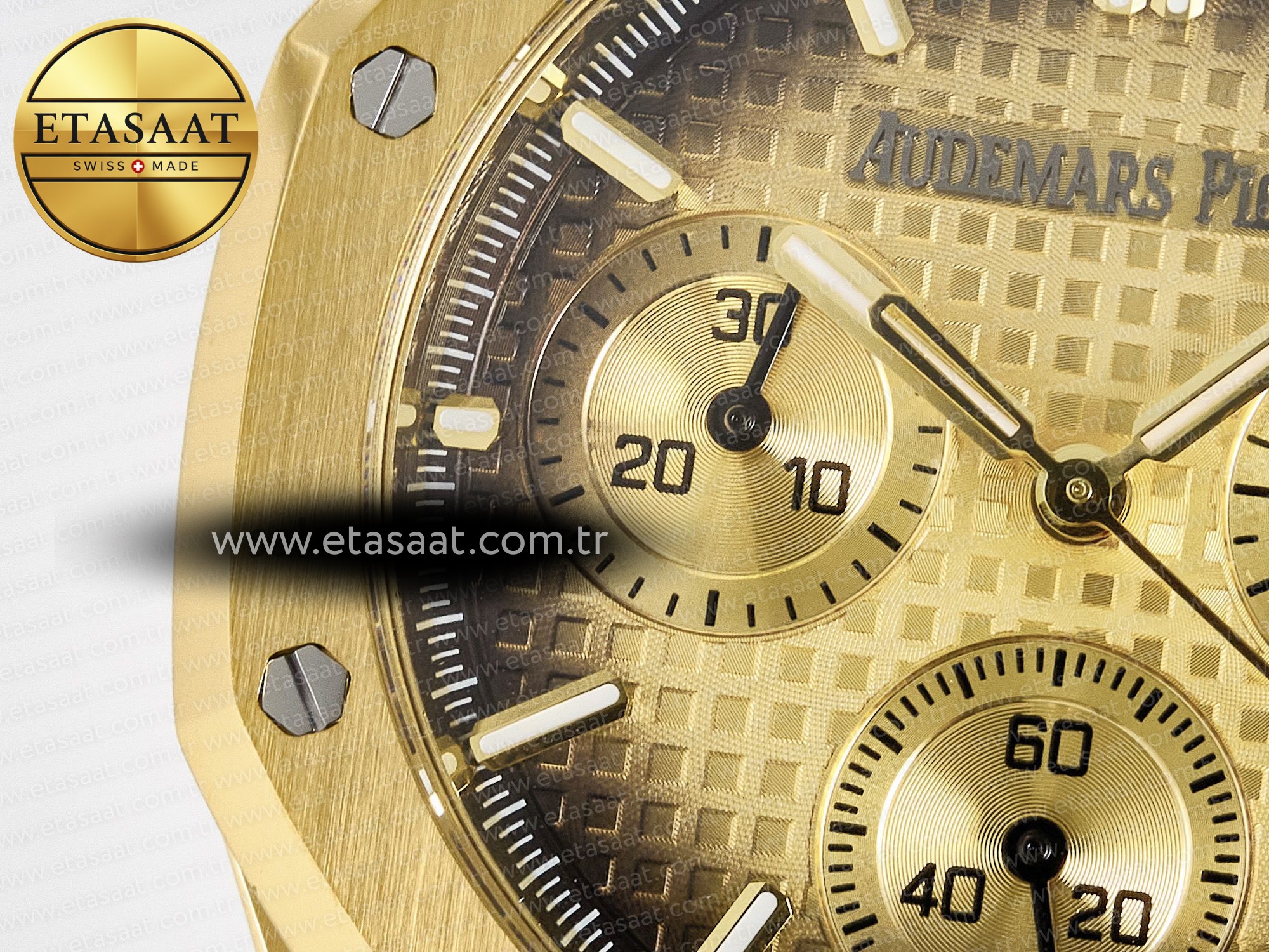 Audemars Piguet Royal Oak Chrono 26240 YG APSF 1:1 Best Edition YG Dial on YG Bracelet SA4401: Lüksün ve Zarafetin Mükemmel Birleşimi