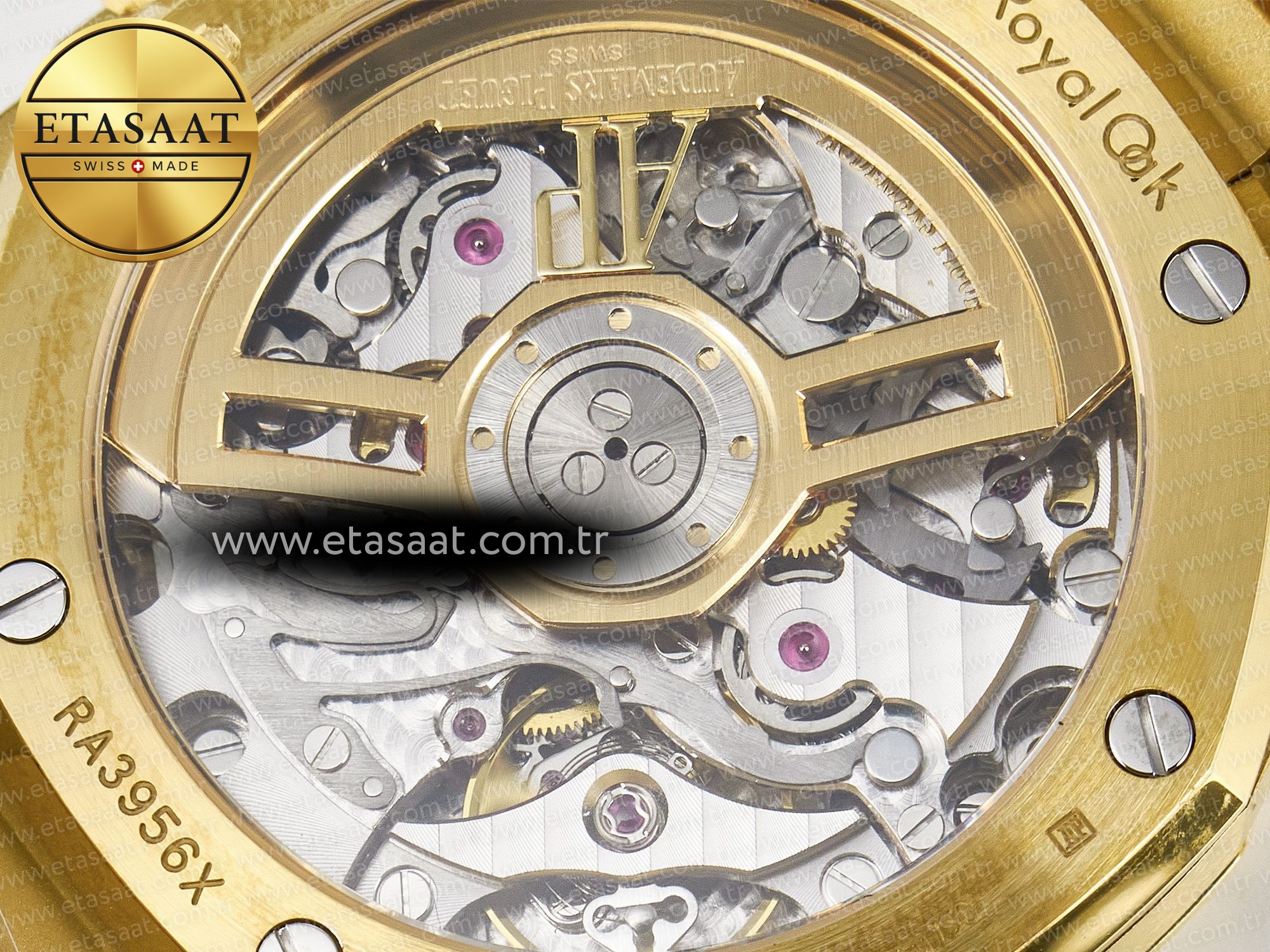 Altın kadran, bu saatin en dikkat çekici özelliklerinden biridir. Altının sıcak ve parlak tonu, saate lüks ve sofistike bir hava katmaktadır. Kadran üzerindeki detaylar, Audemars Piguet’nin ustalıkla işlenmiş tasarımını yansıtırken, ibrelerin ve indekslerin yerleşimi, okunabilirliği artırmaktadır. Altın kadran, saatin genel estetiğini tamamlayarak, onu her ortamda göz alıcı kılmaktadır. Bu kadran, sadece zamanı göstermekle kalmaz, aynı zamanda sahibinin zevkini ve stilini de yansıtan bir ifade aracıdır.