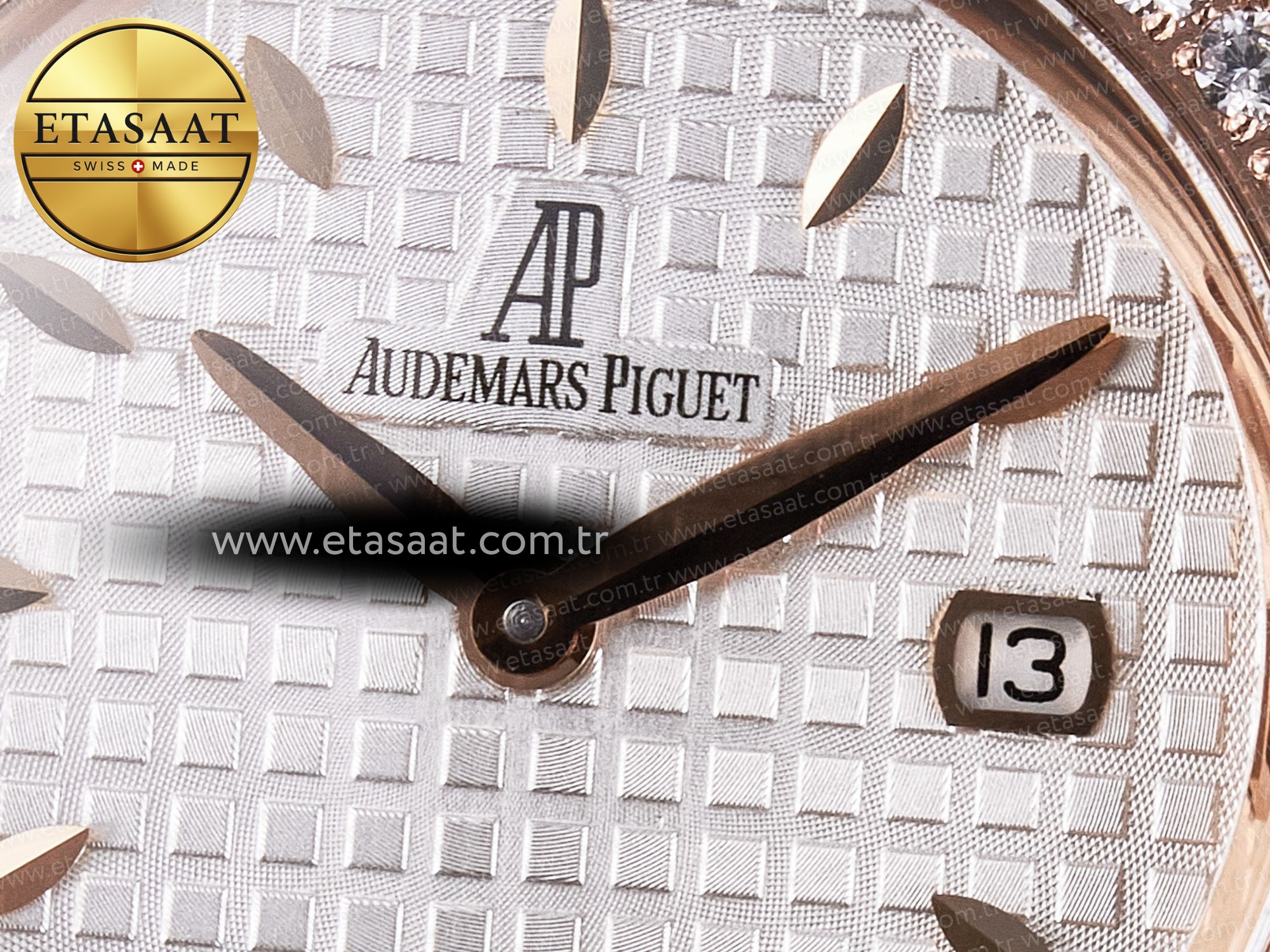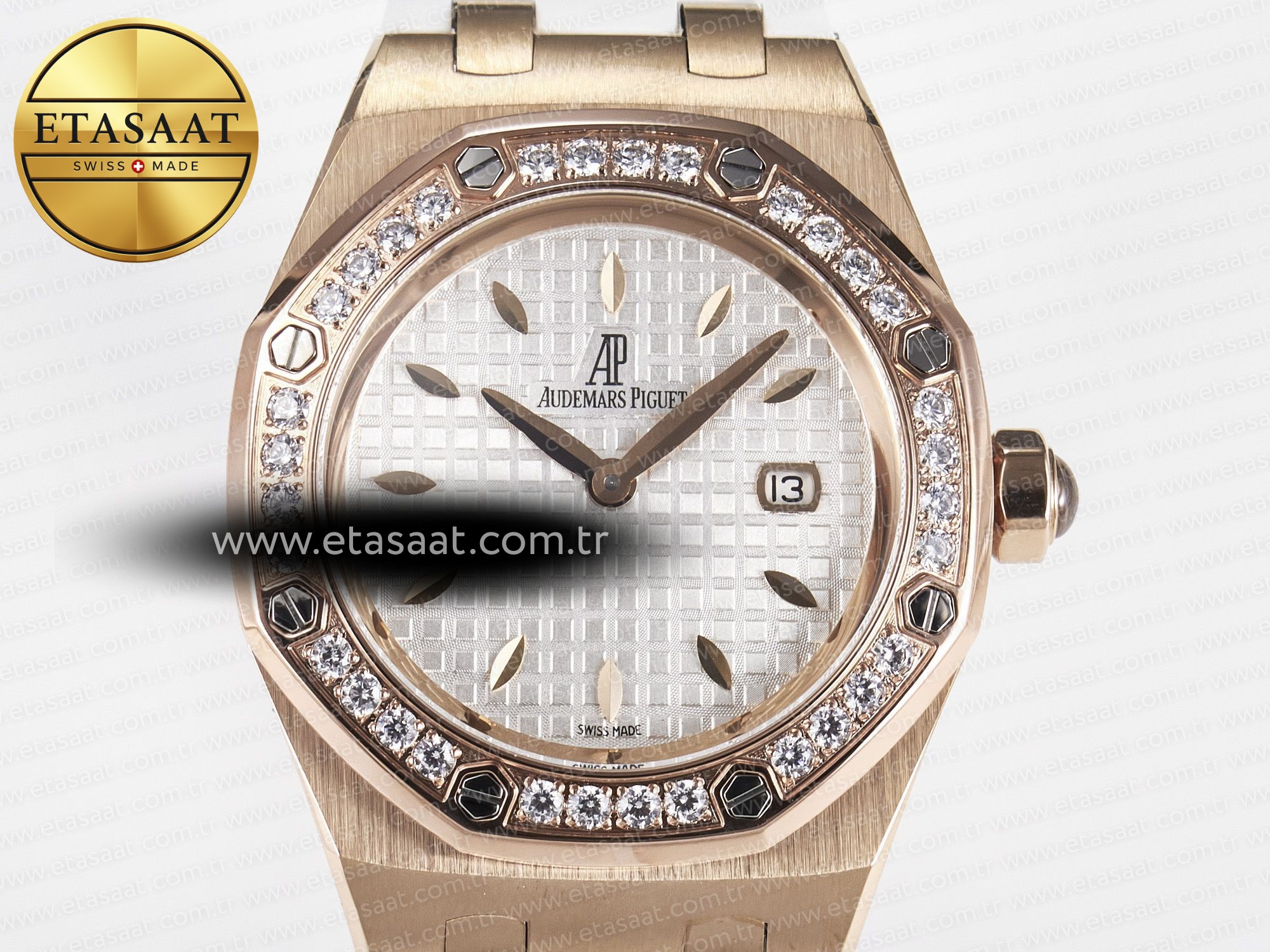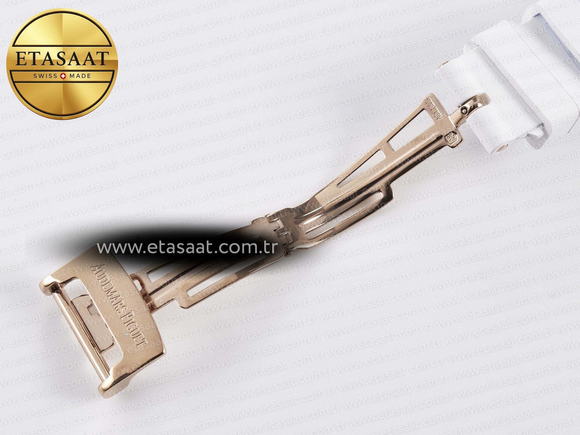 Audemars Piguet Royal Oak Offshore Ladies 33mm RG DRF Best Edition White Dial Diamonds Bezel on White Rubber Strap ETA Quartz