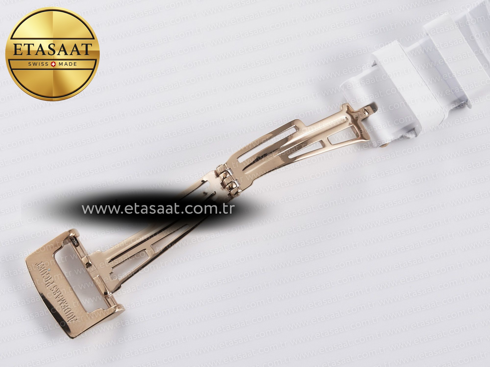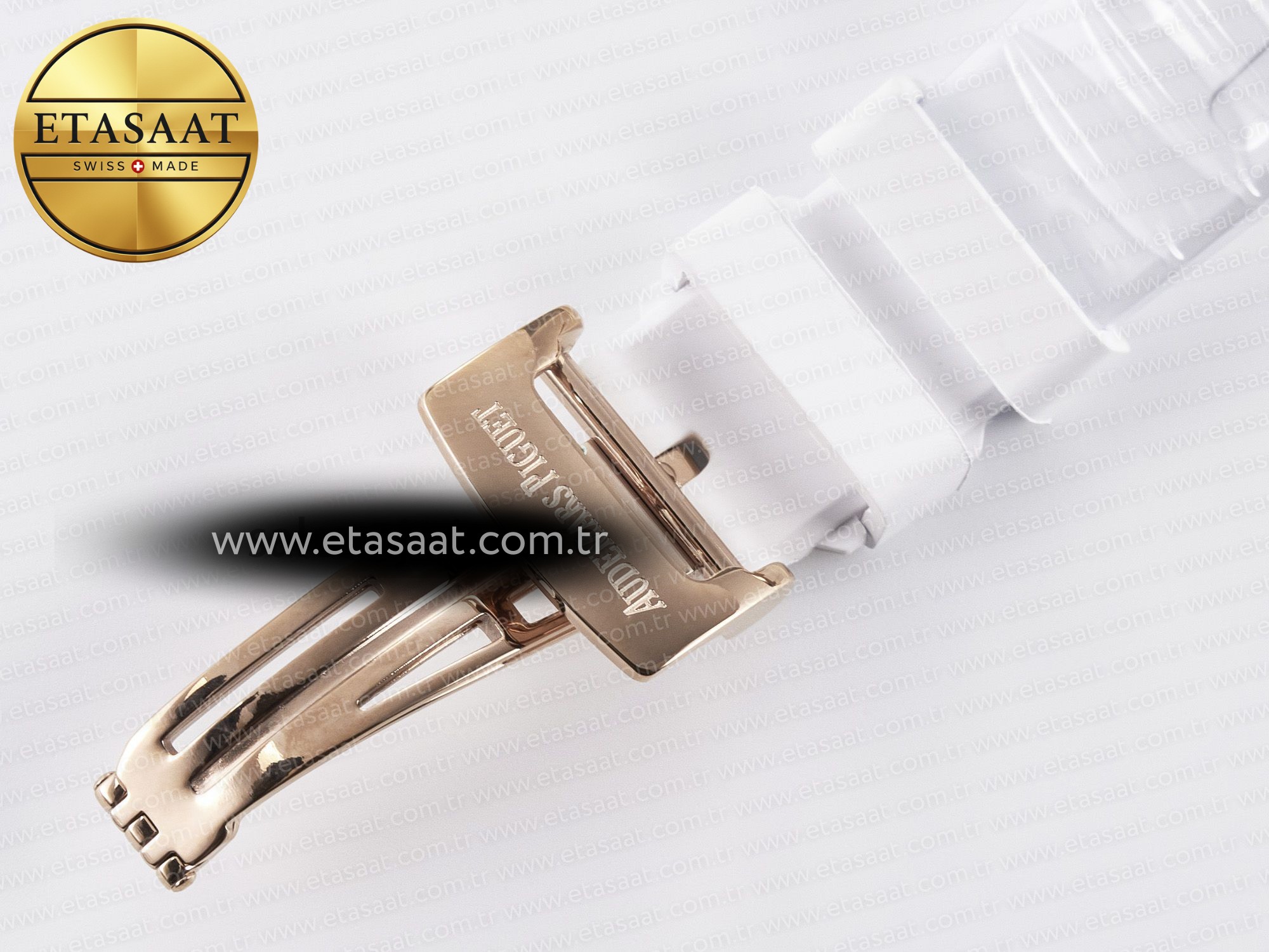Audemars Piguet Royal Oak Offshore Ladies 33mm RG DRF Best Edition White Dial Diamonds Bezel on White Rubber Strap ETA Quartz modeline sahip olmak için daha fazla beklemeyin. Bu eşsiz saat, stilinizi tamamlayacak ve size her ortamda özgüven katacaktır. Hemen sipariş verin ve zarafetinizi taçlandırın!