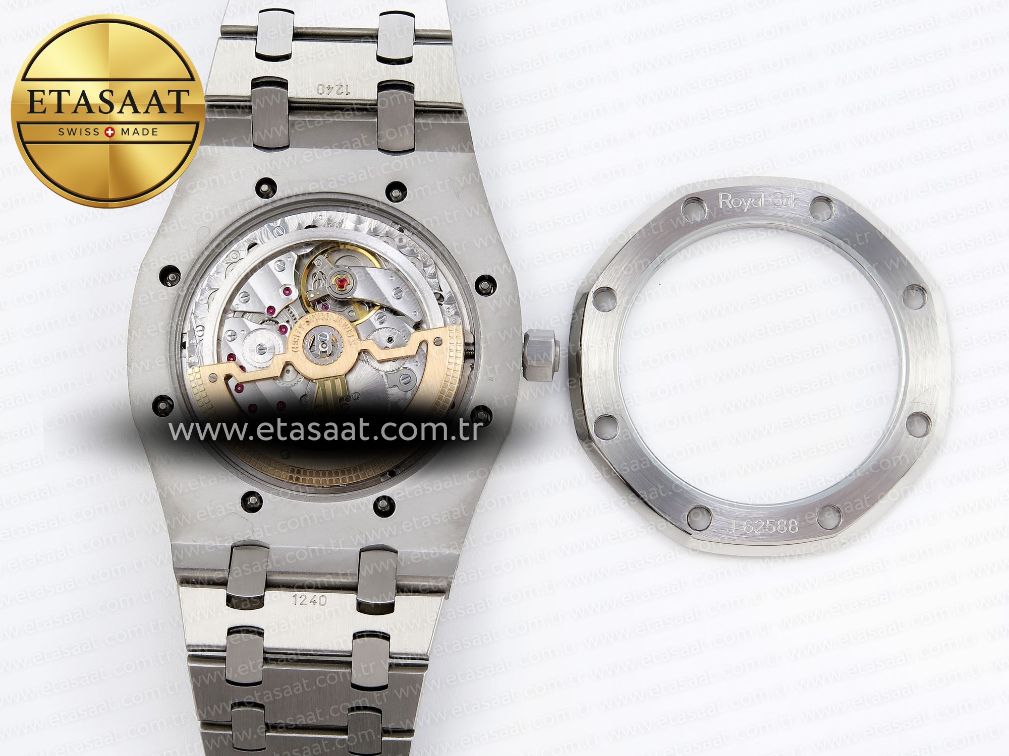 Audemars Piguet Royal Oak 15202 SS IPF, sadece görünümüyle değil, aynı zamanda sunduğu performansla da öne çıkar. Japon MIYOTA 9015 otomatik mekanizma, 28800vph hızında çalışarak yüksek hassasiyet ve güvenilirlik sağlar. Mekanizma, platin kaplama plakası ve rotor ile süslenerek, orijinal AP Calibre 2121 mekanizmasının görsel estetiğini yansıtır. Bu detaylar, saatin değerini ve kalitesini artırır. Saatinizin her anında güvenebileceğiniz bir performans sunması, onu vazgeçilmez kılar.