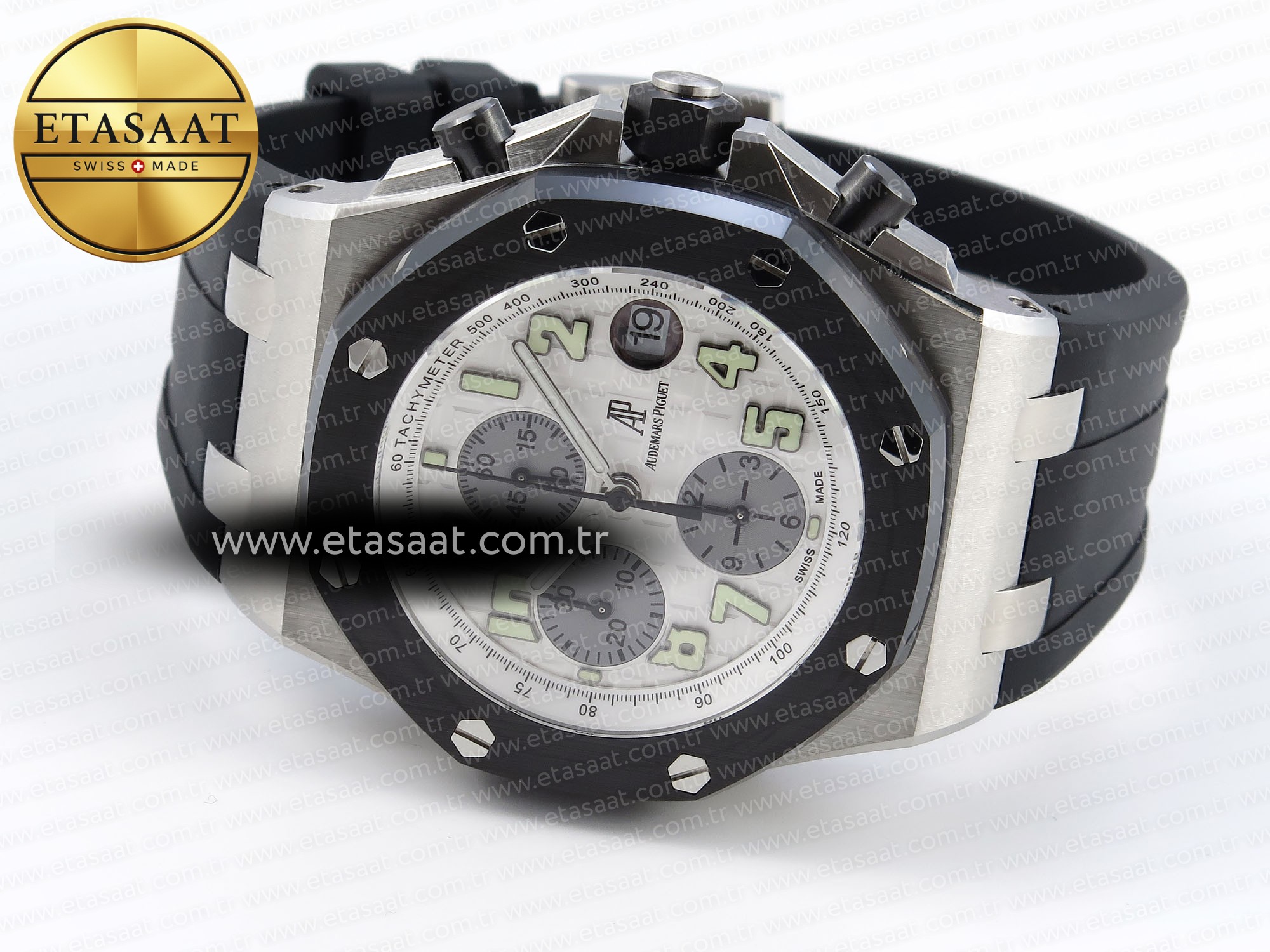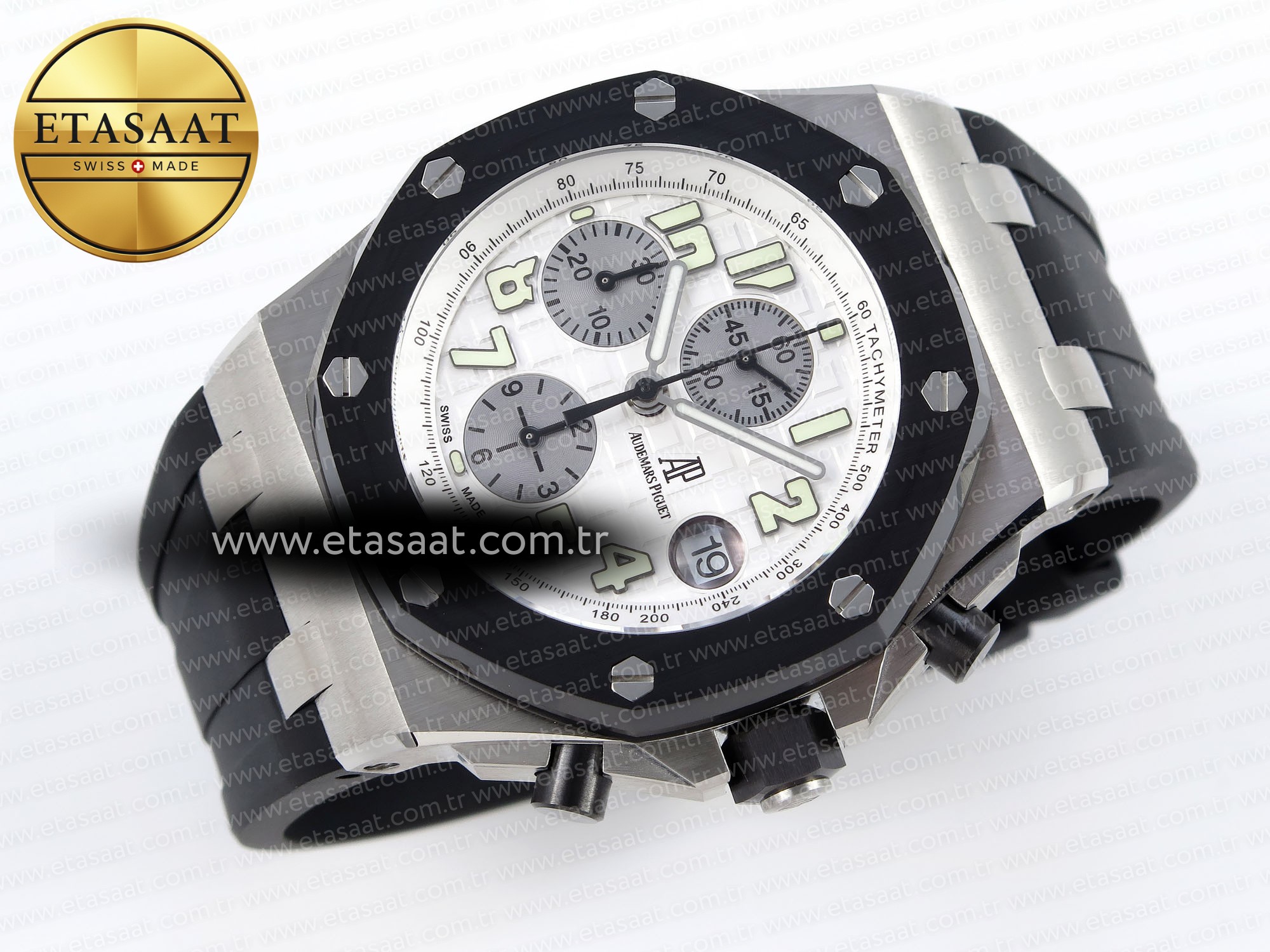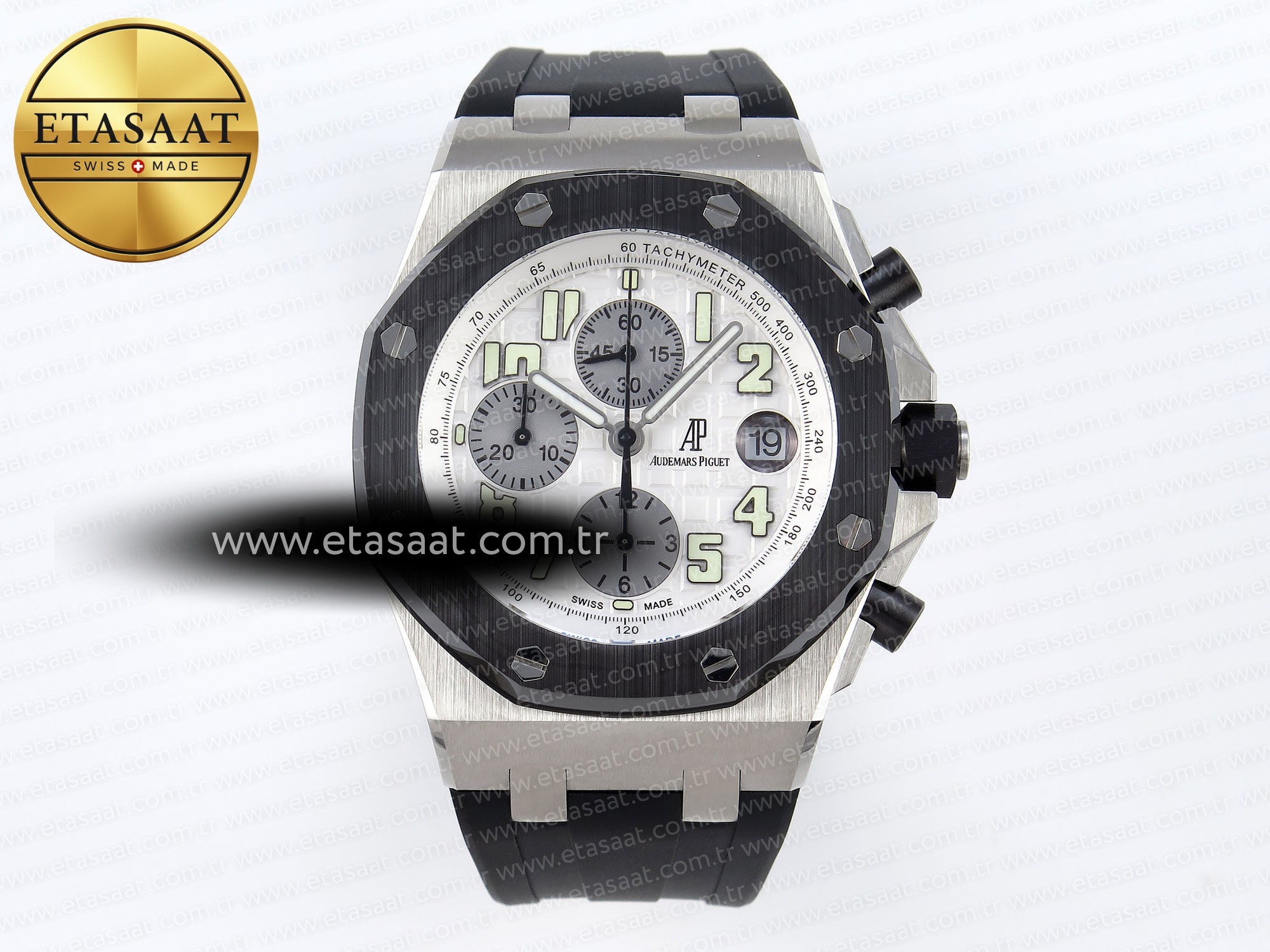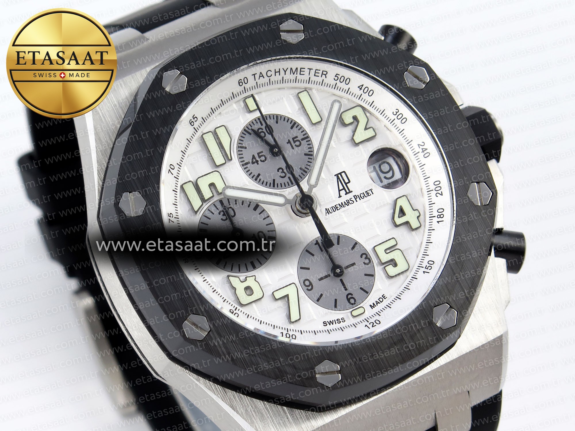 Audemars Piguet Royal Oak Offshore ile stilinizi yükseltin. Seramik bezel, siyah kauçuk kayış ve A7750 mekanizma ile mükemmel işçilik.