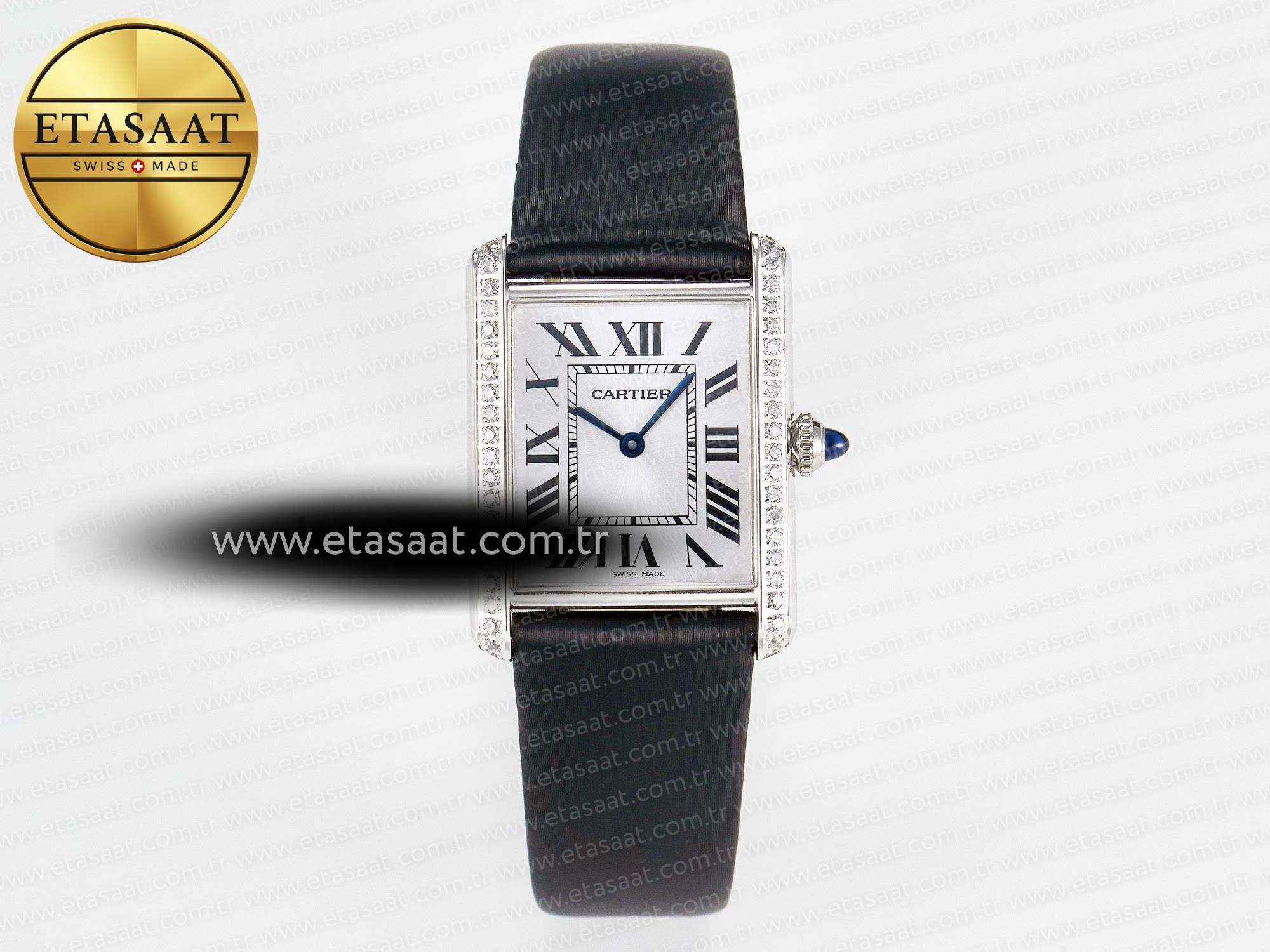Cartier Tank Must Large SS 33.7mm DRF 1:1 Best Edition White Dial Diamonds Bezel on Black Calfskin Strap Swiss Quartz