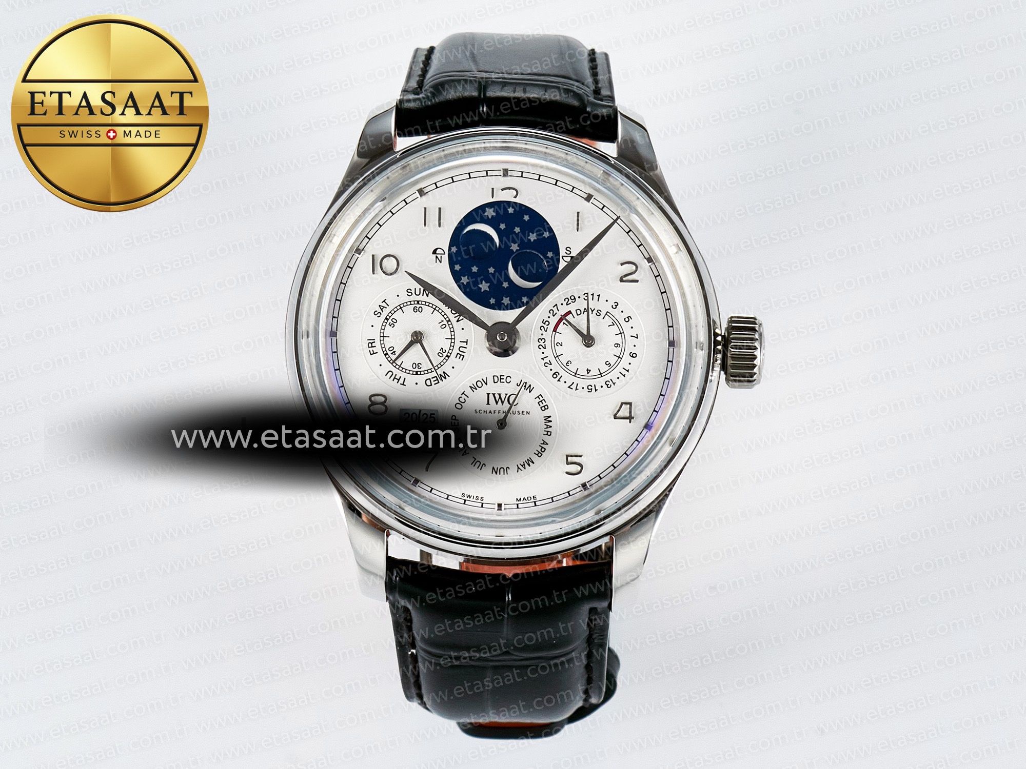 IWC IW5034 Portugieser Perpetual Calendar SS V9F 1:1 Best Edition White Dial on Black Leather Strap A52610