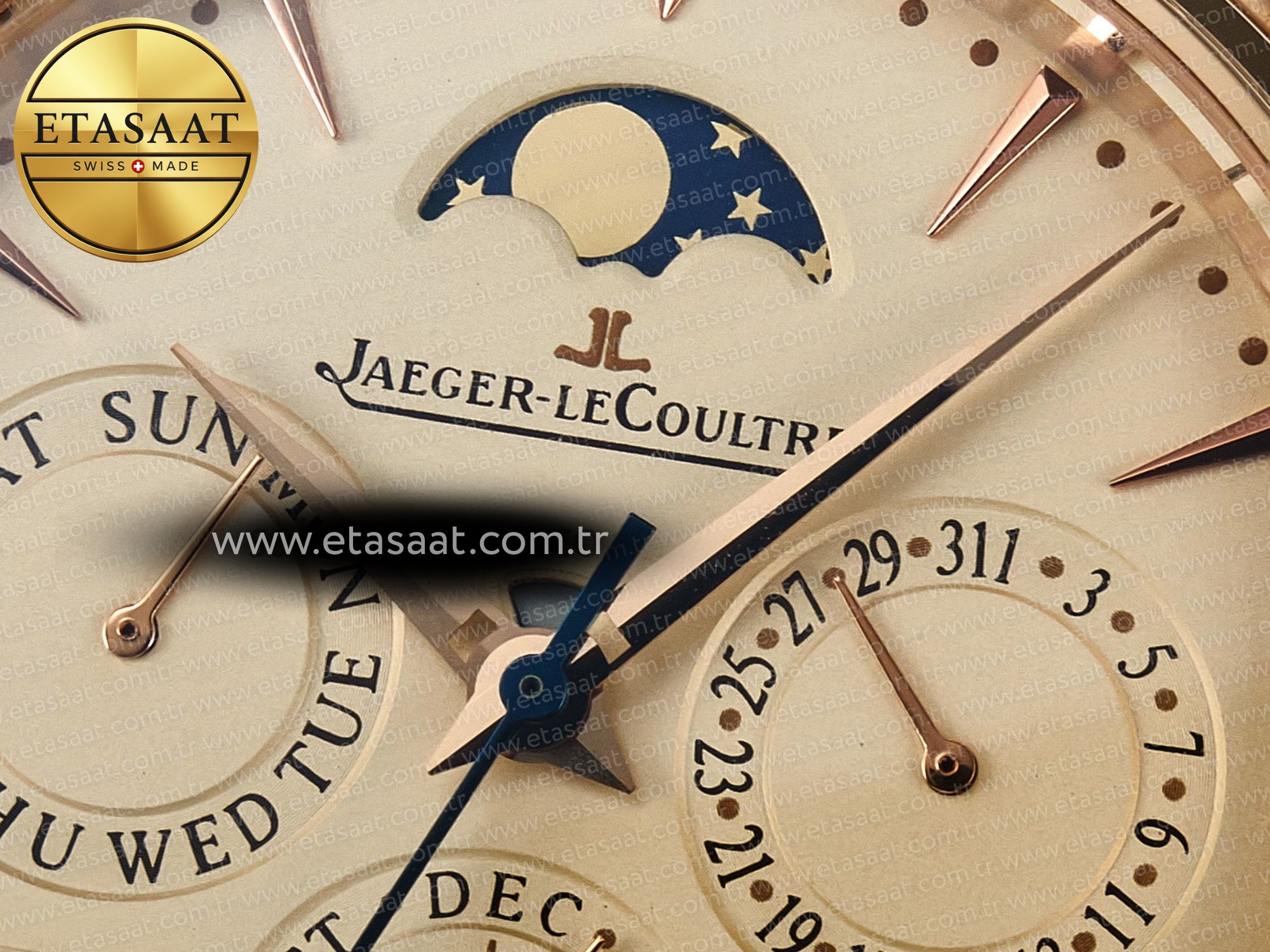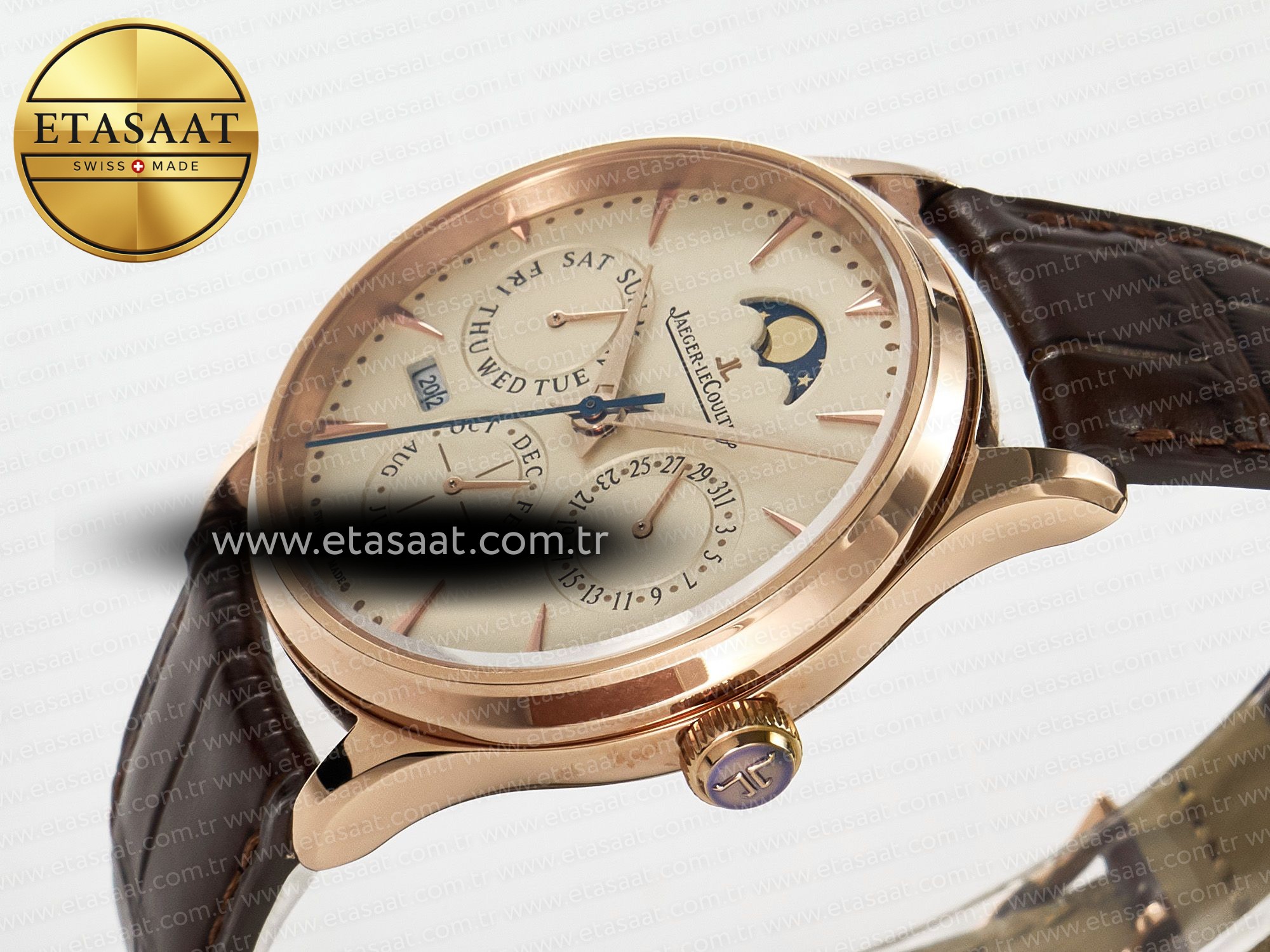 Jeager Lecoultre Master Ultra Thin Perpetual Calendar RG V9F 1:1 Best Edition Cream Dial on Brown Leather Strap A868 V2 – Zamansız Zarafet ve Mükemmel İşçilik