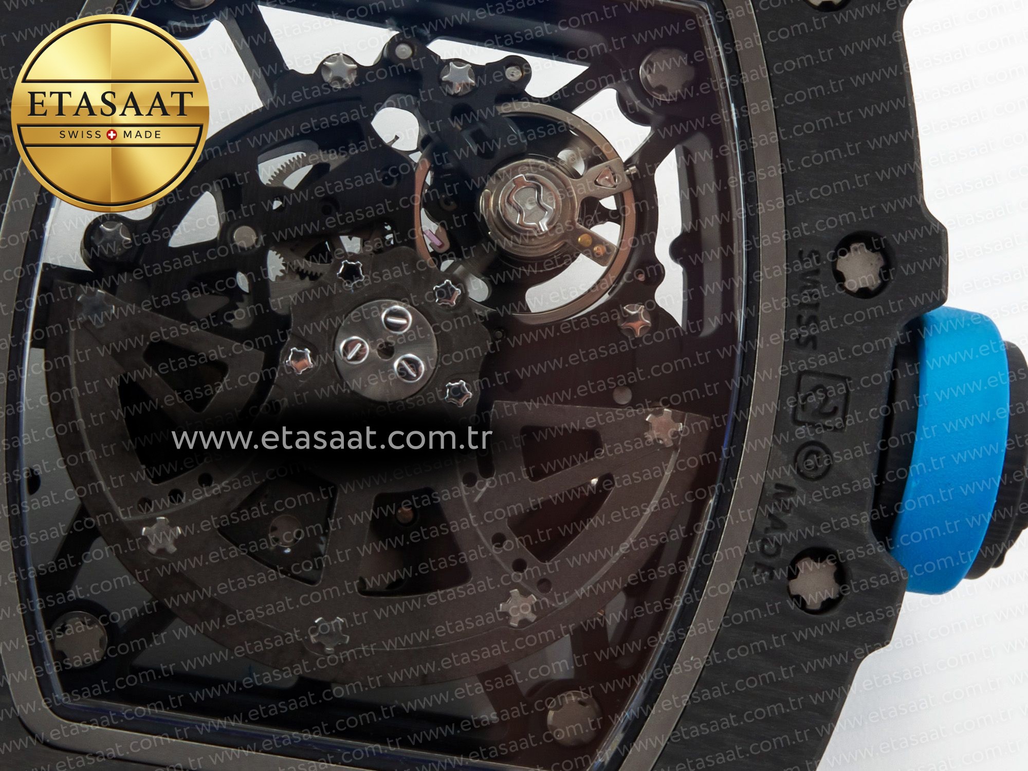 Richard Mille RM035 Carbon SONIC ile tanışın! Mükemmel iskelet kadranı ve mavi kauçuk kayışı ile stilinizi yükseltin. RMUL2 V2 klon.