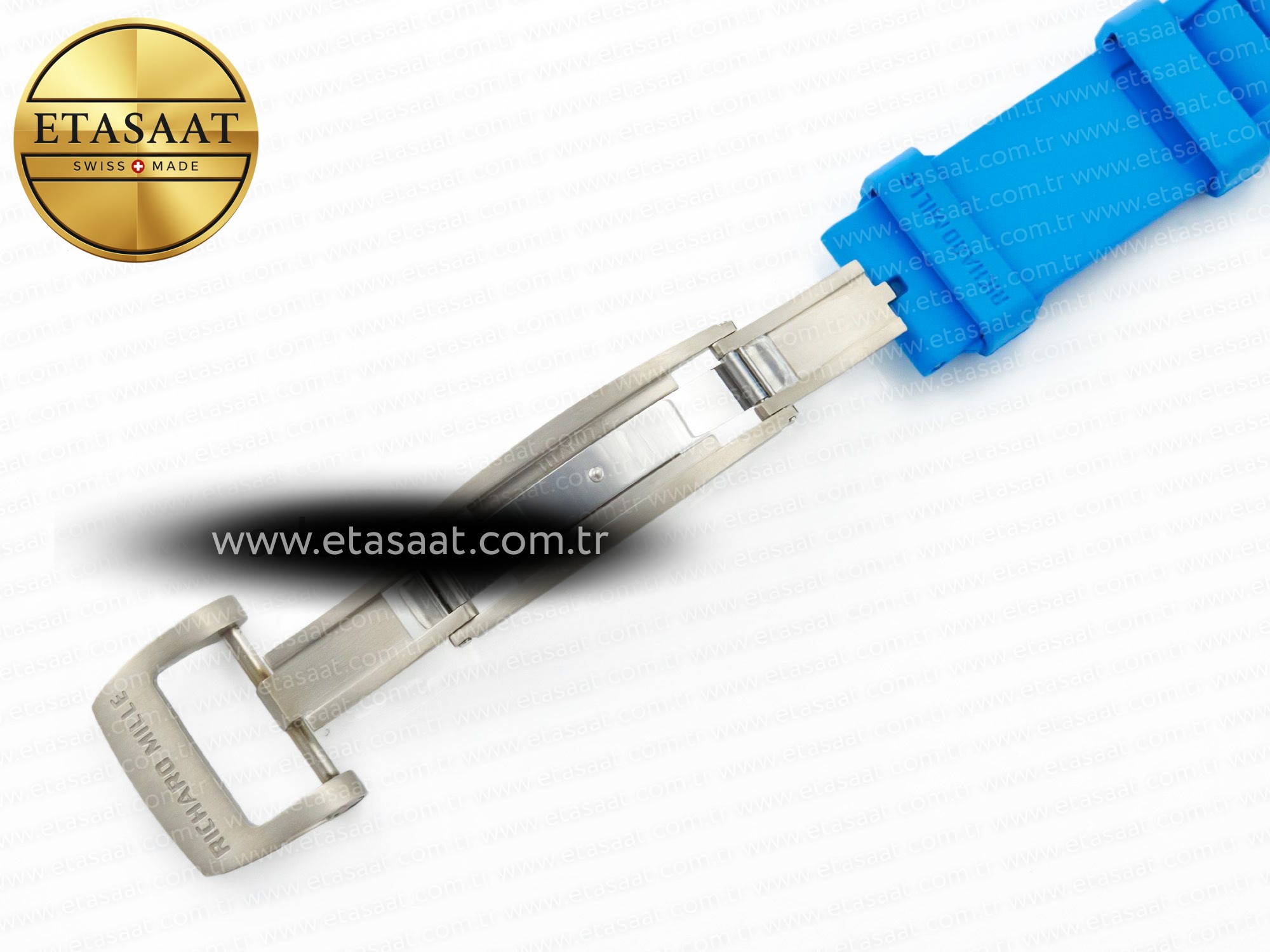 Richard Mille RM035 Carbon SONIC Best Edition’ın mavi kauçuk kayışı, saate sportif ve modern bir görünüm kazandırır. Kauçuk kayış, bileğinizde rahat bir kullanım sağlarken, terlemeyi önler ve cildinizi tahriş etmez. Mavi renk, saate canlılık ve enerji katar. Kauçuk kayışın dayanıklı yapısı, saati uzun yıllar boyunca güvenle kullanabilmenizi sağlar. Richard Mille RM035 Carbon SONIC Best Edition’ın mavi kauçuk kayışı, saatin tasarımını tamamlar ve ona ayrıcalıklı bir hava katar.