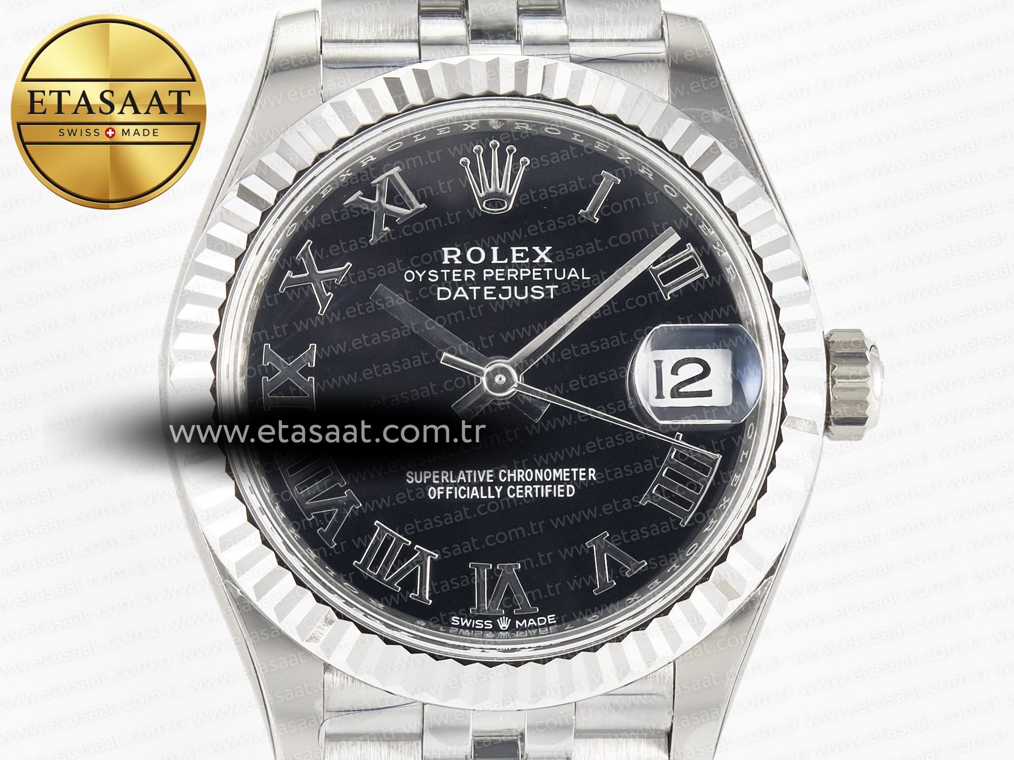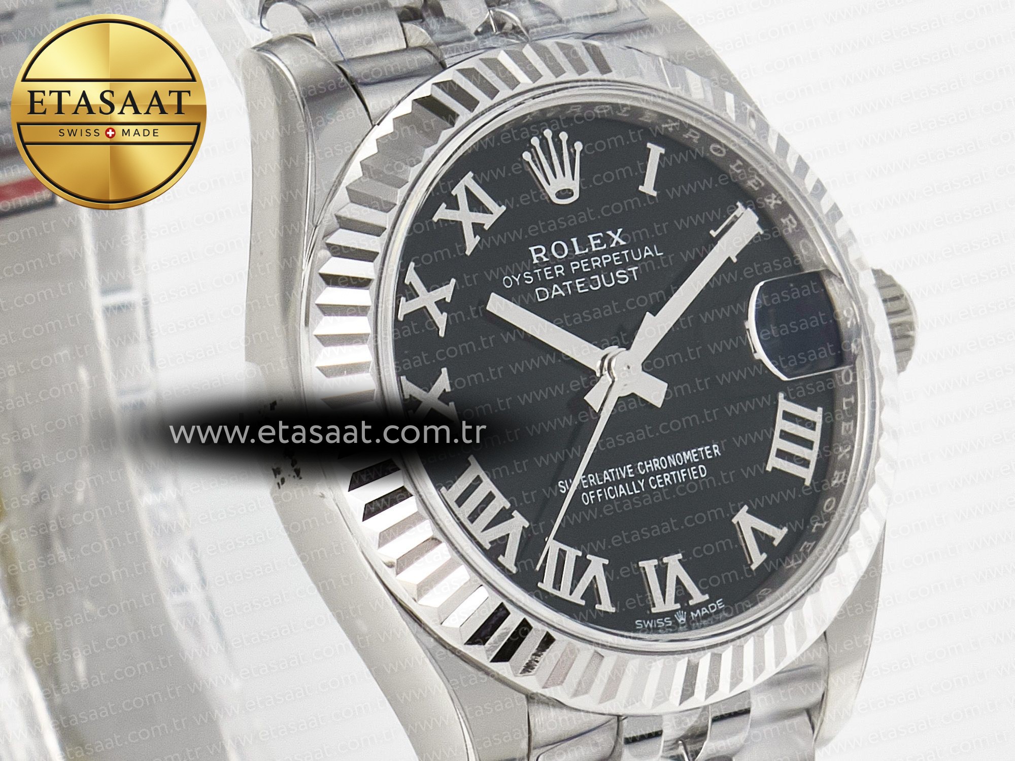 Rolex DateJust 31 ile zarafeti yakalayın. 904L çelik, siyah Roma kadran ve Jubilee kordonla mükemmel uyum. Lüksü doruklarda yaşayın.