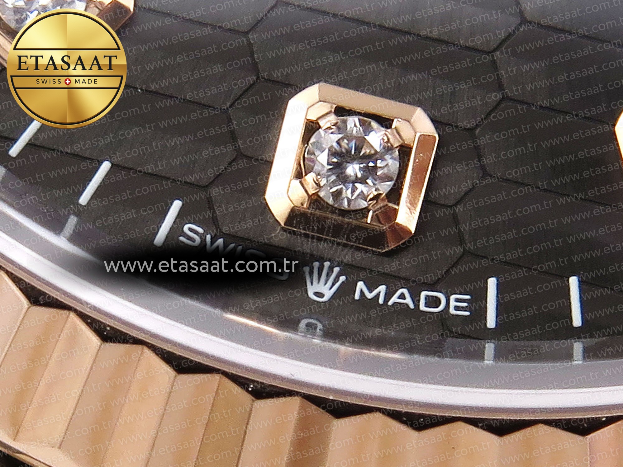 Saatin en dikkat çekici özelliklerinden biri, Gray Textured Diamonds Dial yani gri dokulu elmas kadranıdır. Bu kadran, saate sofistike ve lüks bir hava katar. Elmaslar, ışığı mükemmel bir şekilde yansıtarak, saatin her açıdan parlamasını sağlar. Kadran üzerindeki markörler ve ibreler, kolay okunabilirlik için tasarlanmıştır. Saat, dakika ve saniye göstergelerinin yanı sıra, tarih göstergesi de bulunmaktadır. Tarih göstergesi, saatin işlevselliğini artırır.