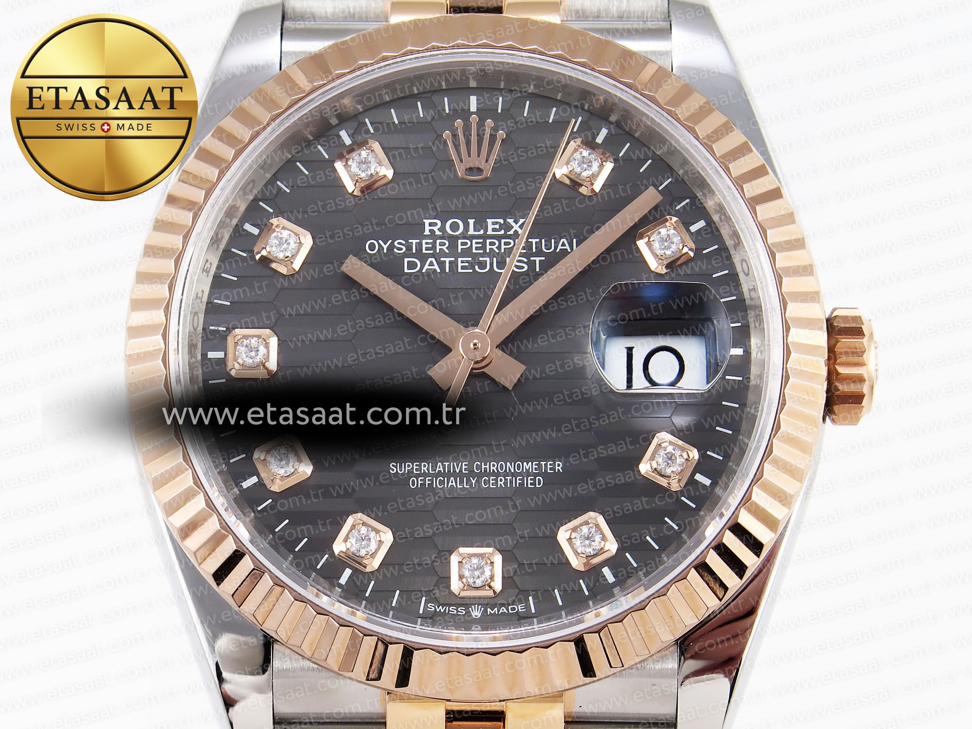 “Rolex DateJust 36 SS/RG 126231 Gray Textured Diamonds Dial on Jubilee VS3235” için yorum yapan ilk kişi siz olun