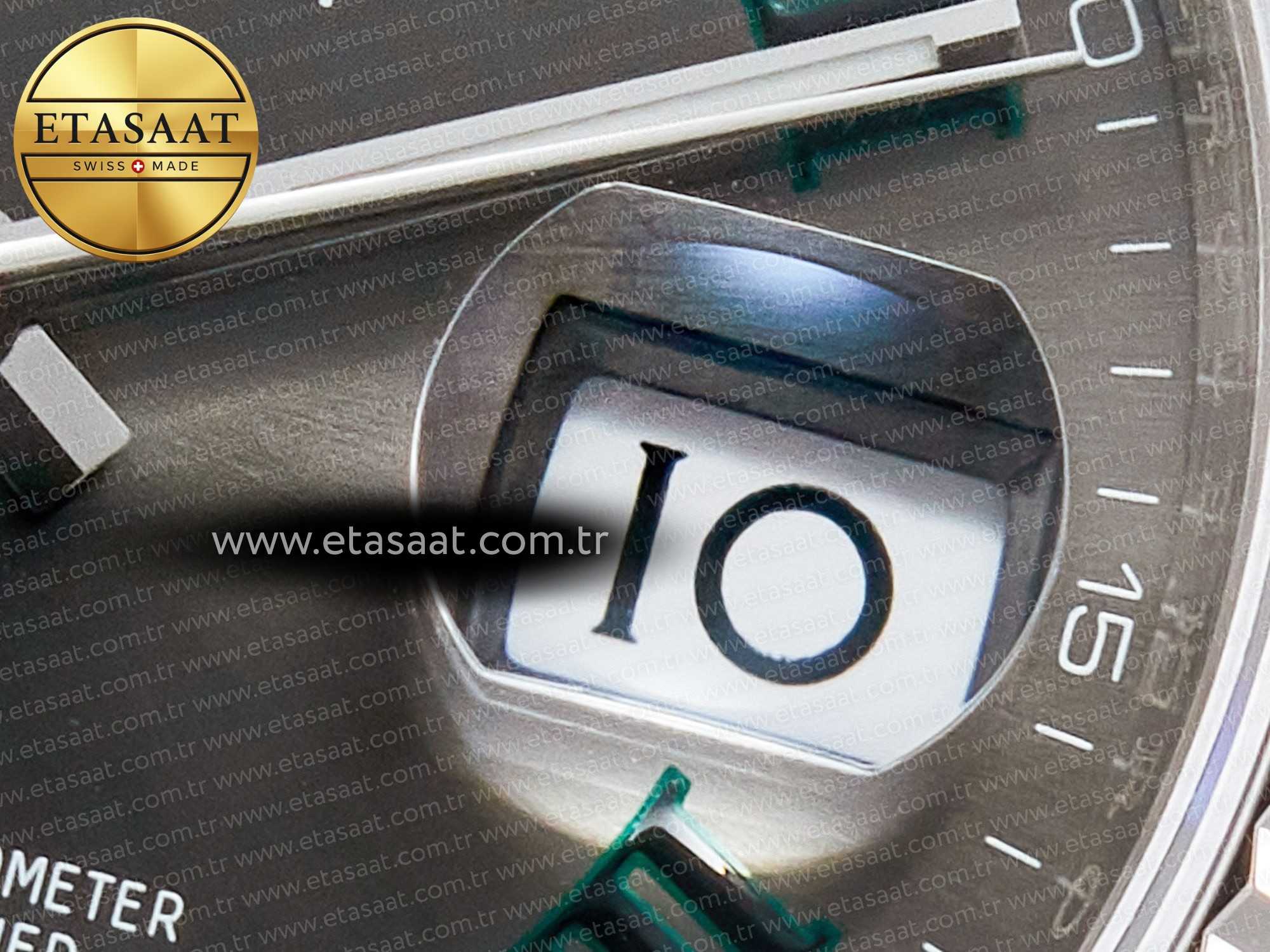 - Gri Kadran ve Yeşil Romen Rakamları: Benzersiz renk kombinasyonu, saate sofistike bir görünüm kazandırır.