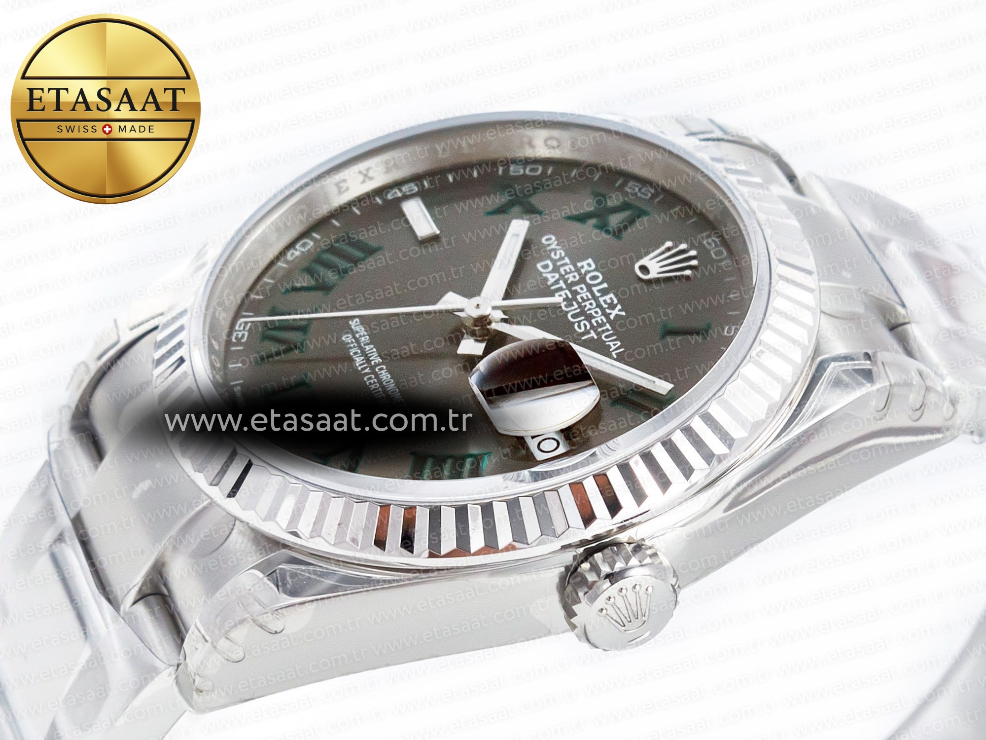VSF üretimi Rolex Datejust 41 126330 ile zarafeti yakalayın. Gri kadran, yeşil Romen rakamları ve üstün VS3235 mekanizmasıyla lüksü yaşa.