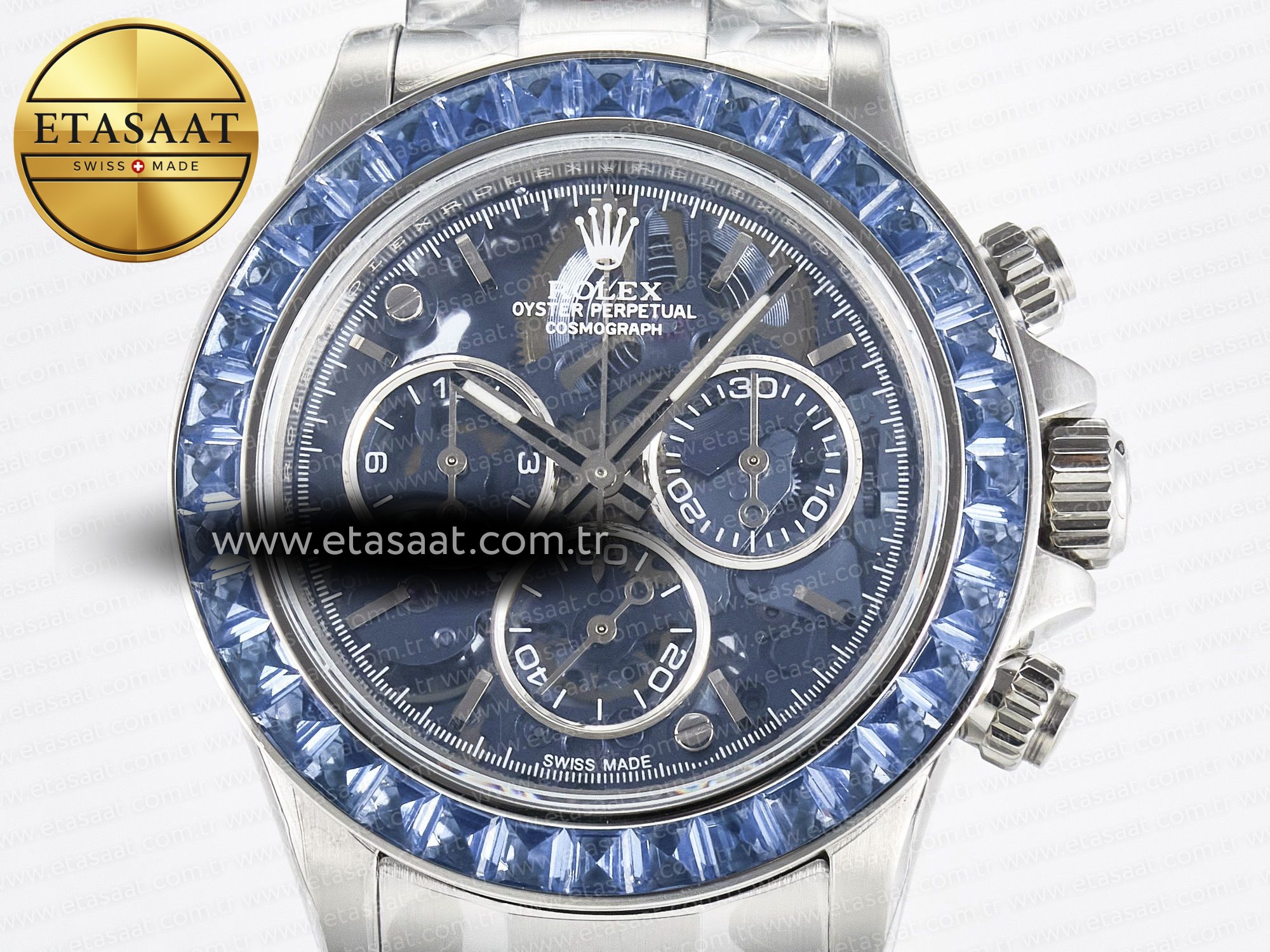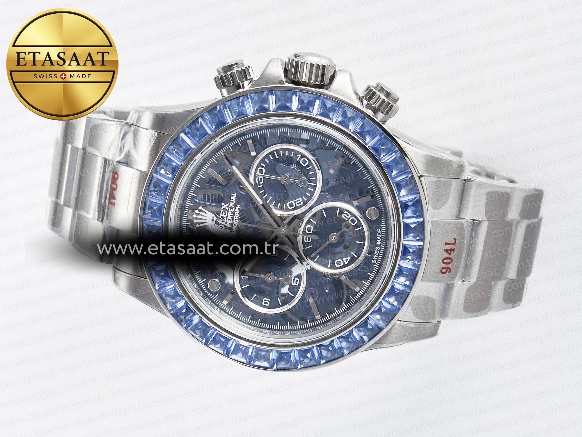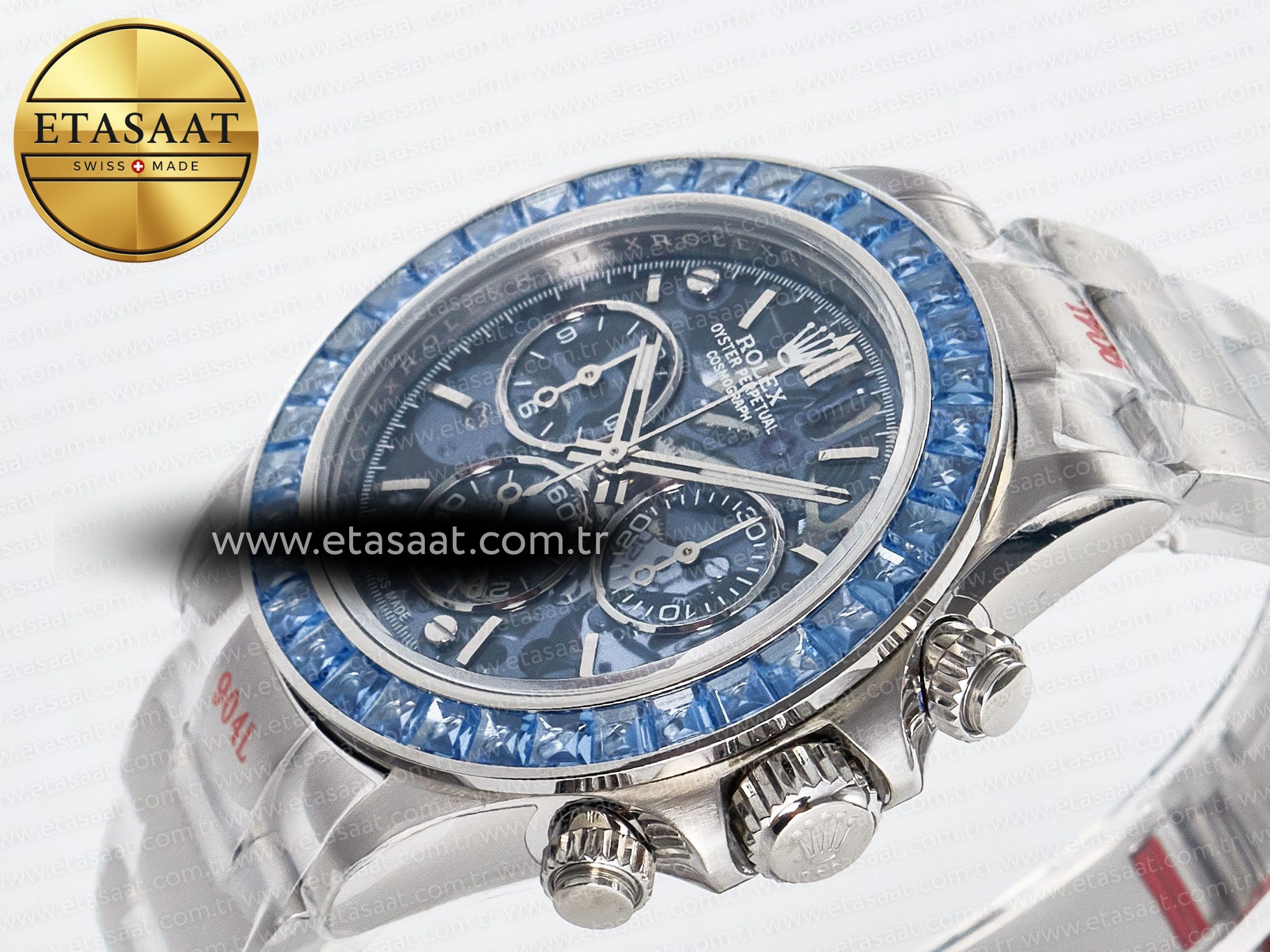 Rolex Daytona Artisans SS GETF Best Edition Blue Skeleton Dial Diamonds Bezel on SS Bracelet DD4802
