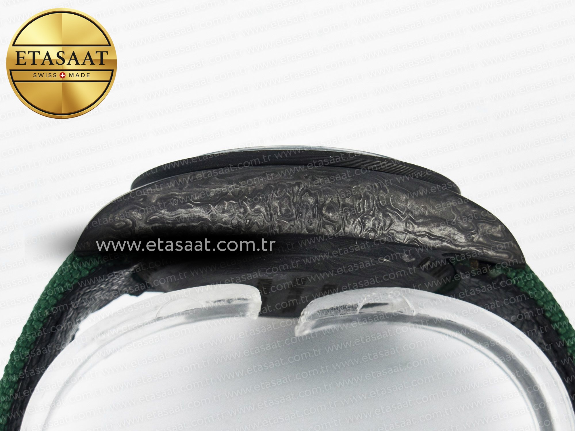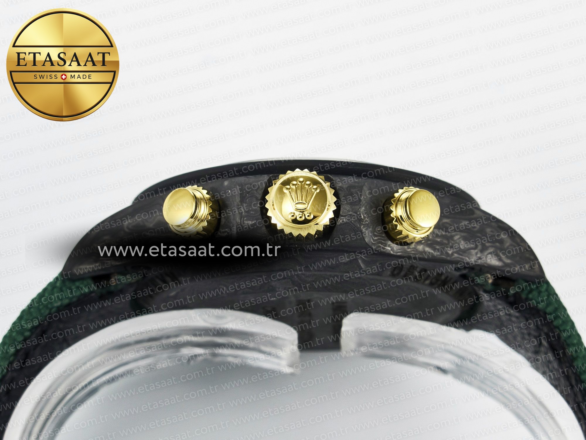 Bu özel Rolex Daytona, sadece bir saat değil, aynı zamanda bir stil ifadesidir. Karbon fiber kasanın hafifliği ve dayanıklılığı, saatin kullanım konforunu artırırken, yeşil ve altın renk kombinasyonu, zarafeti ve lüksü temsil eder. Yeşil naylon kayış, spor bir dokunuş katarken, saatin genel tasarımına uyum sağlar. Rolex Daytona DIW Carbon, sıradanlıktan uzaklaşmak ve bileğinizde fark yaratmak isteyenler için ideal bir seçenektir. Bu saat ile hem şıklığınızı tamamlayacak hem de Rolex’in zamansız mirasını taşıyacaksınız.