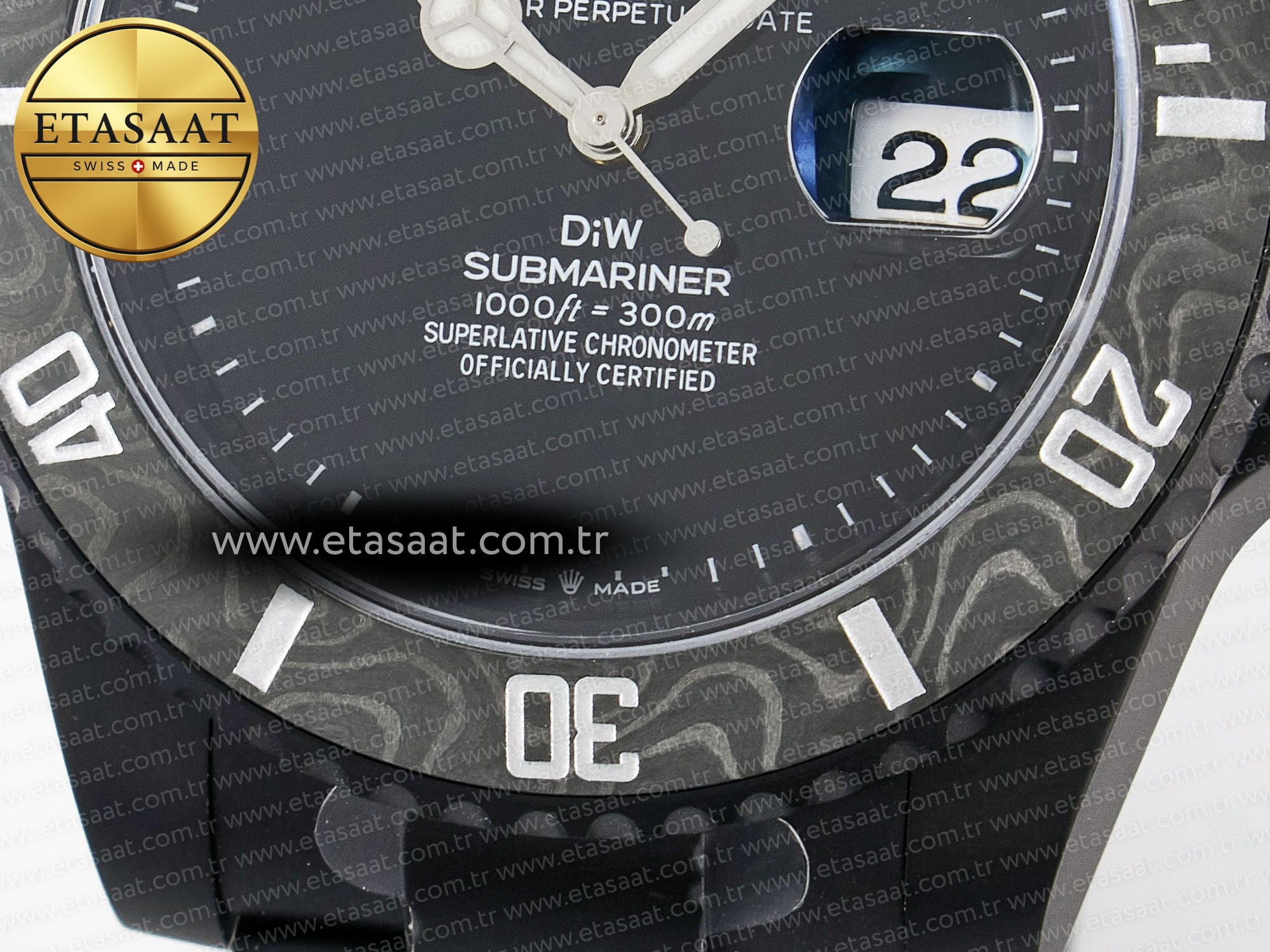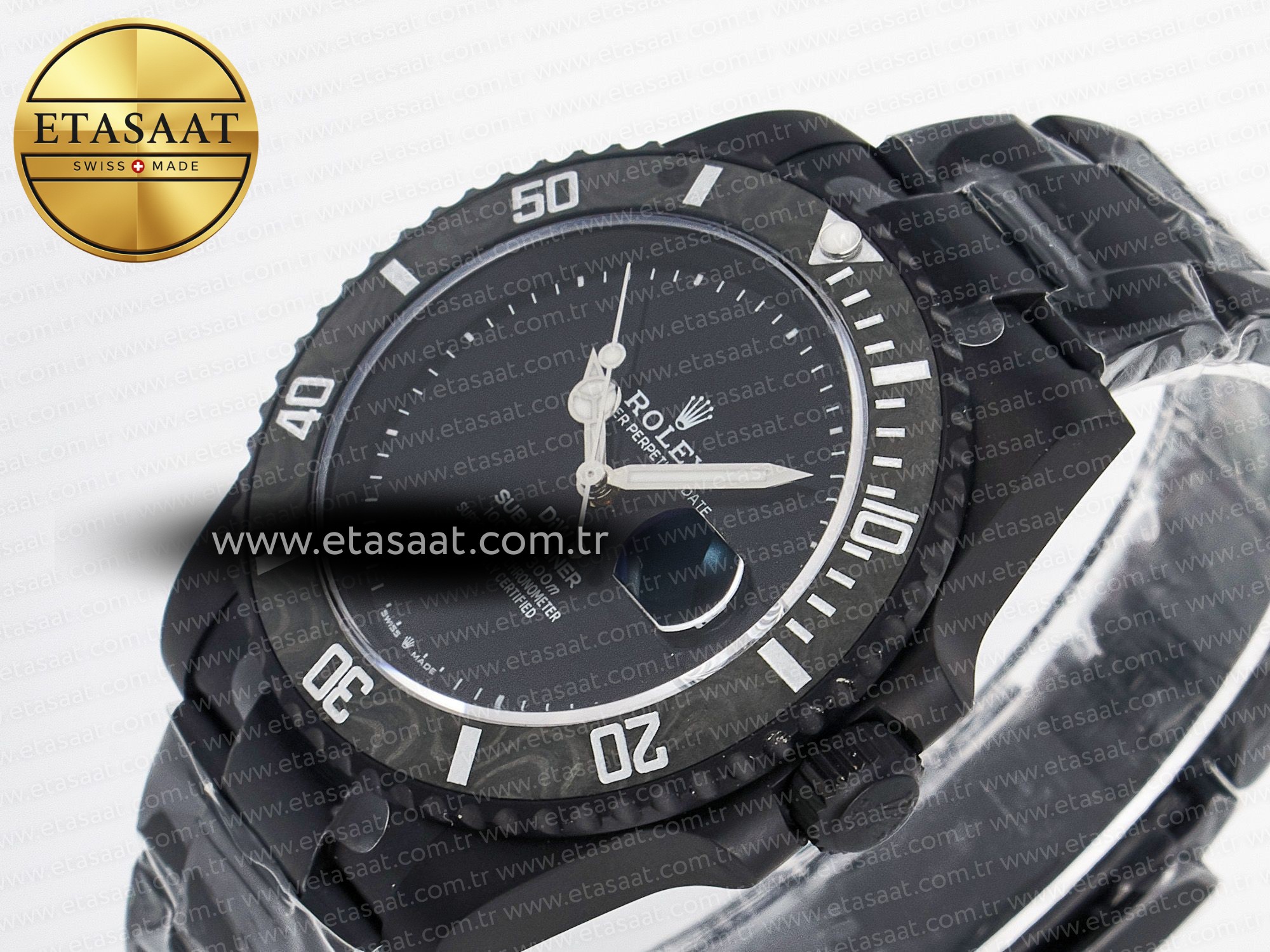 Saatin tek yönlü dönebilen karbon bezel, dalış yaparken veya zamanı takip etmeniz gereken durumlarda size yardımcı olur. Bezel üzerindeki işaretler, kolayca okunabilir ve ayarlanabilir. DLC kaplamalı paslanmaz çelik bilezik, saatin kasası ile uyumlu bir görünüm sunar ve bileğinizde rahat bir kullanım sağlar. Katlanır toka, saatin güvenli bir şekilde bileğinizde kalmasını sağlar ve kolayca açılıp kapanabilir. Saatin Asian Super Clone 3135 otomatik mekanizma, orijinal Rolex mekanizmasının bir replikasıdır ve 28800 vph hızında çalışarak yüksek hassasiyet ve güvenilirlik sunar. Bu mekanizma, saatin uzun yıllar boyunca sorunsuz bir şekilde çalışmasını sağlar.