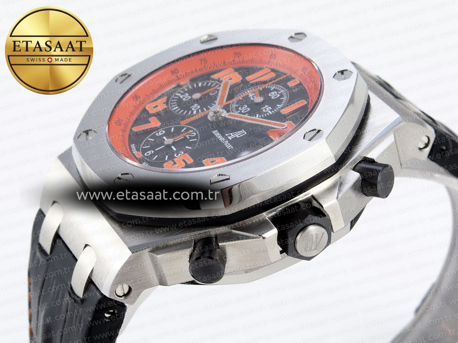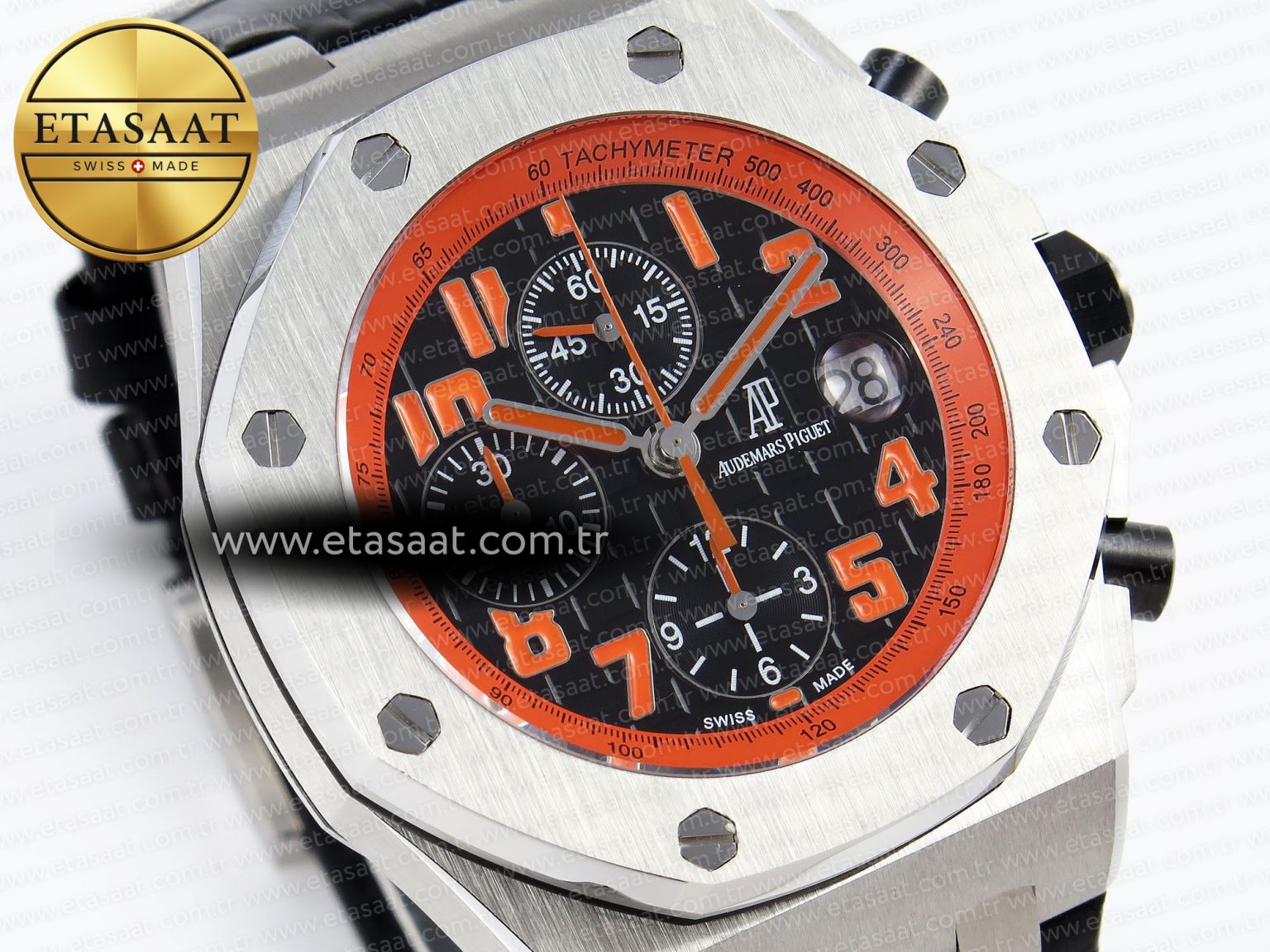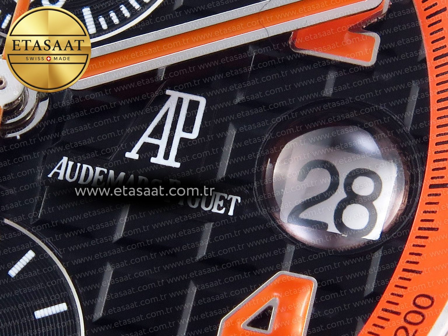 Audemars Piguet Royal Oak Offshore ile stilinizi yükseltin! APF 1:1 en iyi replika, siyah deri kayışı ve turuncu detaylarıyla fark yaratın. Lüksü hisset.