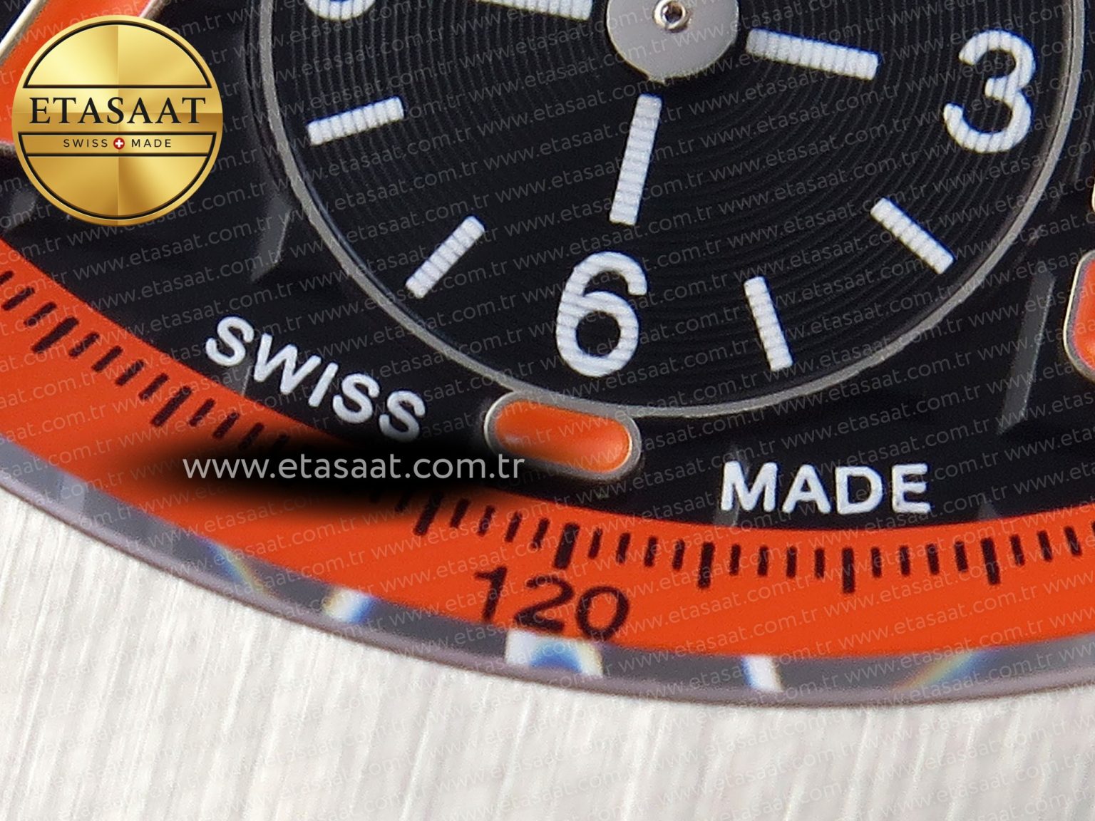 - Kadran: Çarpıcı siyah kadran ve turuncu işaretler