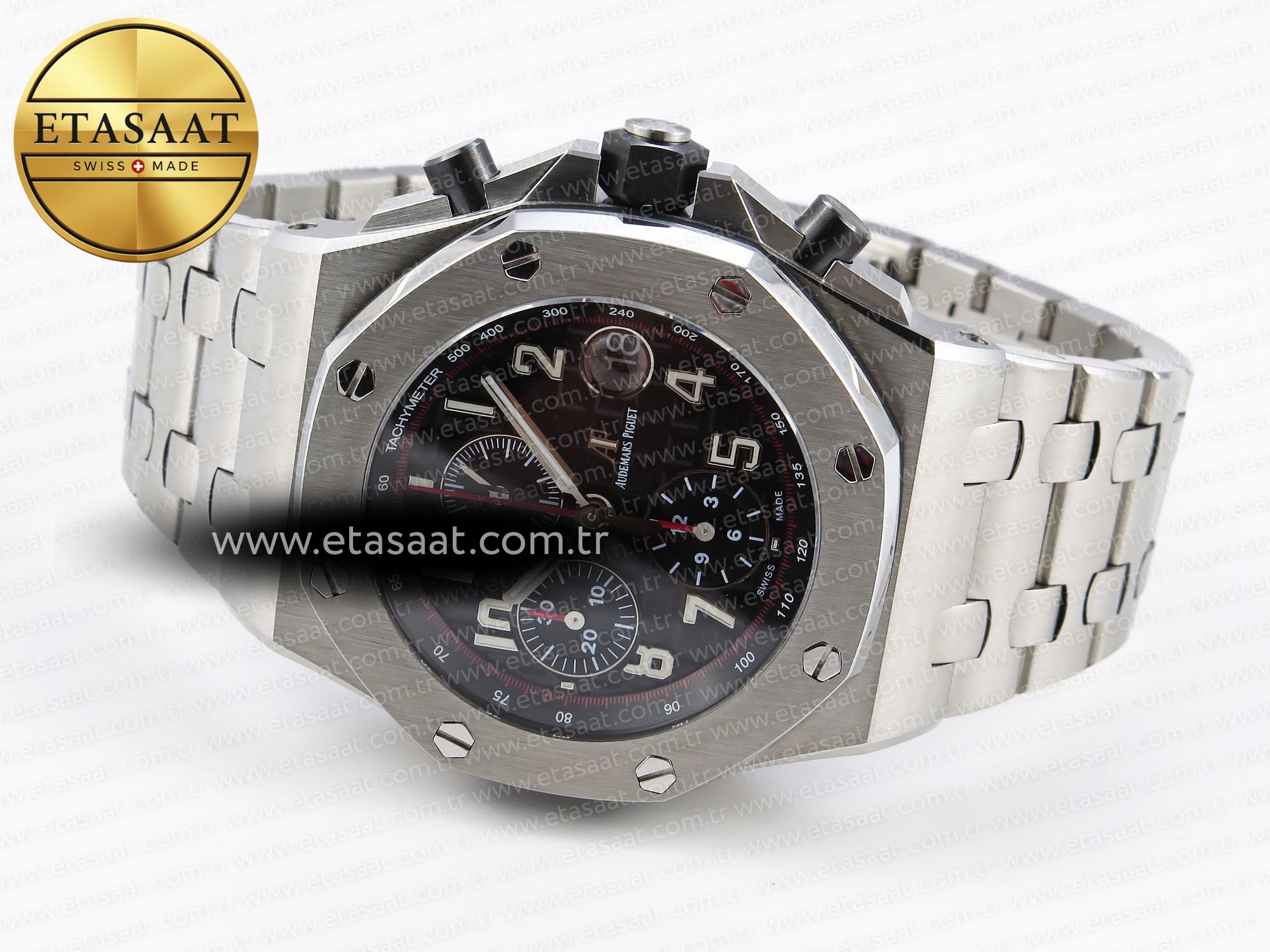 Bu özel model, Audemars Piguet’nin Royal Oak Offshore koleksiyonunun en beğenilen tasarımlarından biridir. 42mm kasa çapı, bileğinizde mükemmel bir duruş sergilerken, siyah kadran üzerindeki detaylar saatin okunabilirliğini artırır. Paslanmaz çelik bileziği, konforlu bir kullanım sunarken, saatin genel görünümüne şıklık katar. Bu saat, sadece bir zaman ölçer değil, aynı zamanda bir sanat eseridir. Her bir detayı özenle tasarlanmış ve üretilmiştir. Audemars Piguet’nin mükemmeliyetçi yaklaşımı, bu saatte en üst düzeyde kendini gösterir. Bu saat, sizin için bir yatırım ve uzun yıllar boyunca keyifle kullanabileceğiniz bir aksesuar olacaktır.