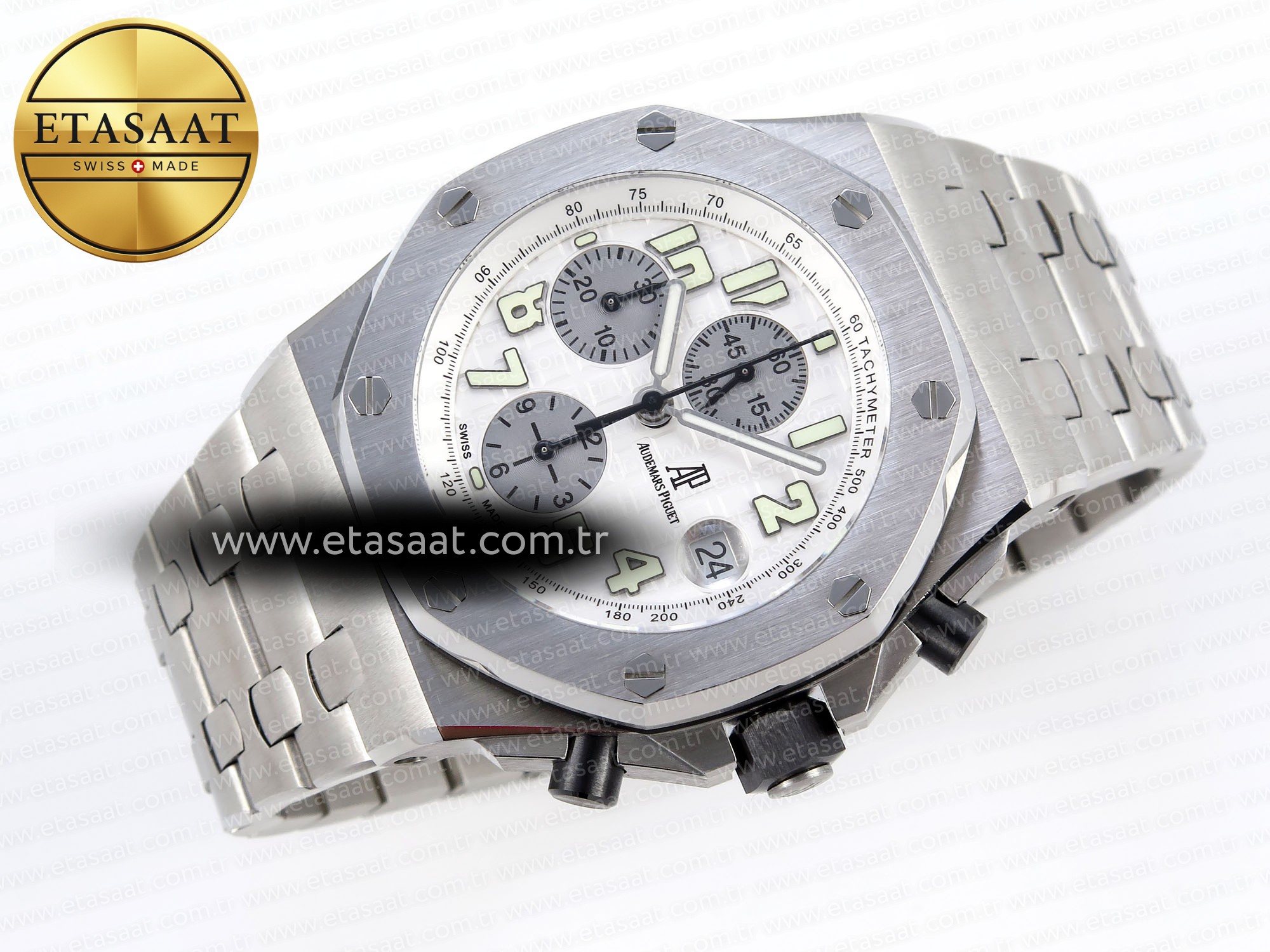 Audemars Piguet Royal Oak Offshore 42mm ile stilinizi yükseltin! En iyi 1:1 replika, kusursuz beyaz/gümüş kadranı ve mekanizmasıyla farklı ol.