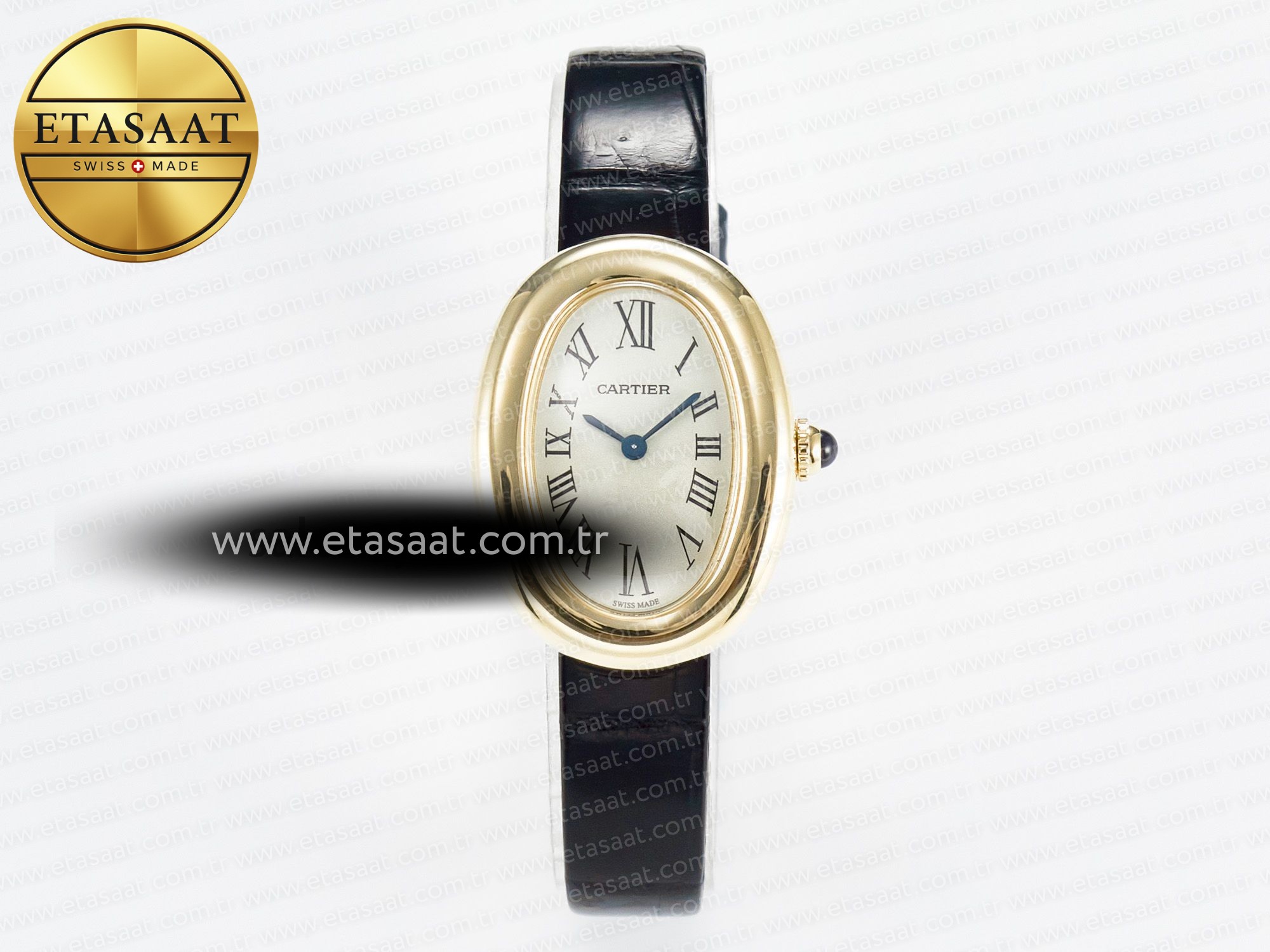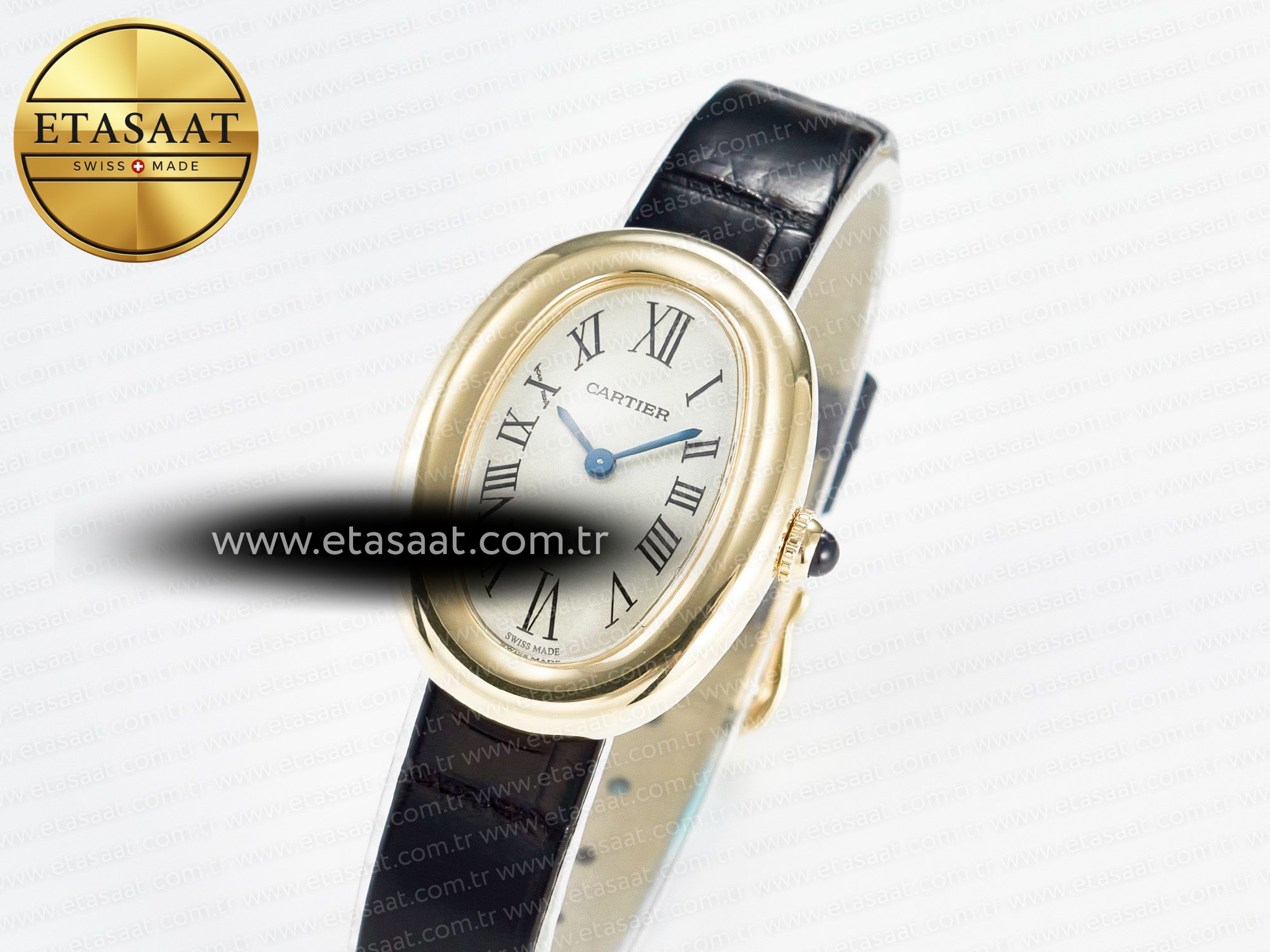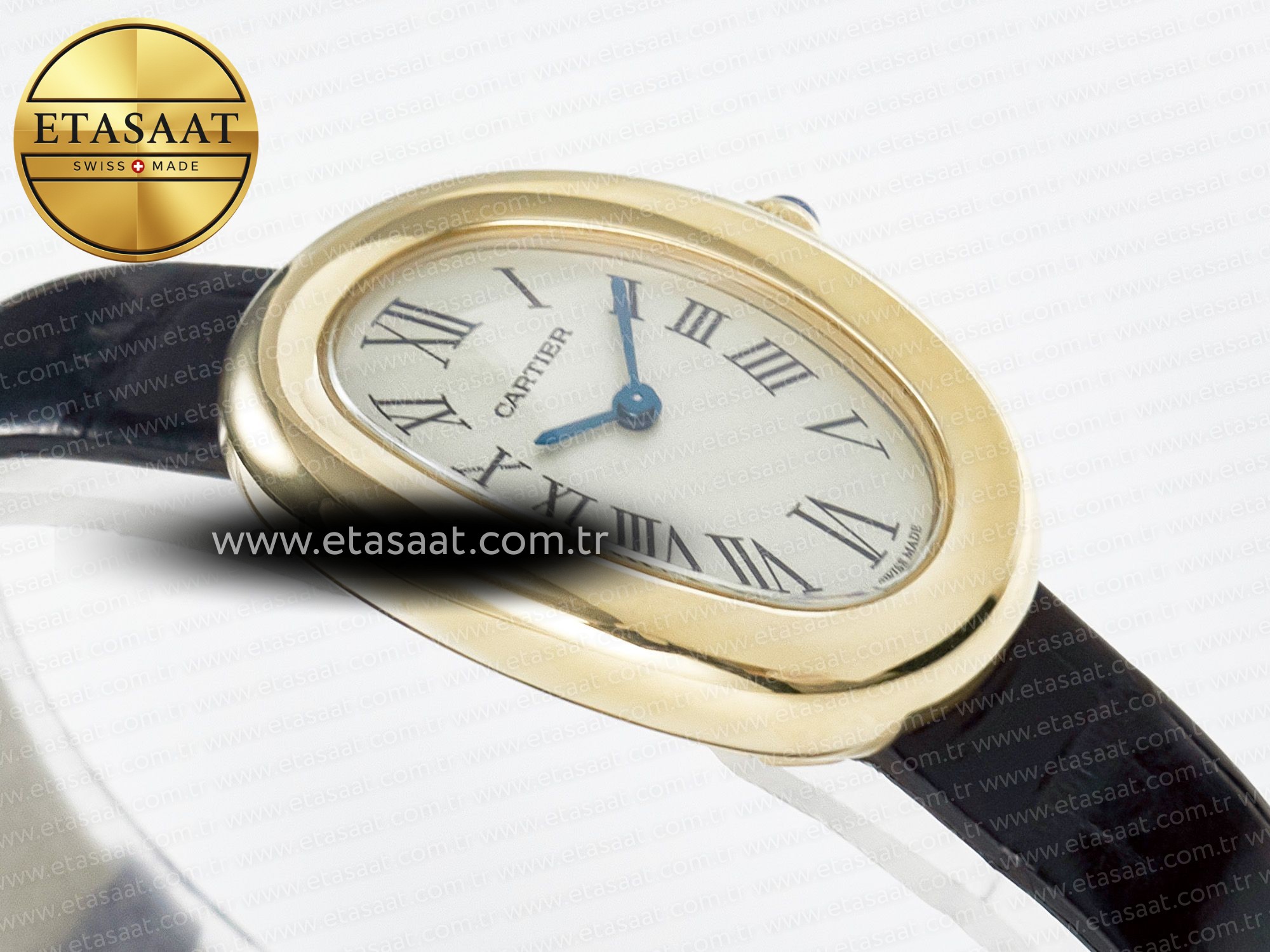 Baignoire De Cartier YG DRF 1:1 Best Edition Silver Dial on Black Leather Strap Swiss Quartz