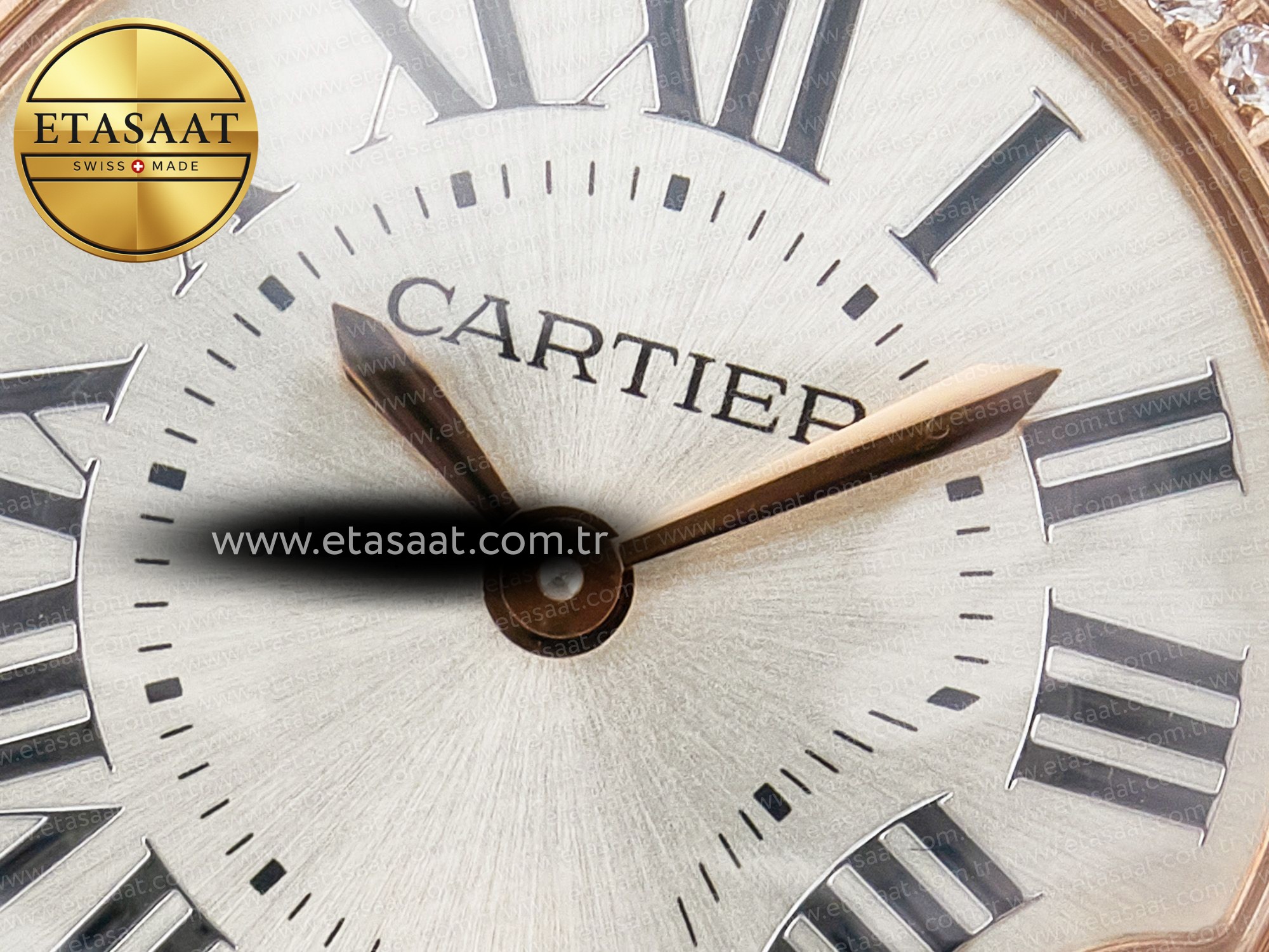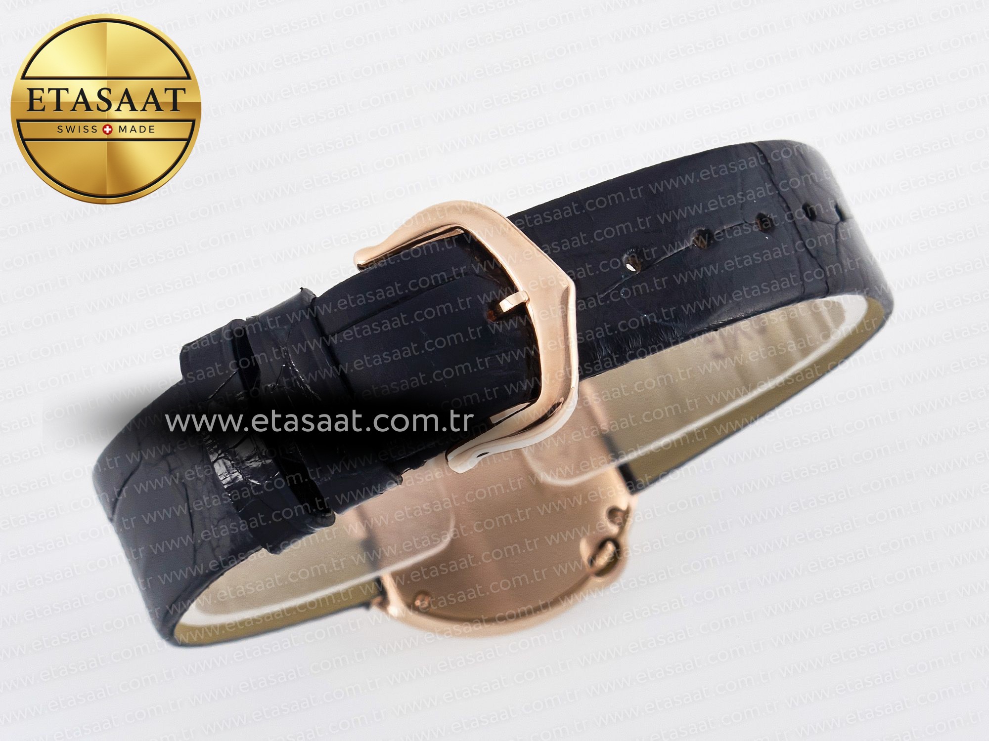 Ballon Blanc De Cartier 30mm RG DRF 1:1 Best Edition Silvered Texture Dial Diamonds Bezel on Black Leather Strap Ronda Quartz