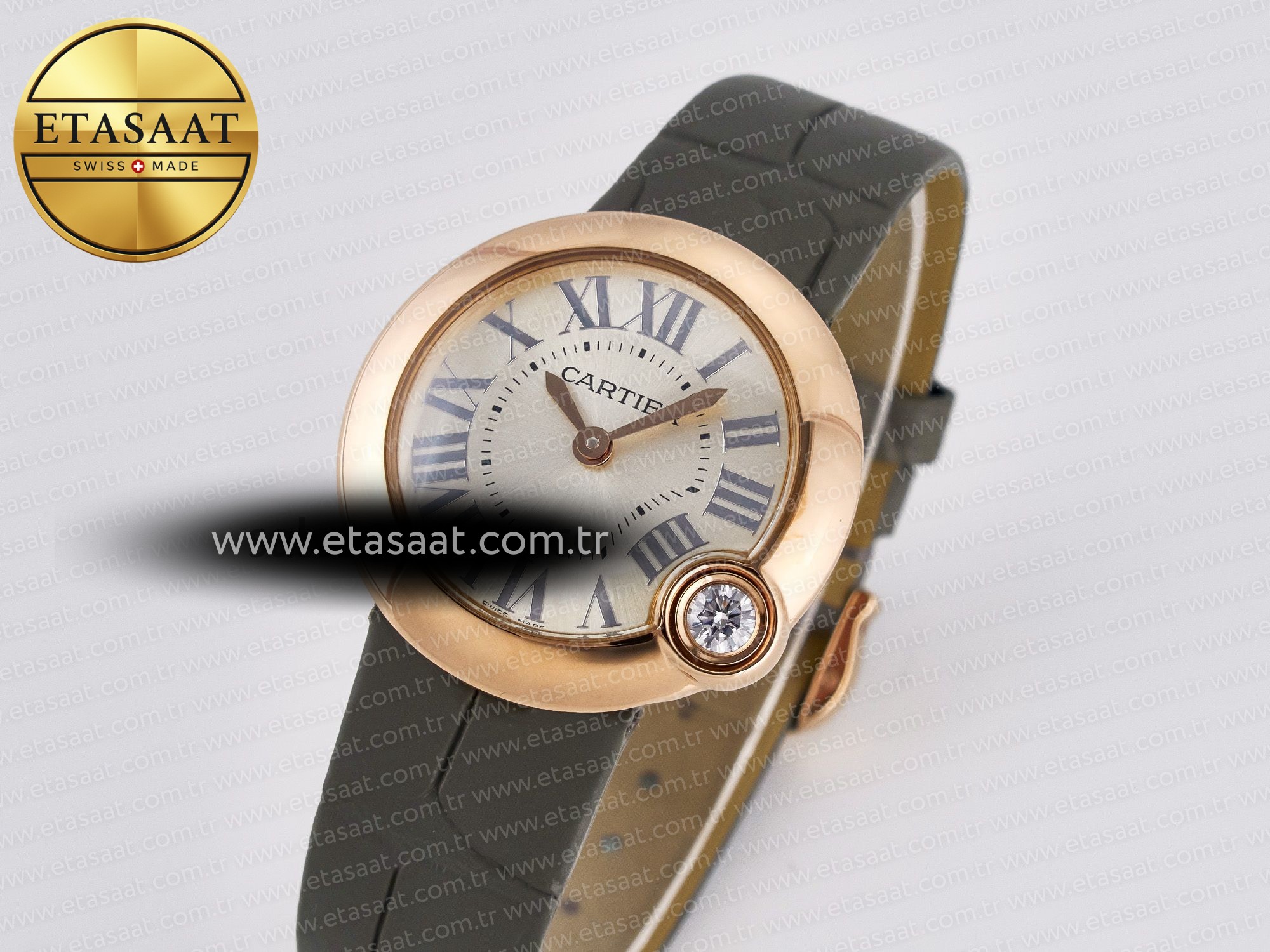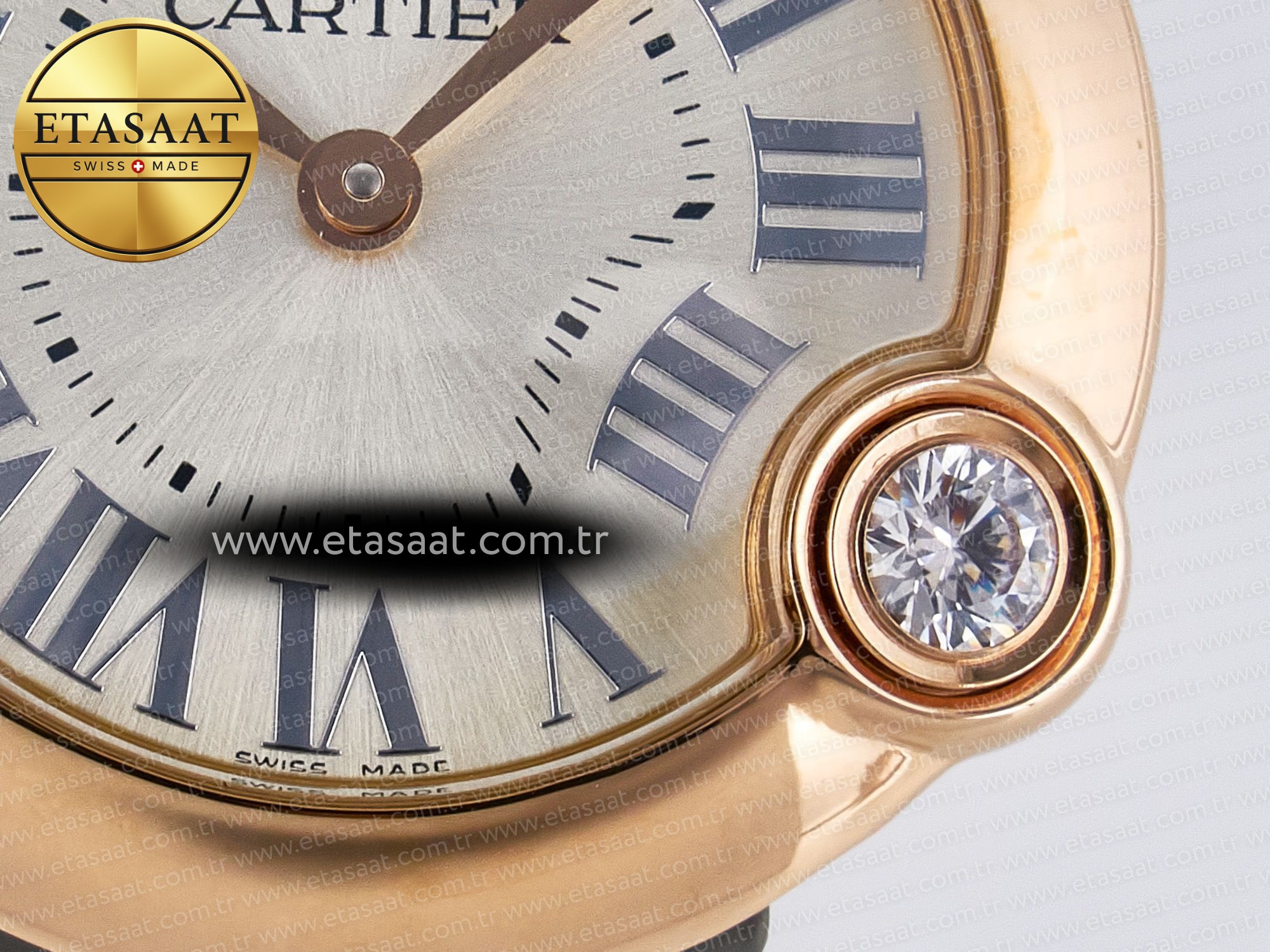 Ballon Blanc De Cartier 30mm RG DRF 1:1 Best Edition Silvered Texture Dial on Green Leather Strap Ronda Quartz