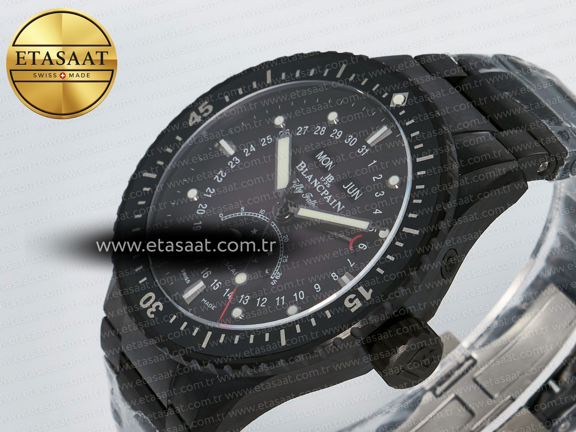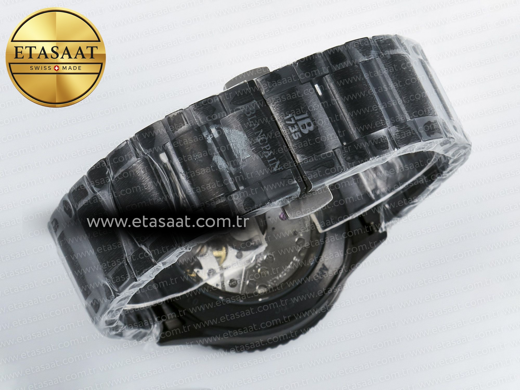 Bezel: Unidirectional satin-brushed black ceramic bezel with gray ceramic insert and Liquidmetal hour markers, same as genuine