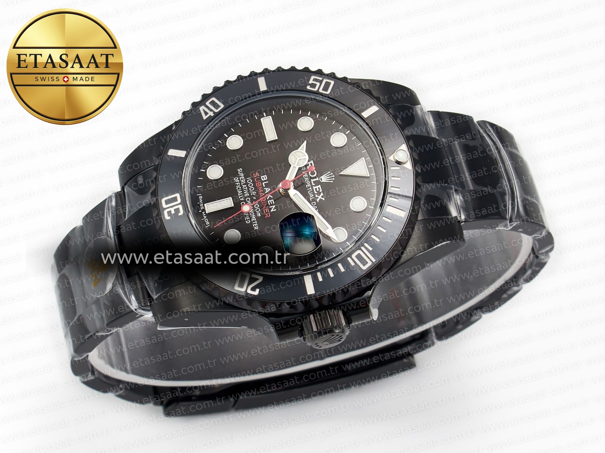 Dial: BLAKEN Special Black Dial, Superlume (Blue) Dot Markers and Needles with Red Submariner Wordings