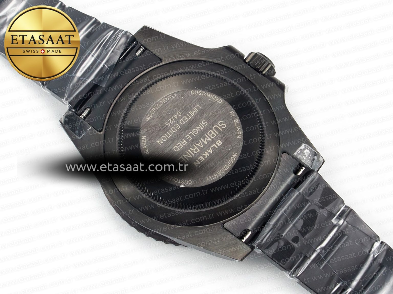 Dial: BLAKEN Special Black Dial, Superlume (Blue) Dot Markers and Needles with Red Submariner Wordings