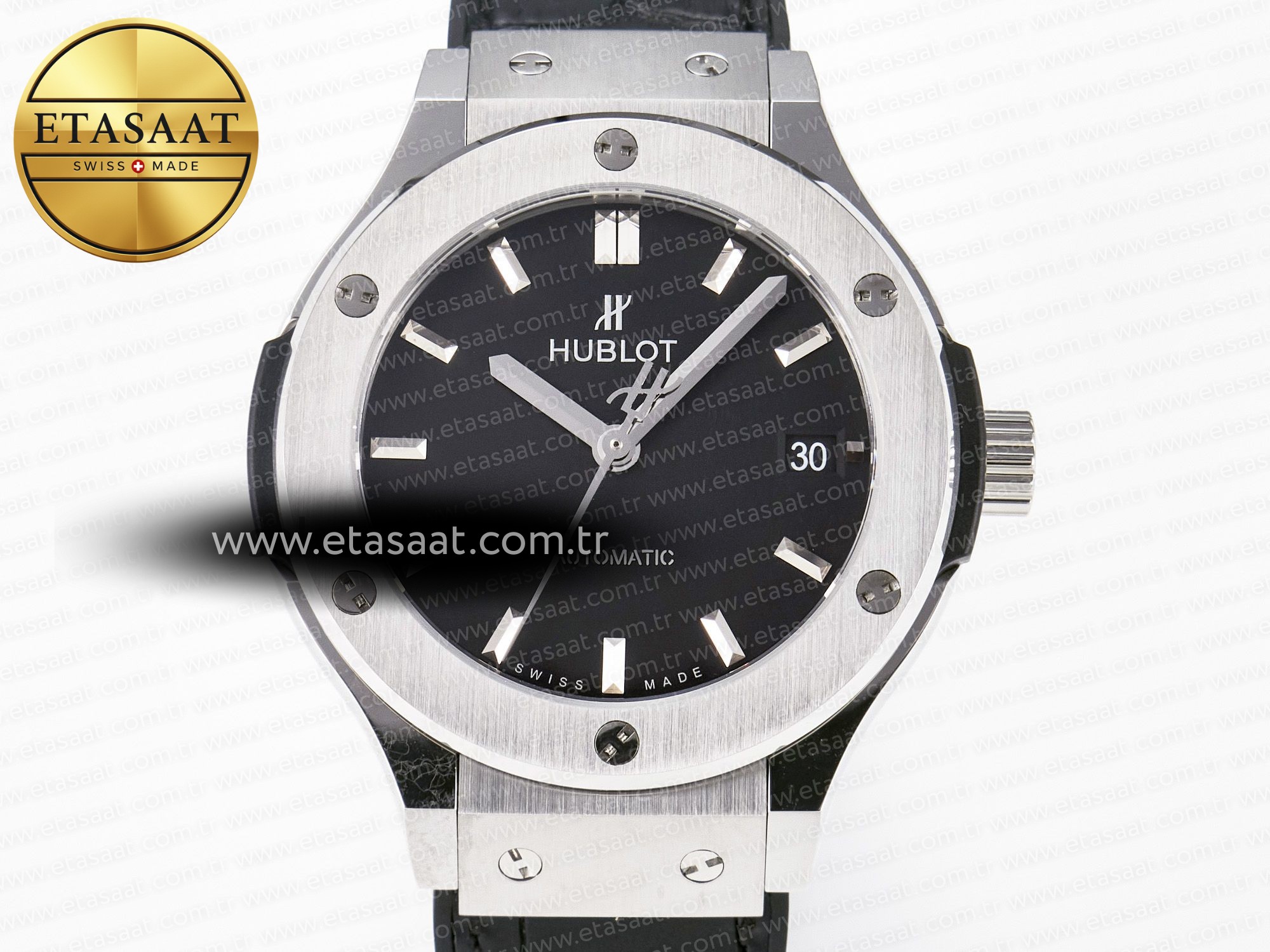 Classic Fusion 38mm SS JJF 1:1 Best Edition Black Dial on Black Gummy Leather Strap