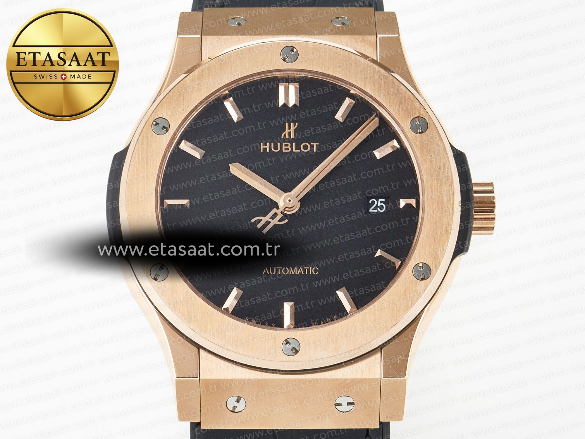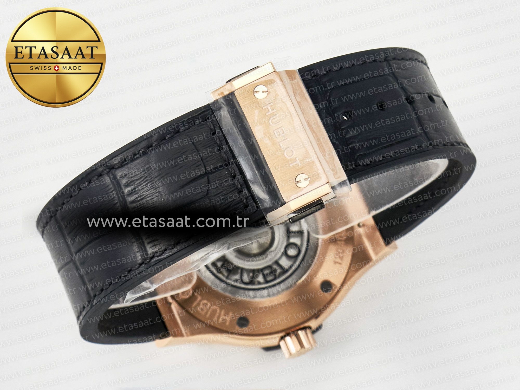 Classic Fusion 42mm RG JJF 1:1 Best Edition Black Dial on Black Gummy Leather Strap