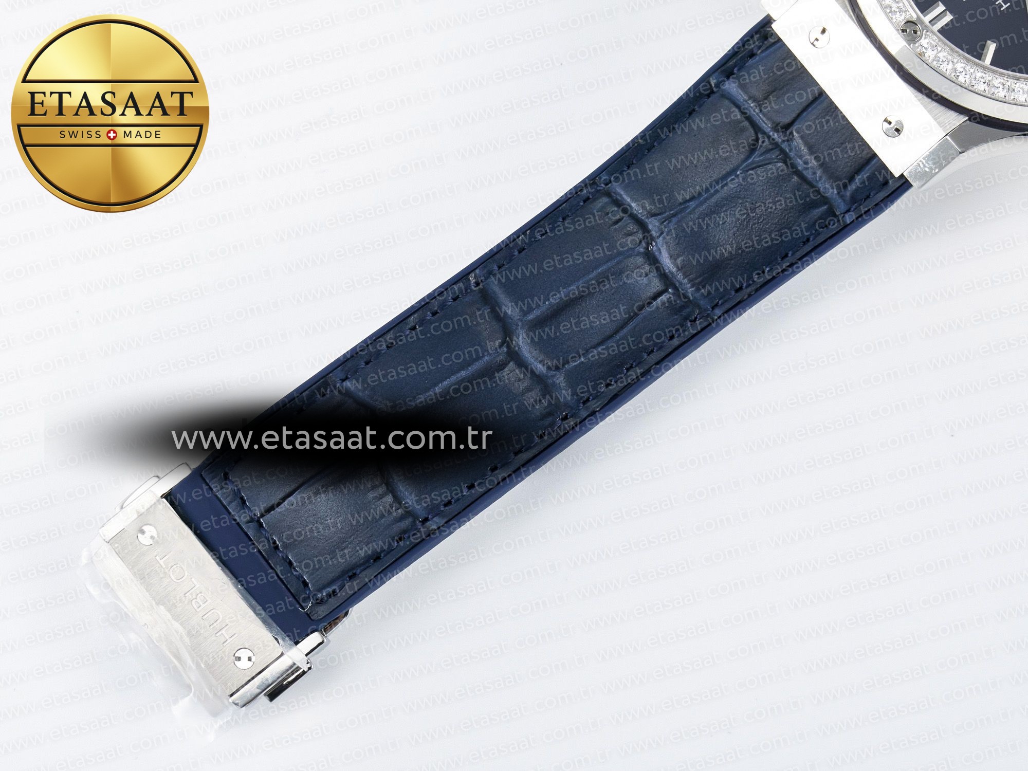 Classic Fusion Bang 42mm HBF 1:1 Best Edition Blue Dial Diamonds Bezel on Blue Leather Strap A2892