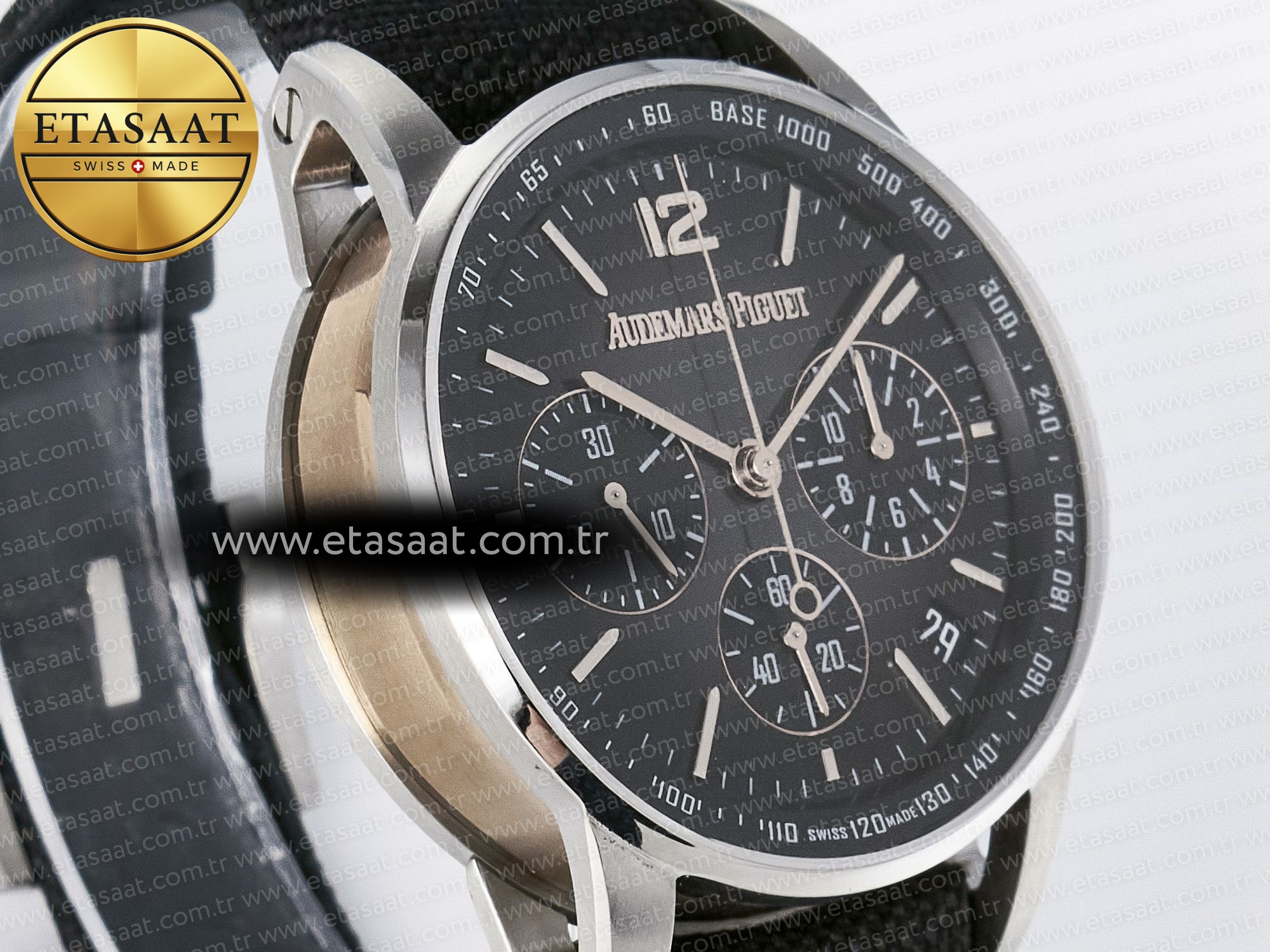 Movement: Base Movement: Asian 7750 automatic chronograph movement at 28800vph; Decoration: Platinum plated movement plate and rotor which are made according to the genuine movement
