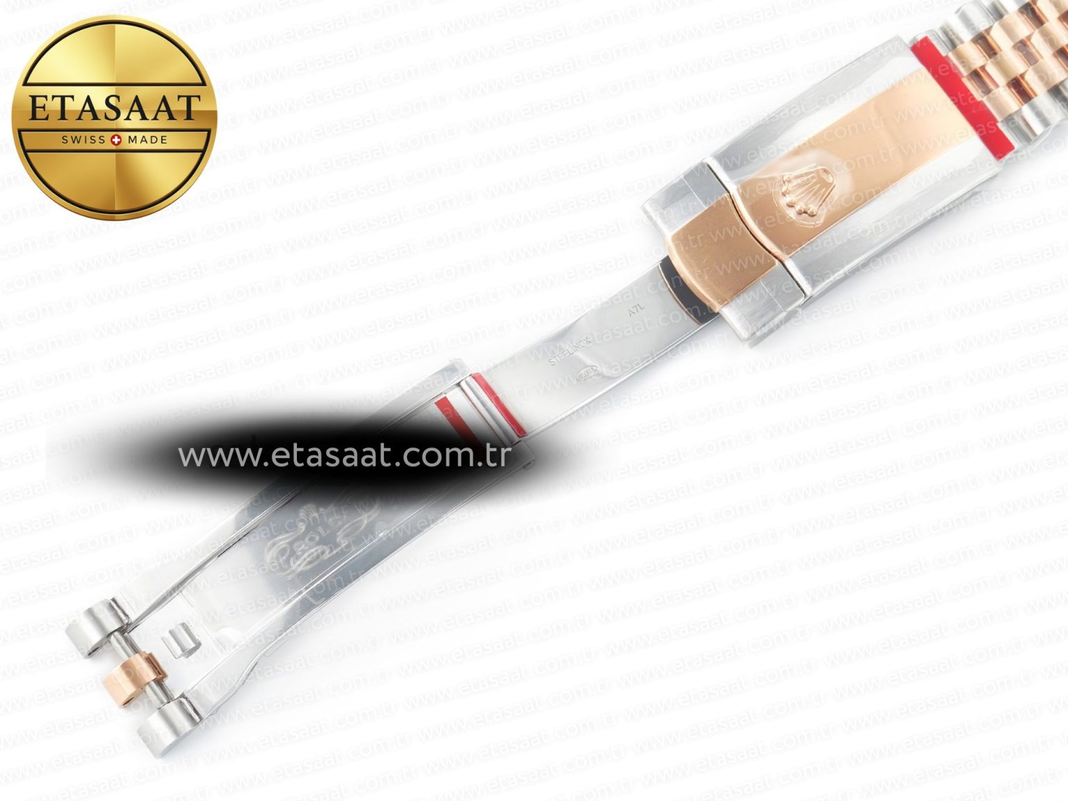 Strap: 904L Stainless steel rolex jubilee bracelet with 18K rose gold wrapped middle links