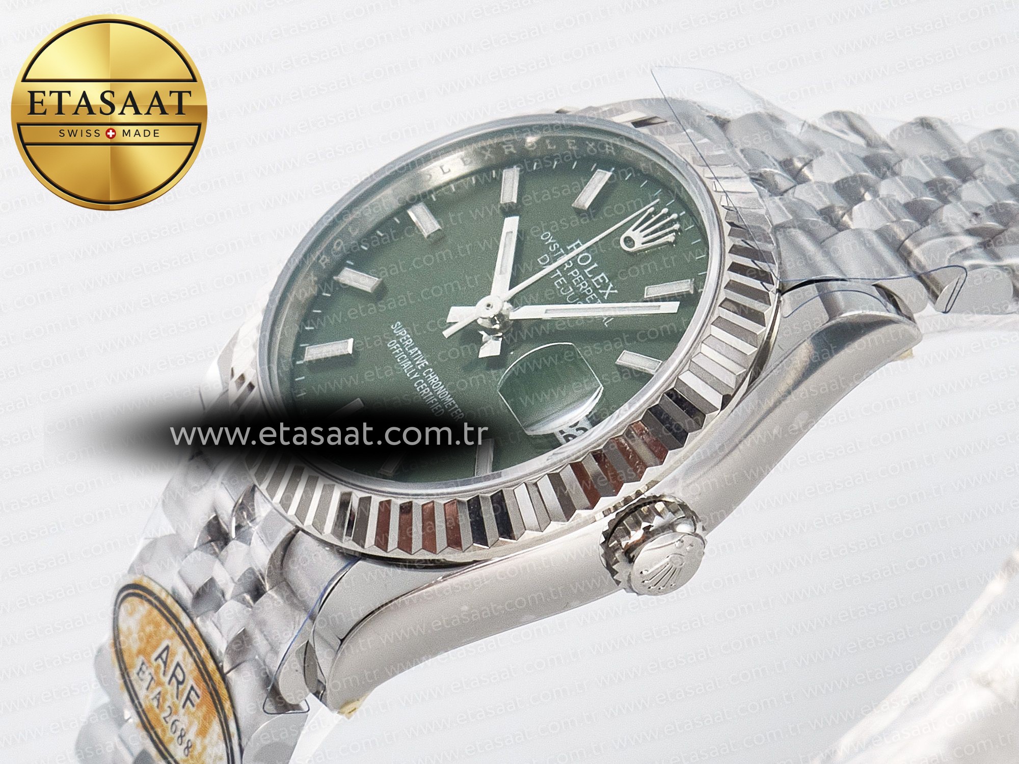 “DateJust 31 278274 ARF 1:1 Best Edition 904L Steel Green Dial Stick Marker on SS Jubilee Bracelet ETA 2688” için yorum yapan ilk kişi siz olun Yanıtı iptal et