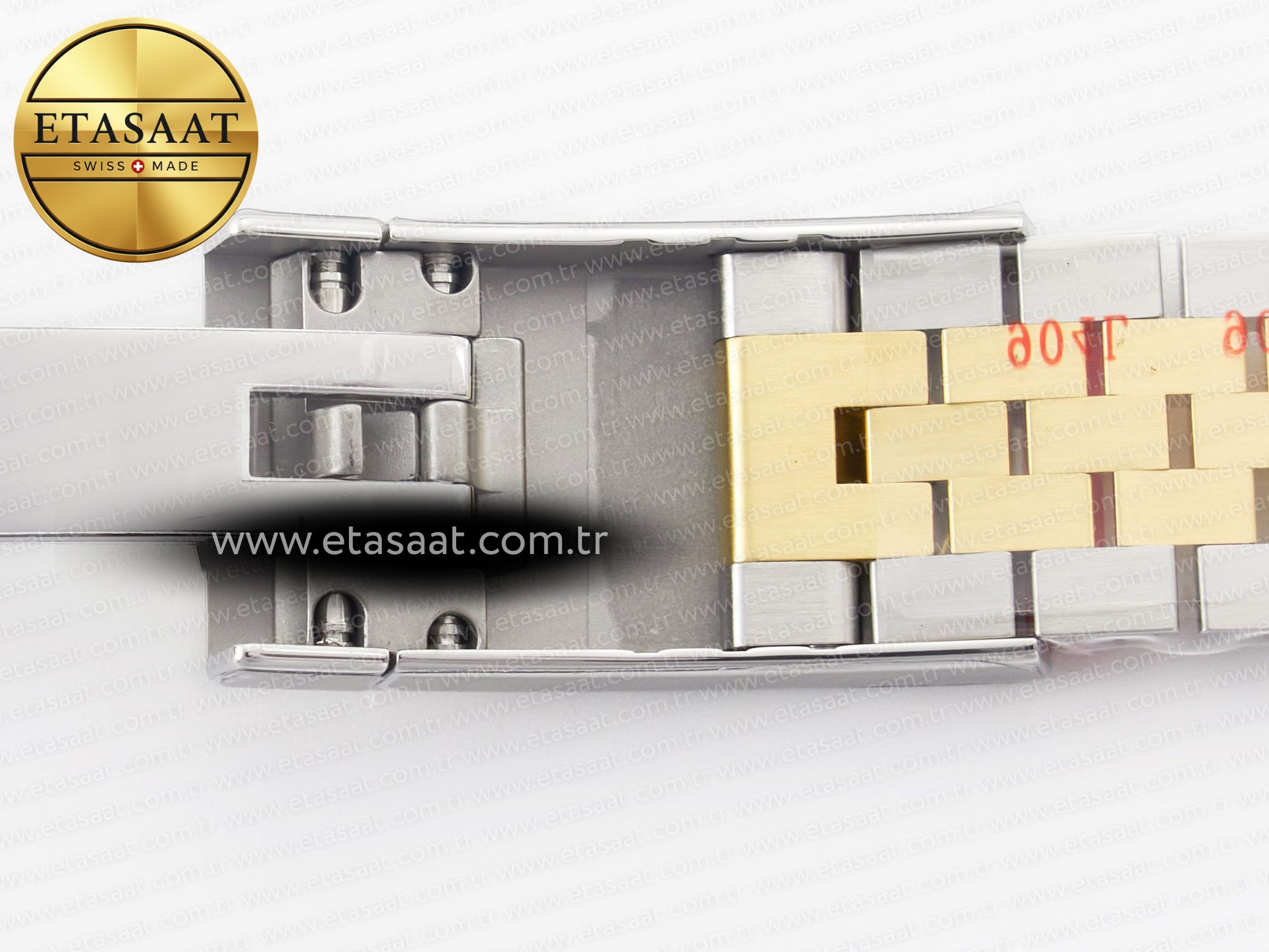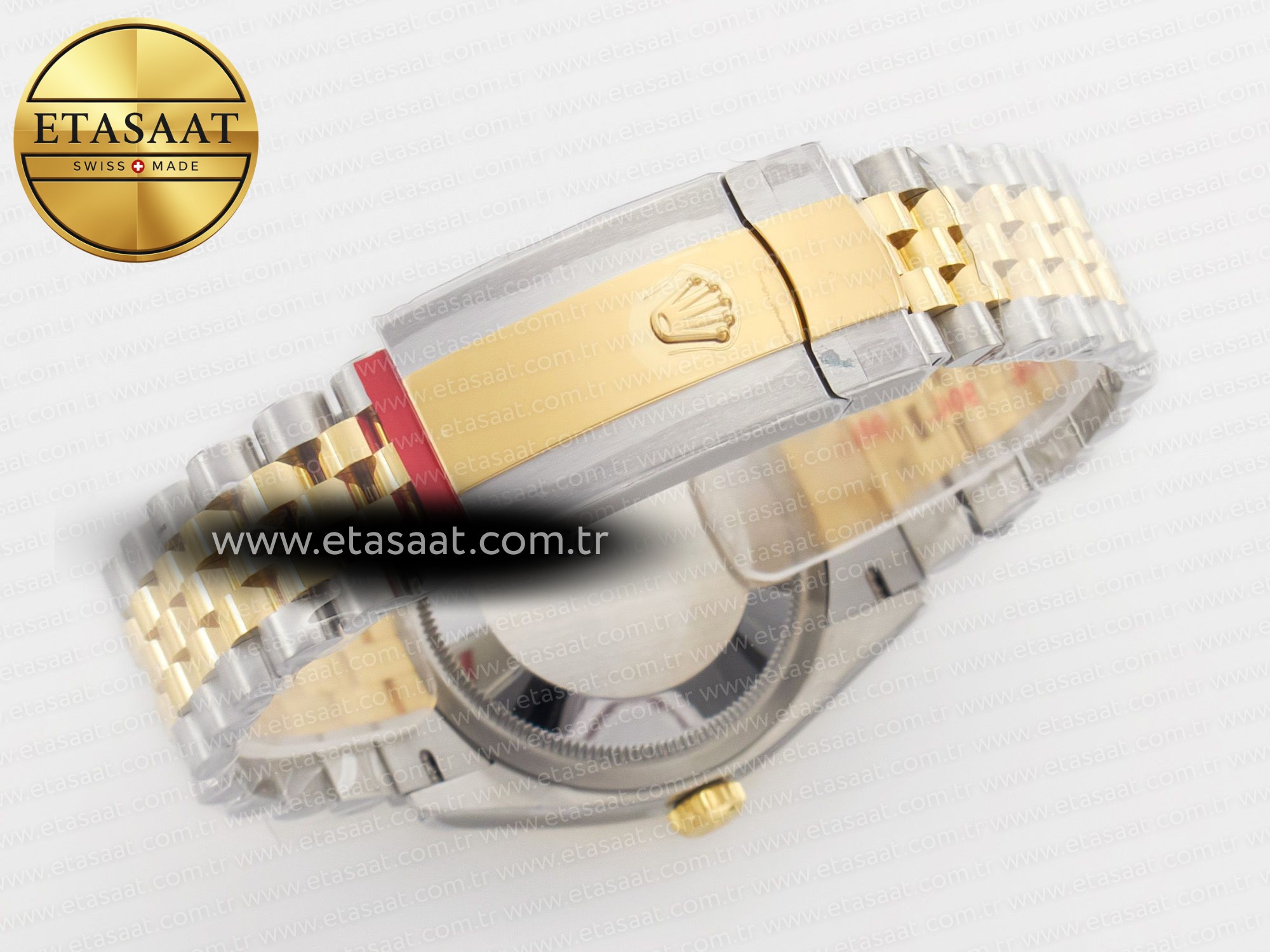 Strap: Solid 904L stainless steel bracelet with 18k yellow gold plated middle links