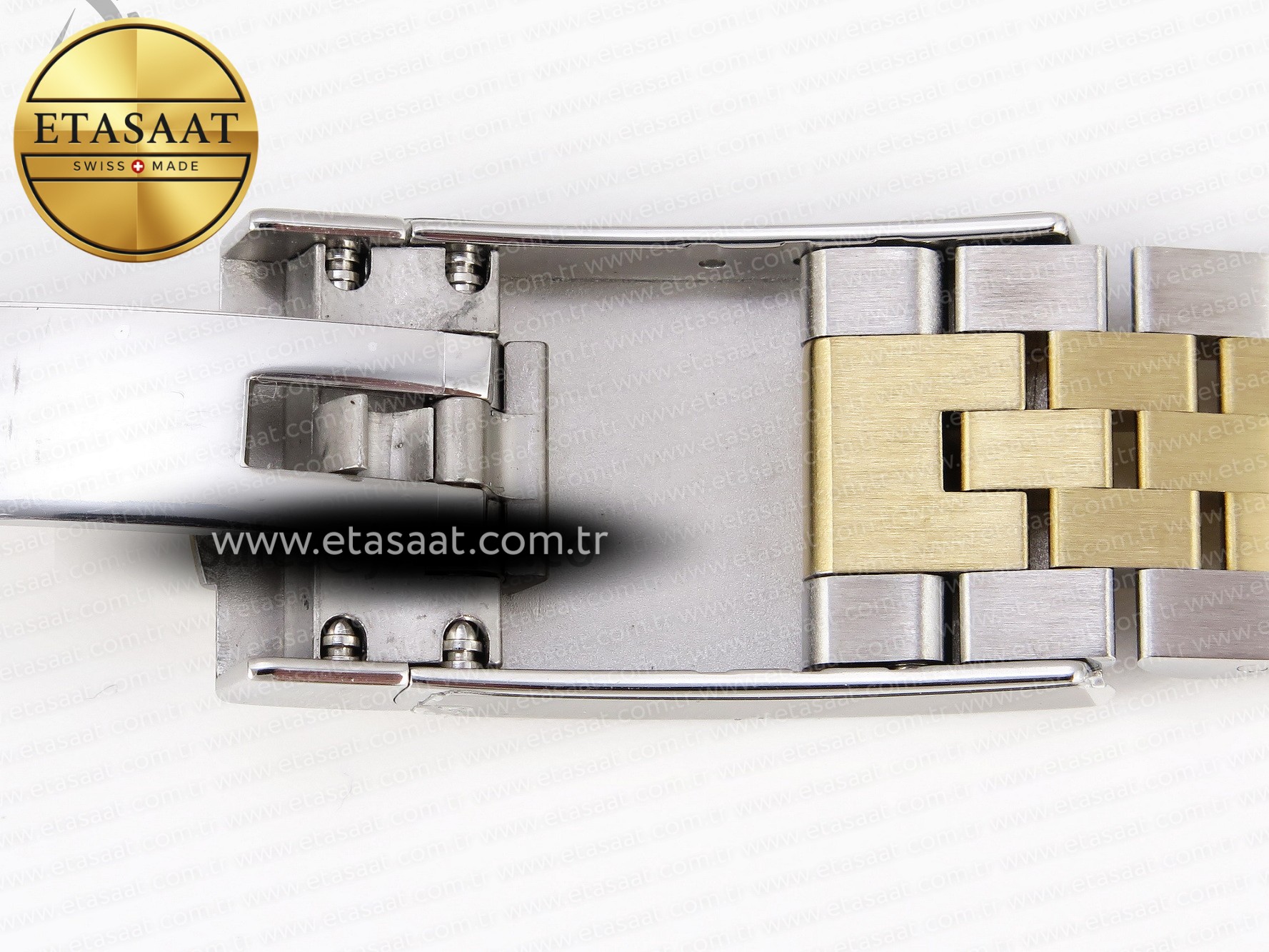 Strap:: 316L stainless steel julibee bracelet with 18k yellow gold plated middle links