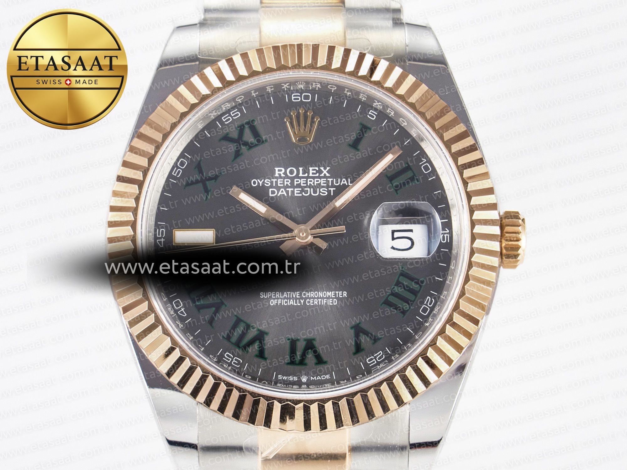 DateJust 41 126331 ARF 1:1 Best Edition 904L Steel Gray Dial Green Roman Marker on SS/RG Oyster Bracelet SH3235(Gain Weight)