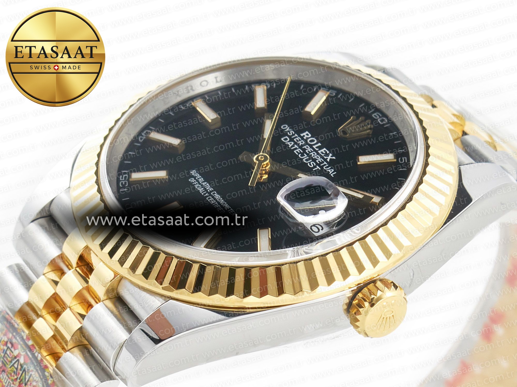Strap: 18K Two Tone Yellow Gold Plated on Solid Stainless Steel 904L Oyster Bracelet with New Style Rolesor Deployant Buckle