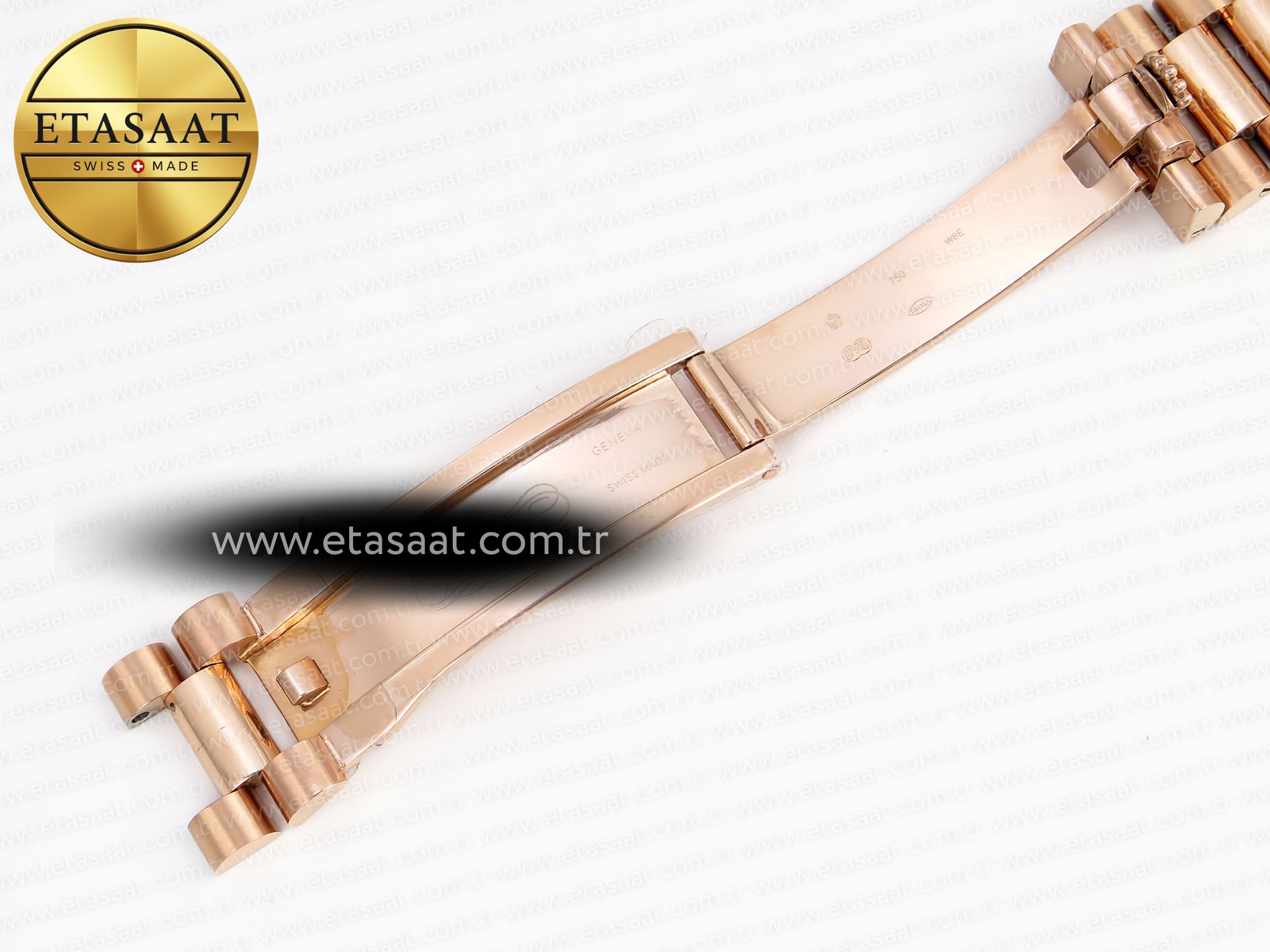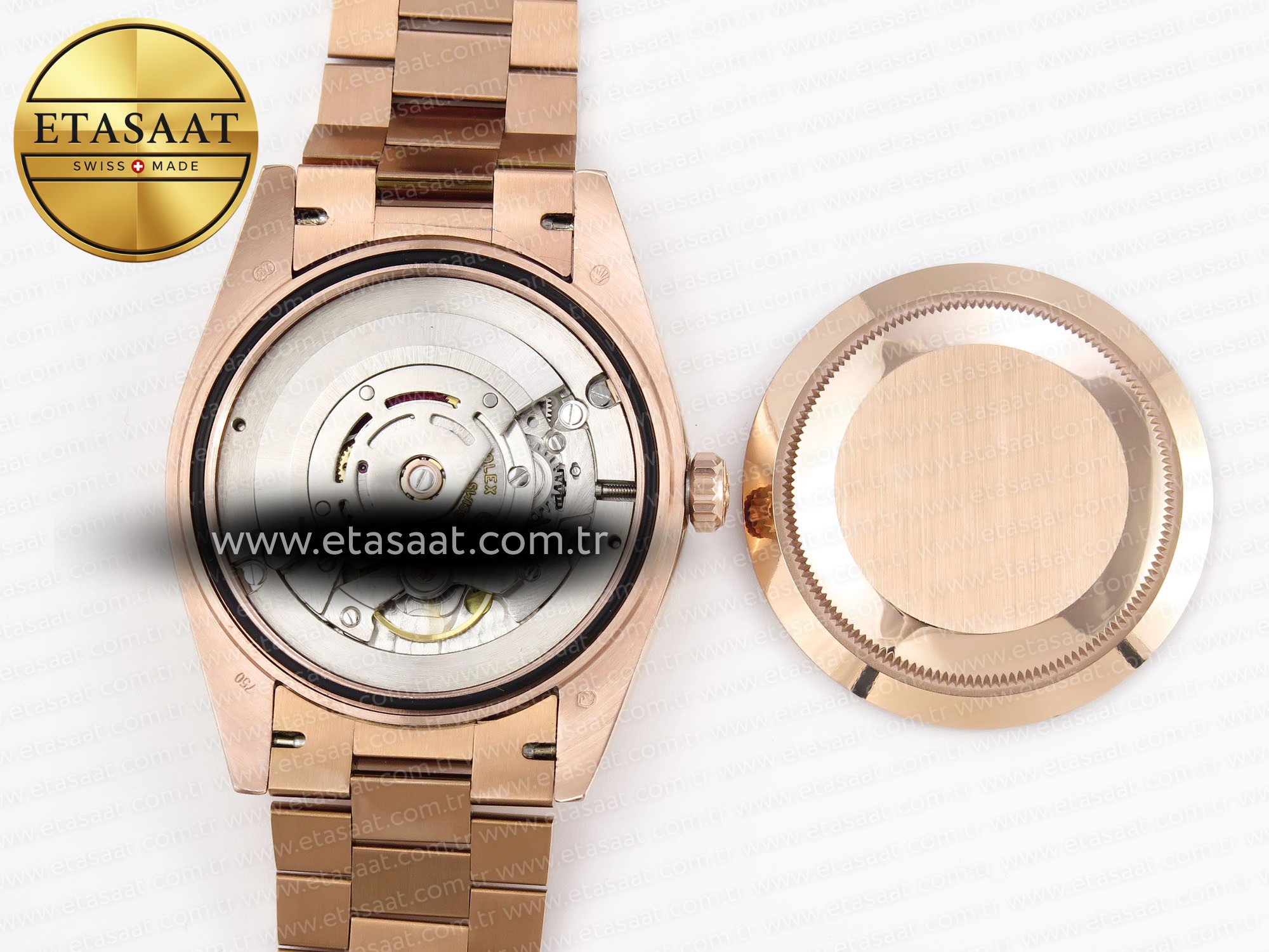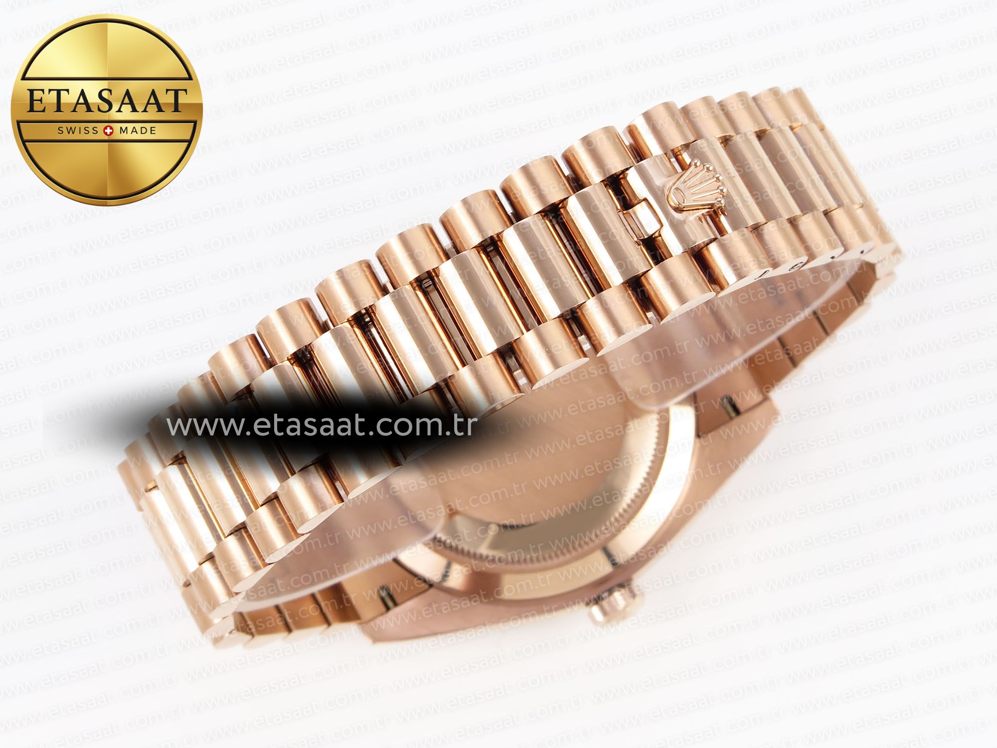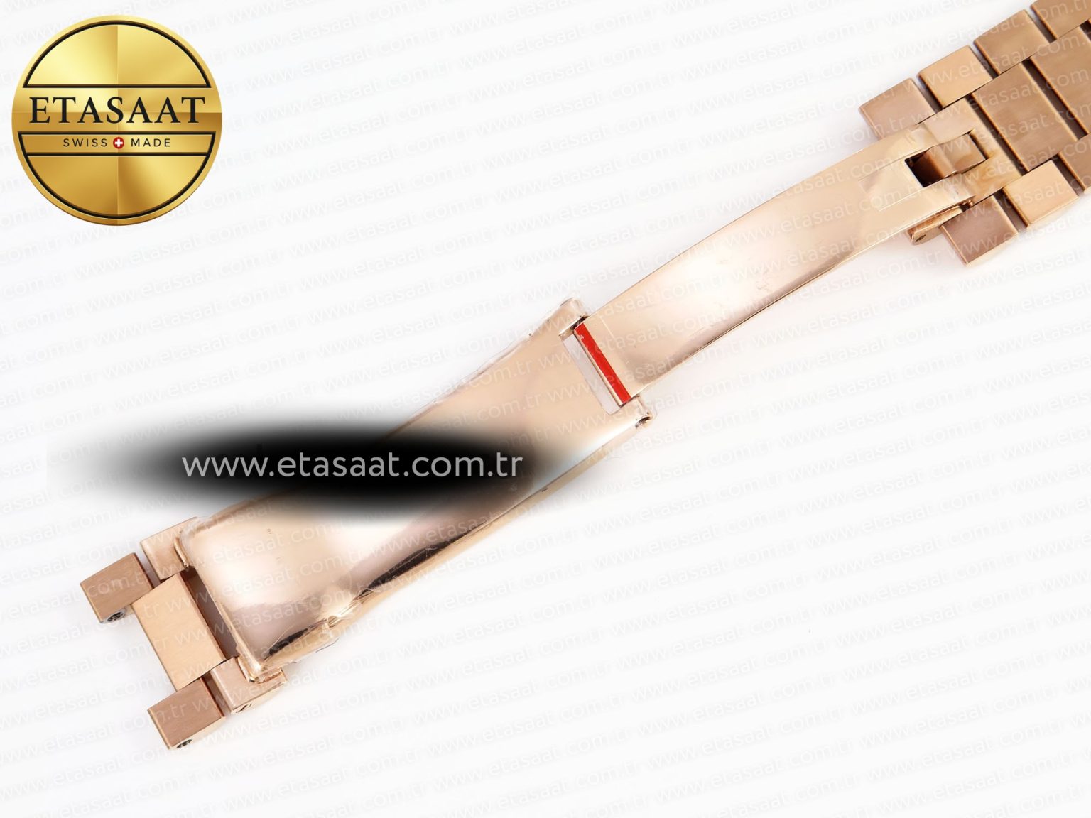 Strap:: 18K rose gold plated solid stainless steel bracelet, Cu-W metal to increase watch weight to match the genuine gold watch weight, almost same weight as genuine watch