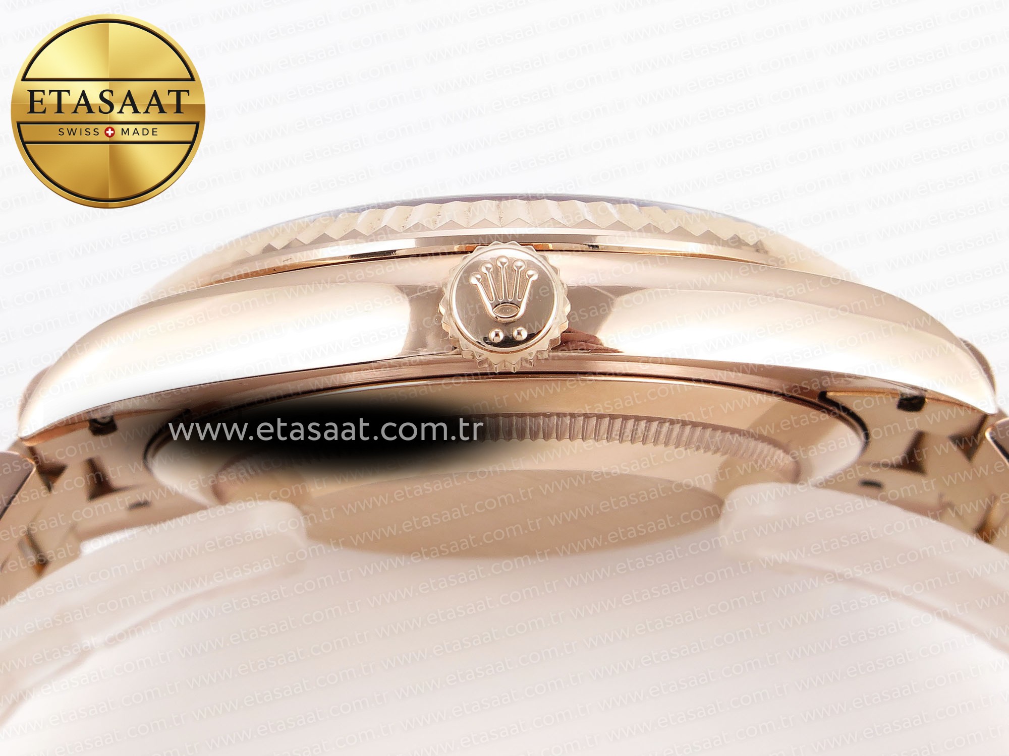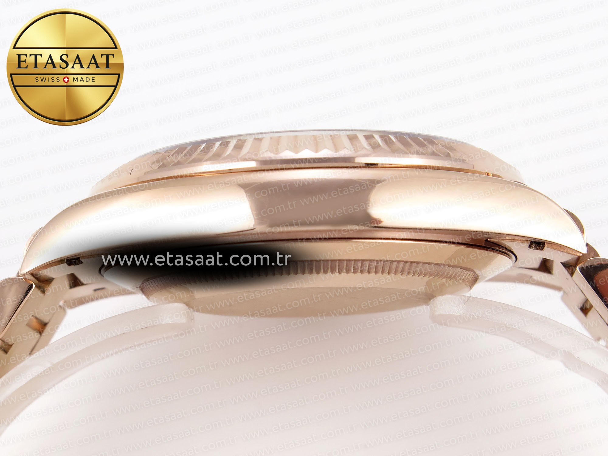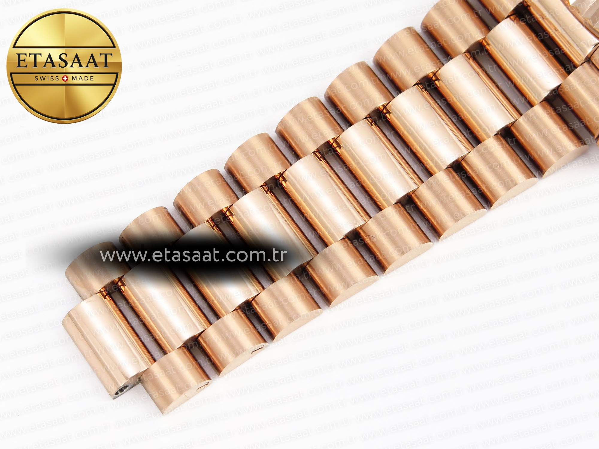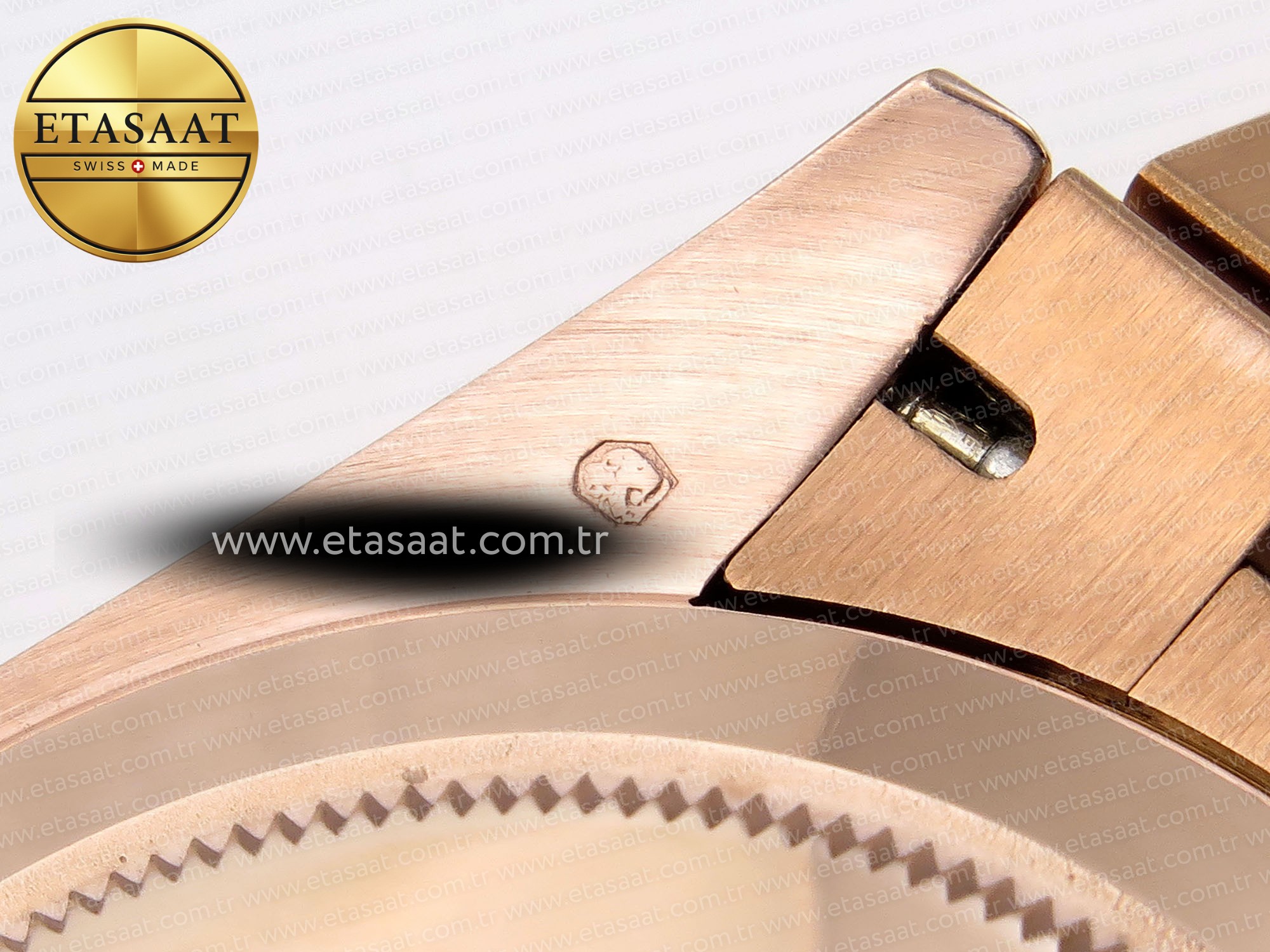 Strap:: 18K rose gold plated solid stainless steel bracelet, Cu-W metal to increase watch weight to match the genuine gold watch weight, almost same weight as genuine watch